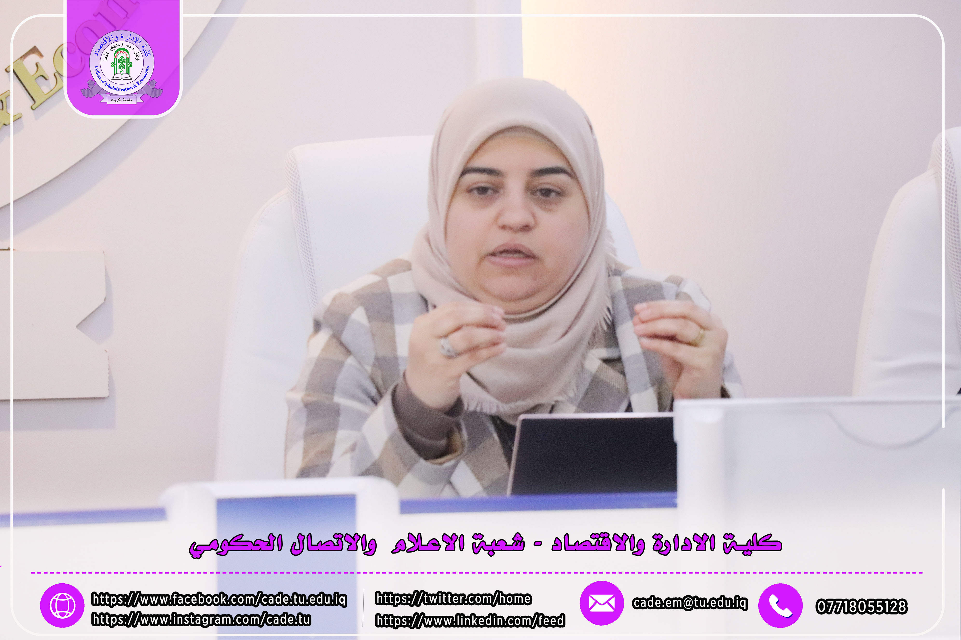 برعاية الأستاذ الدكتور وعد محمود رؤوف، رئيس جامعة تكريت، وبإشراف الأستاذ المساعد الدكتور فؤاد فرحان حسين عميد الكلية، نظّمت كلية الإدارة والاقتصاد / وحدة شؤون المرأة ضمن الخطة التنفيذية للاستراتيجية الوطنية للمرأة العراقية لعام (2026)، ندوة علمية حضورية بعنوان ( معوّقات تمويل المشاريع الصغيرة ودخول المرأة إلى سوق العمل في العراق)، وذلك يوم الخميس الموافق 2025/02/05، على قاعة الدكتور محمد بدع.