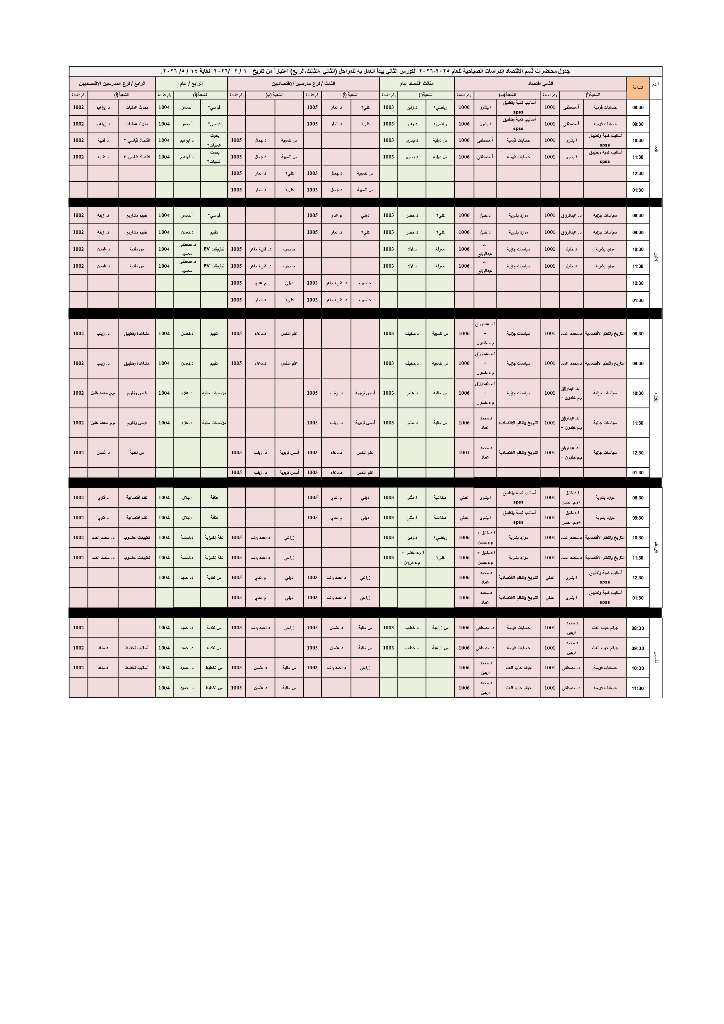 ويبدأ العمل بهذا الجدول اعتبارًا من الاحد الموافق 2026/2/1،وتُهيب عمادة الكلية بجميع الطلبة الالتزام بالمواعيد المحددة وحضور المحاضرات لضمان الاستفادة الكاملة من الخطة الدراسية.