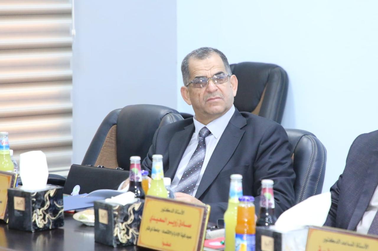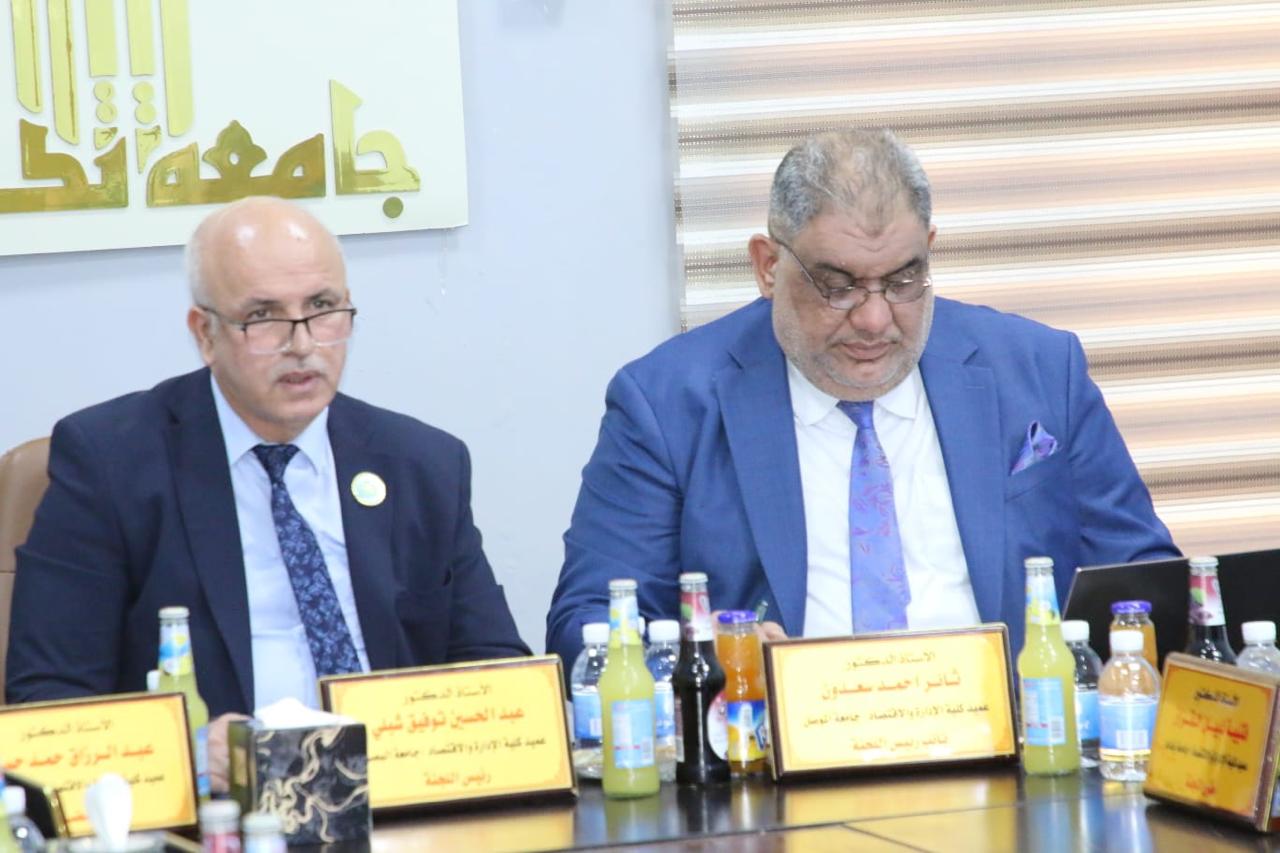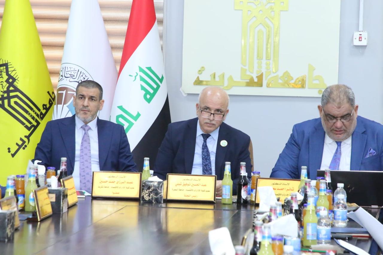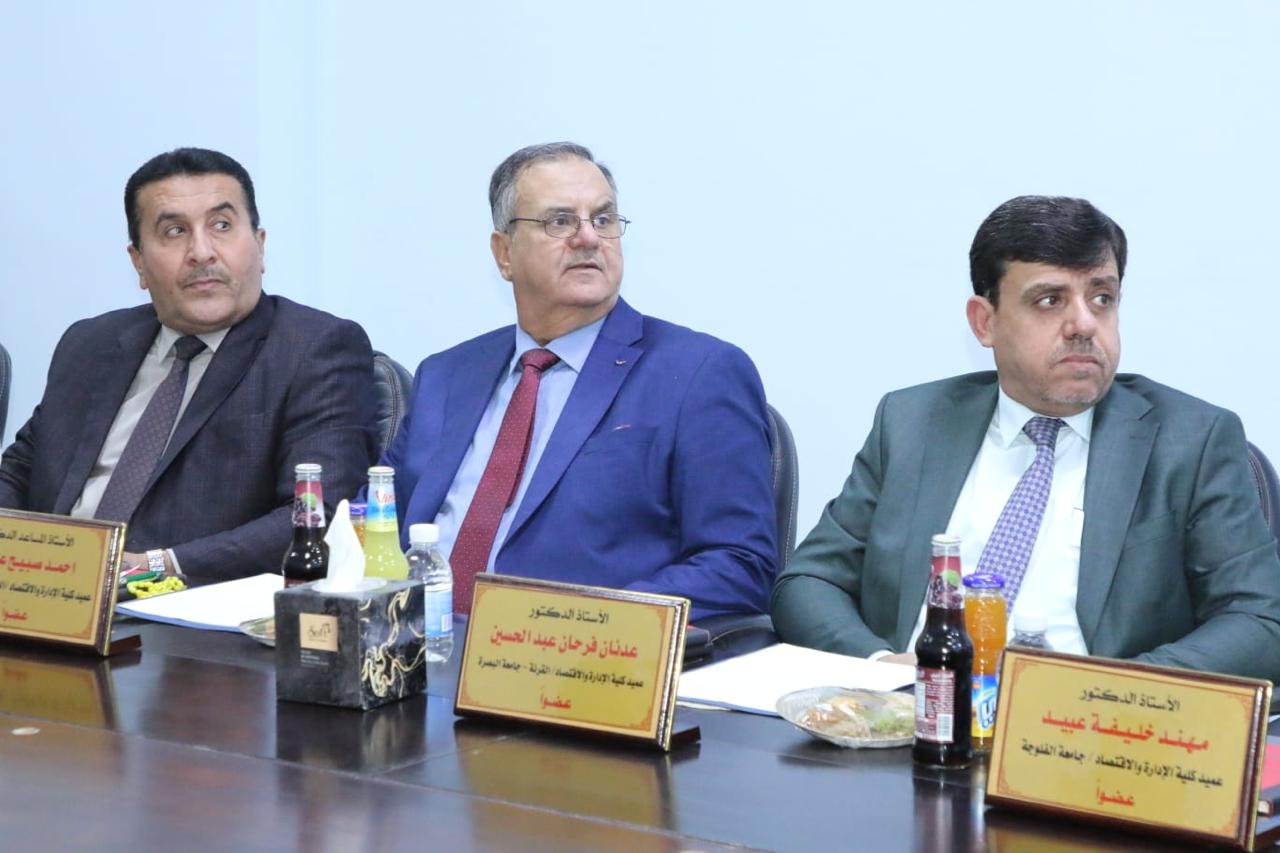 اذ ترأس الاجتماع رئيس لجنة العمداء وعميد كلية الادارة والاقتصاد بجامعة البصرة الاستاذ الدكتور عبد الحسين توفيق شبلي و الاستاذ الدكتور عبدالرزاق حميد حسين عميد كلية الادارة والاقتصاد بجامعة تكريت وبحضور السادة عمداء كليات الادارة والاقتصاد في العراق .