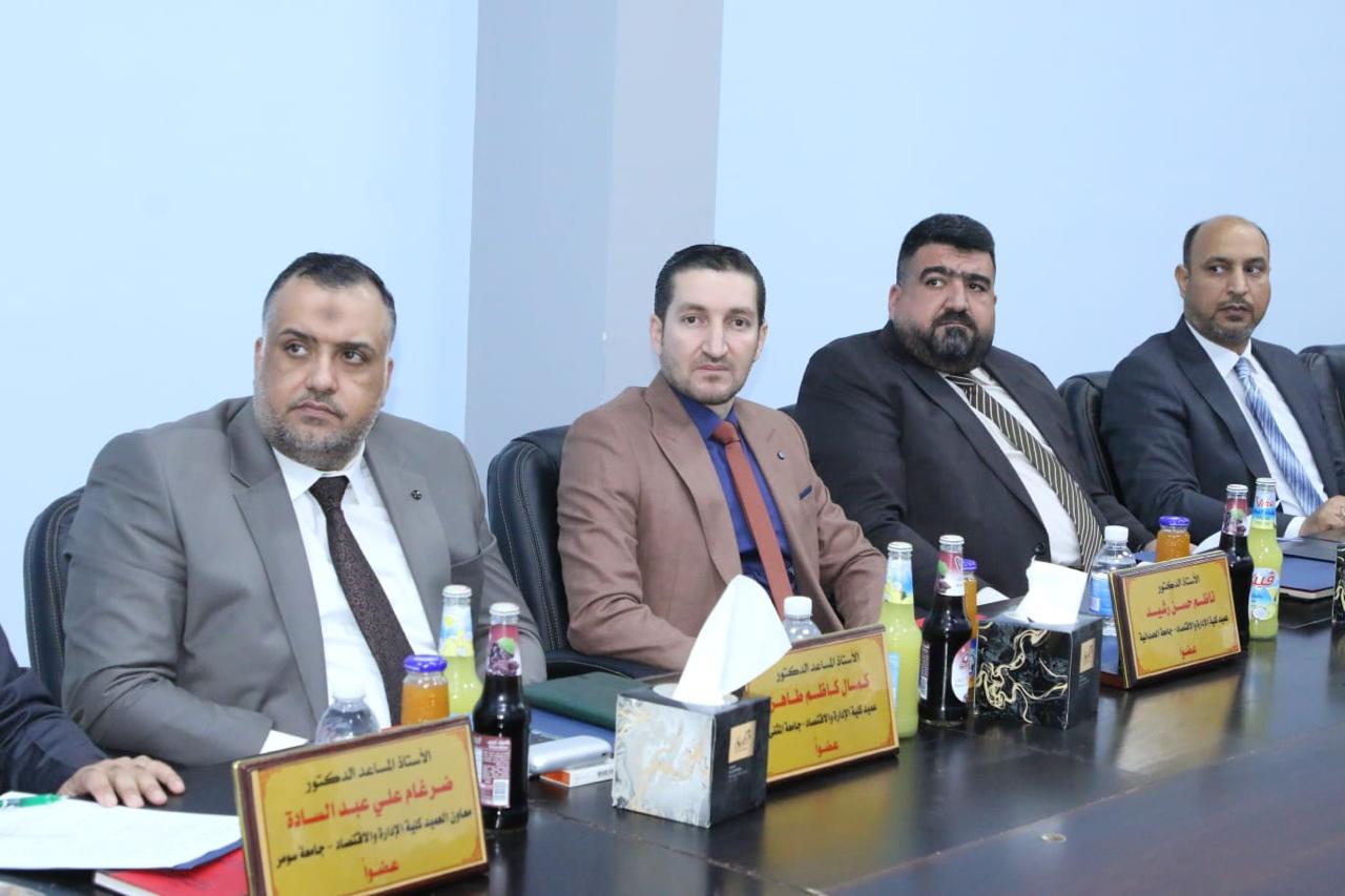 ناقش الاجتماع استحداث الاقسام العلمية وبرامج الدراسات العليا في الكليات الاهلية وكذلك مناقشة الطلبات المقدمة من بعض الكليات بخصوص تعزيز الملاك التدريسي وتدقيق الملاك لإقسام المحاسبة وادرة الاعمال واقتصاديات النفط والغاز في كليتي العلوم الاقتصادية والكتاب واتخذ القرارات المناسبة بخصوصها ، كما وناقش الاجتماع استحداث الاقسام العلمية وبرامج الدراسات العليا في الكليات الحكومية ،و تم ايضاً مناقشة شؤون علمية ومدى امكانية قبول خريجي الاعدادية المهنية الفرع التجاري في قسم الاقتصاد ضمن كلية الادارة والاقتصاد للدراسات المسائية وتشكيل لجان لتقييم الواقع العلمي والاكاديمي واستحداث مادة مكافحة غسيل الاموال وكذلك تسميات التخصصات الدقيقة في التخصص العام لنظم المعلومات الادارية . وناقش الاجتماع في فقرته الرابعة تأليف كتاب بشأن اعتماد الكتاب الموسوم المحفظة الاستثمارية الحديثة ككتاب مساعد وكتاب مبادئ اساسية في الاقتصاد القياسي وكتاب محاسبة التكاليف .