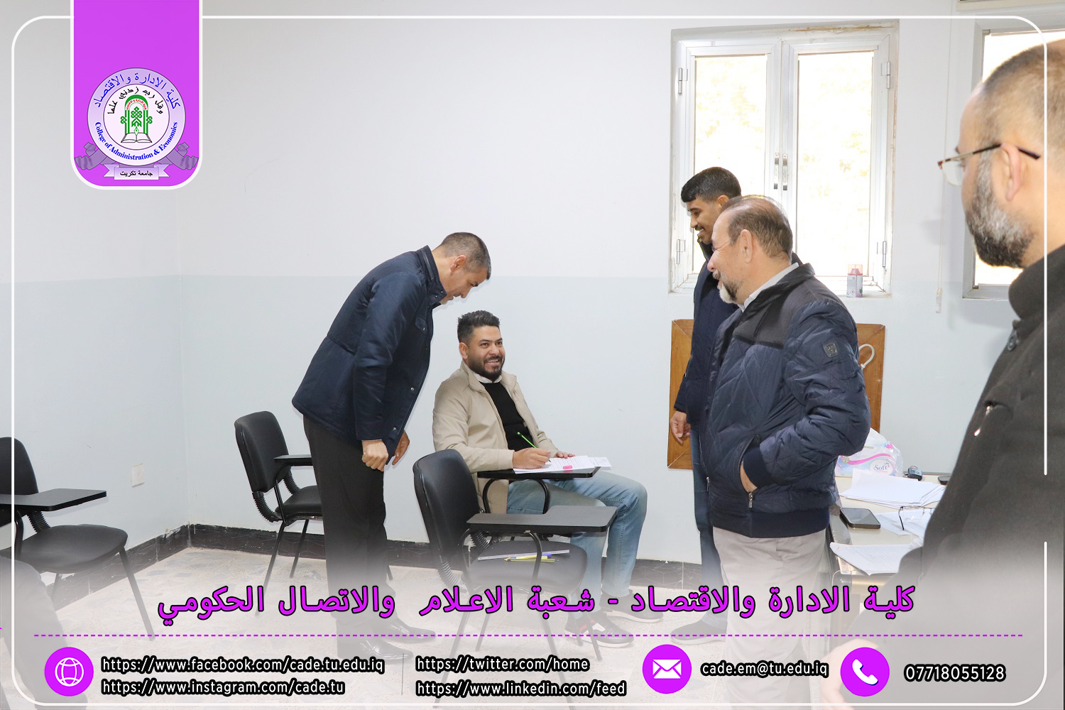 جرى في كلية الإدارة والاقتصاد في جامعة تكريت، صباح يوم الأحد الموافق 15 /12/ 2024، الامتحان الشامل لطلبة الدكتوراه في قسم الاقتصاد، للعام الدراسي 2024-2025، وذلك على قاعة الدراسات العليا