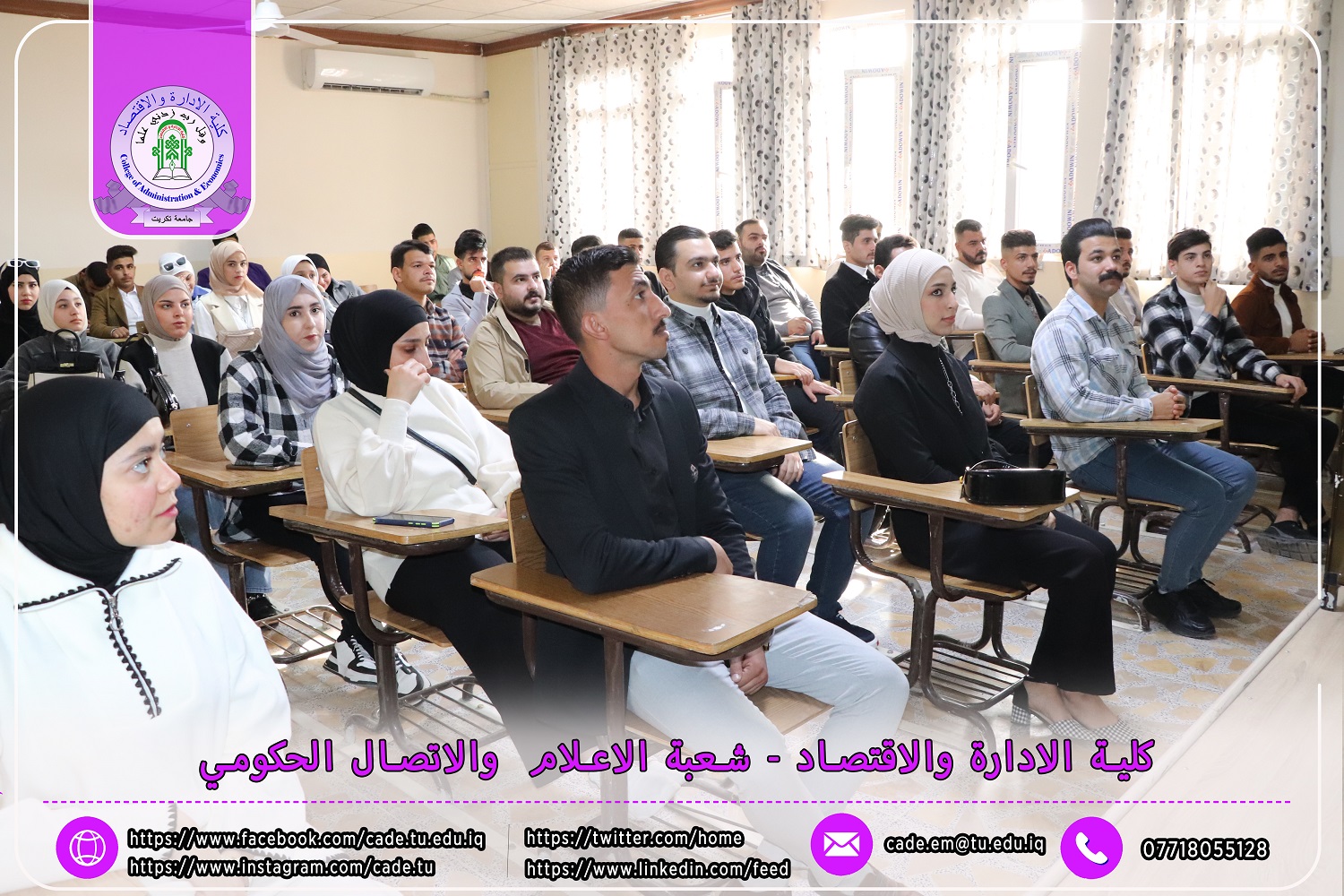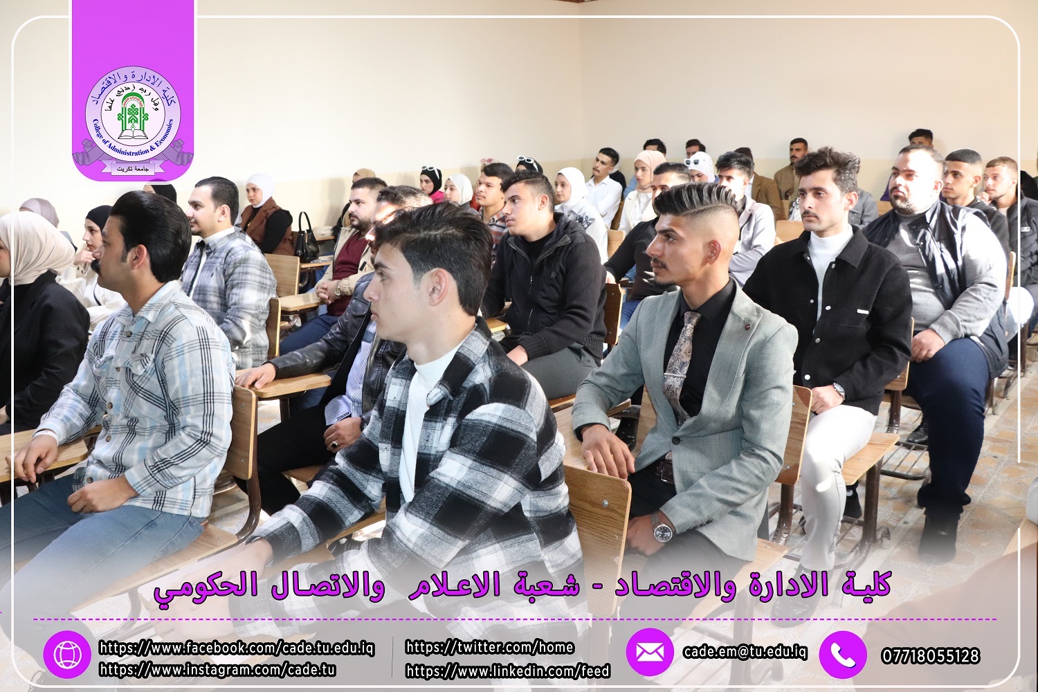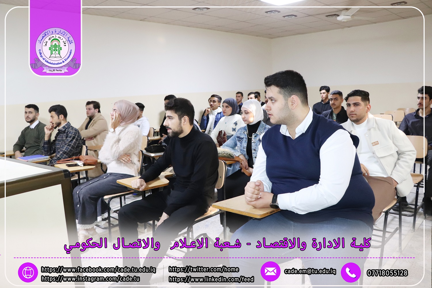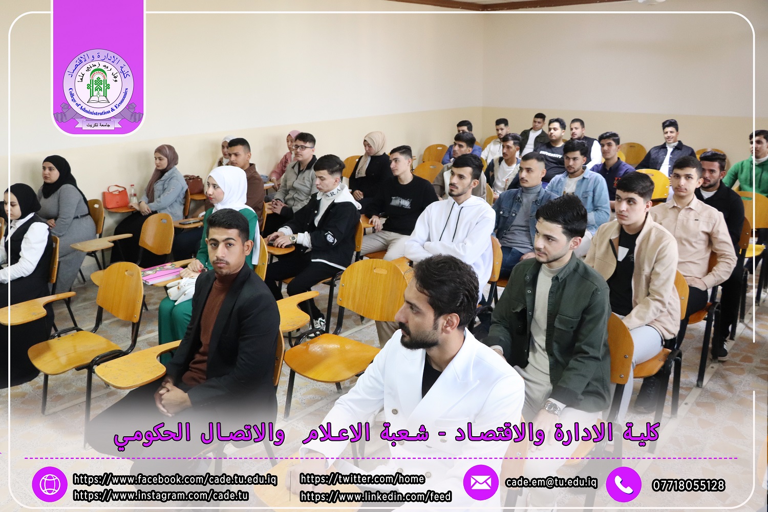 استناداً إلى توجيهات وزارة التعليم العالي والبحث العلمي / دائرة الدراسات والتخطيط والمتابعة قسم الدراسات والتخطيط بتاريخ 30/10/2024، تعلن عمادة كلية الإدارة والاقتصاد في جامعة تكريت عن بدء دوام طلبة المرحلة الأولى للعام الدراسي 2024-2025.