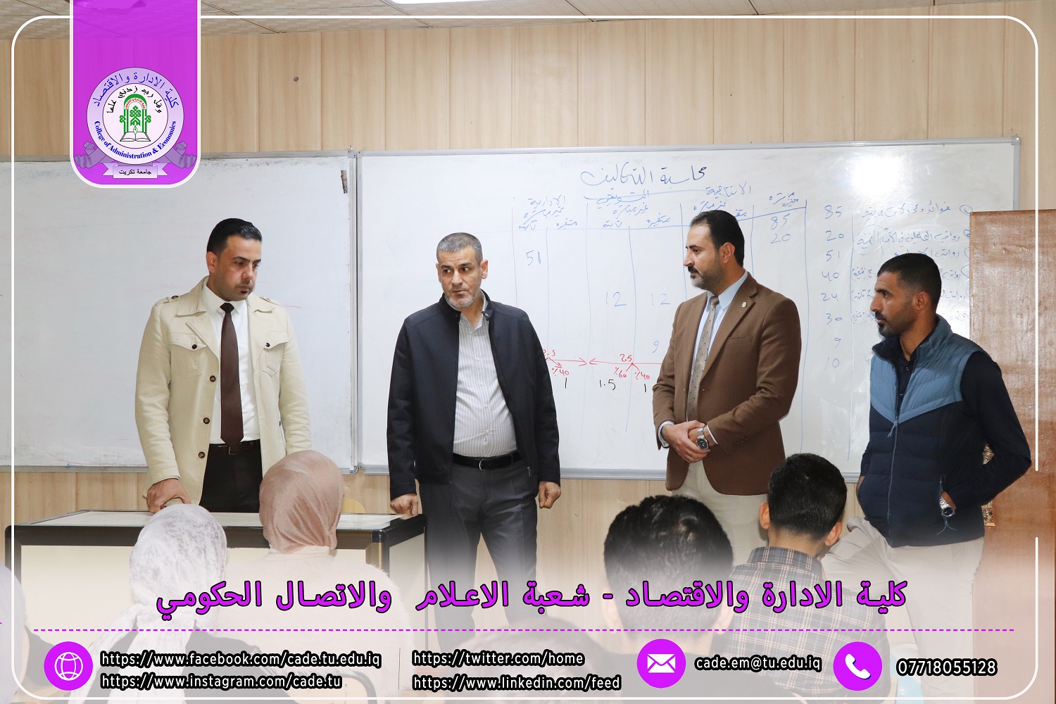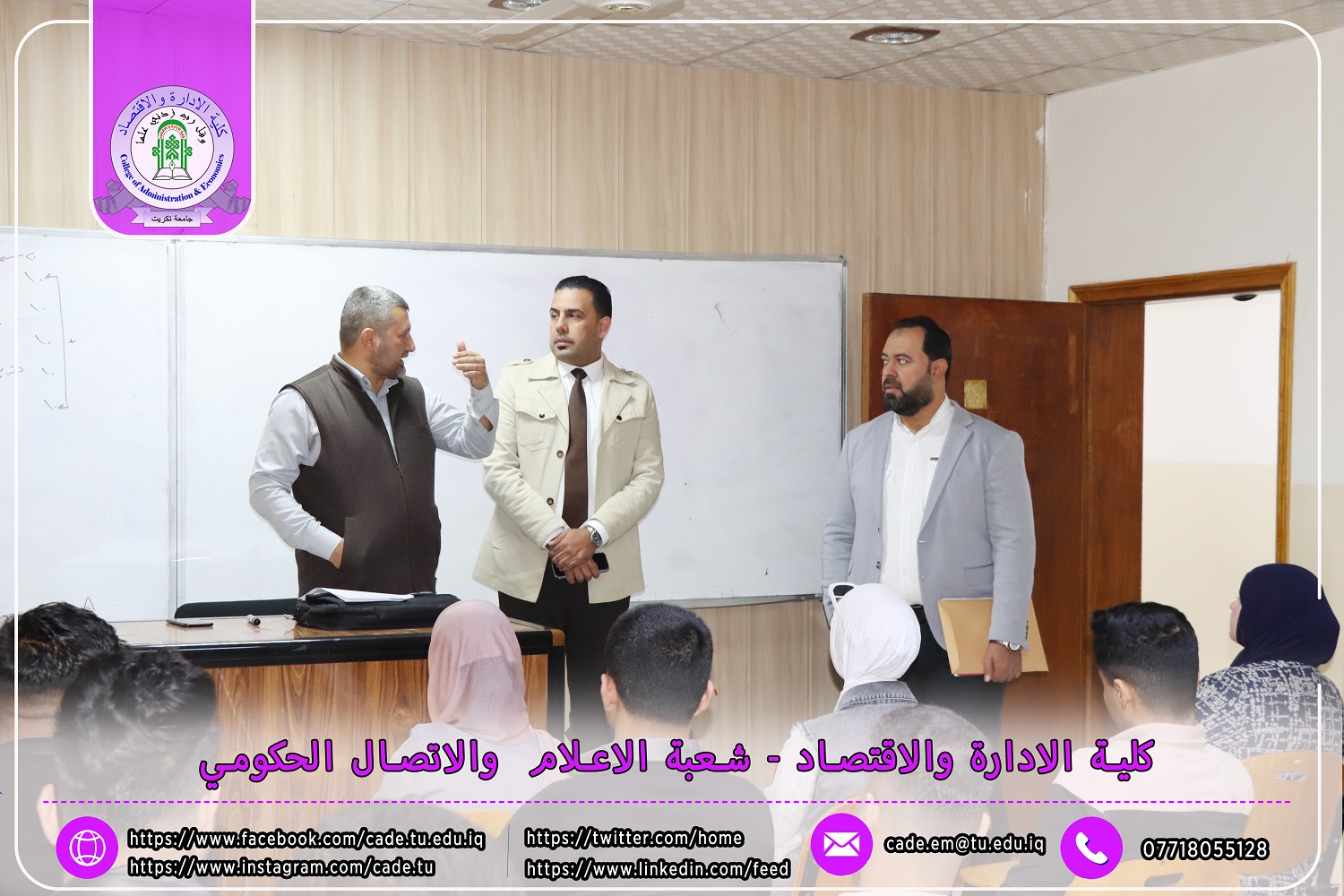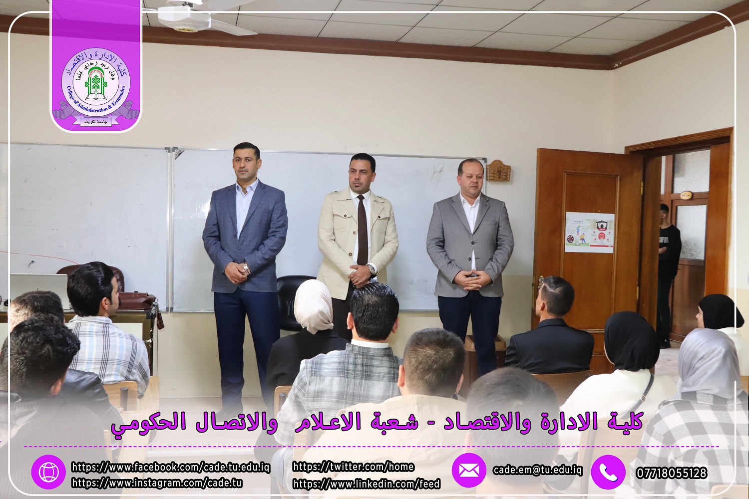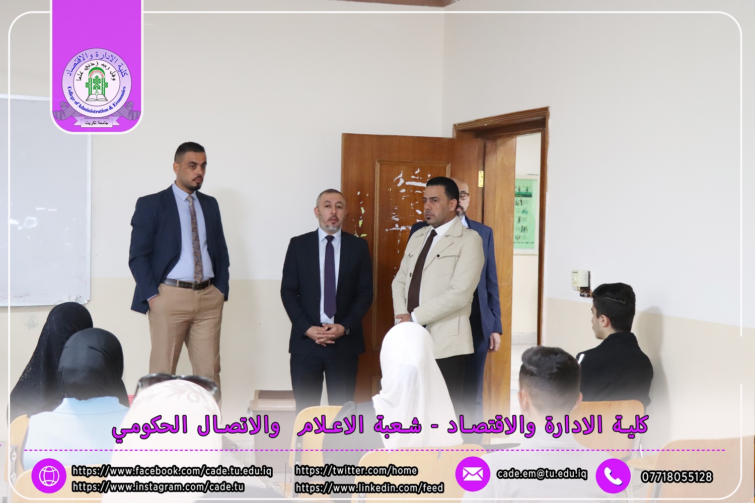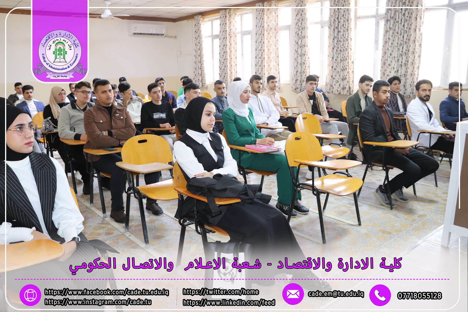 استناداً إلى توجيهات وزارة التعليم العالي والبحث العلمي / دائرة الدراسات والتخطيط والمتابعة قسم الدراسات والتخطيط بتاريخ 30/10/2024، تعلن عمادة كلية الإدارة والاقتصاد في جامعة تكريت عن بدء دوام طلبة المرحلة الأولى للعام الدراسي 2024-2025.