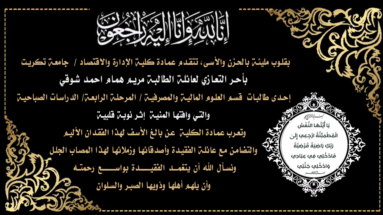 المقال السابق: وقفة حداد في كلية الإدارة والاقتصاد /جامعة تكريت على روح الطالبة مريم همام أحمد شوقي