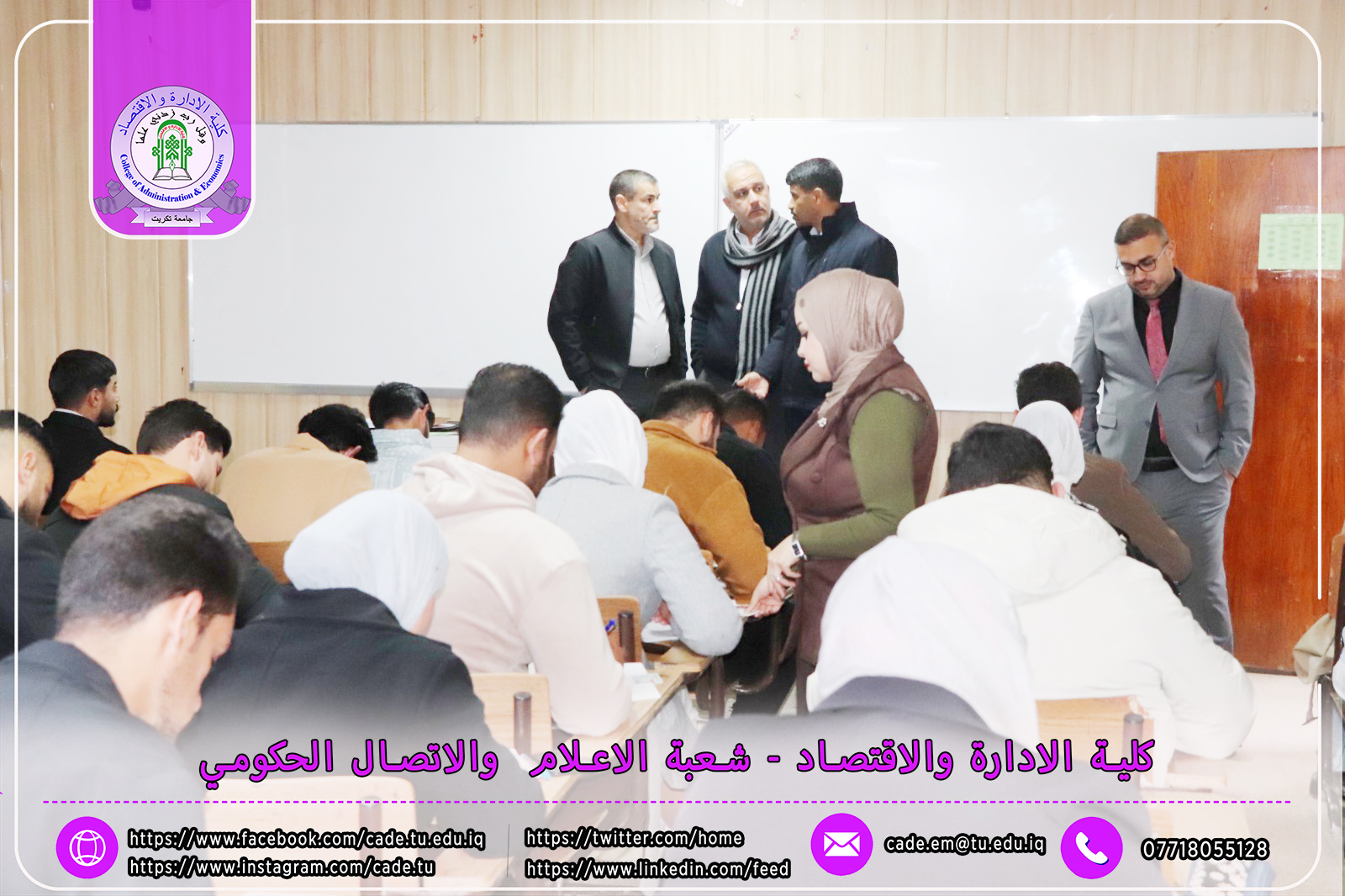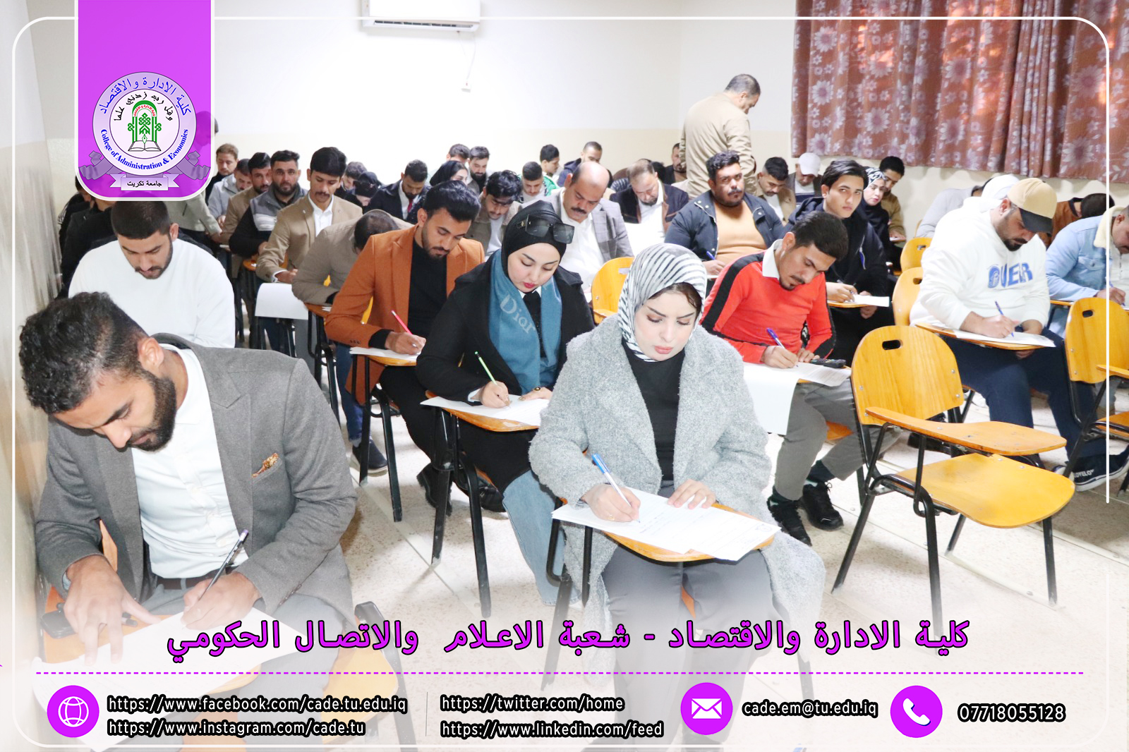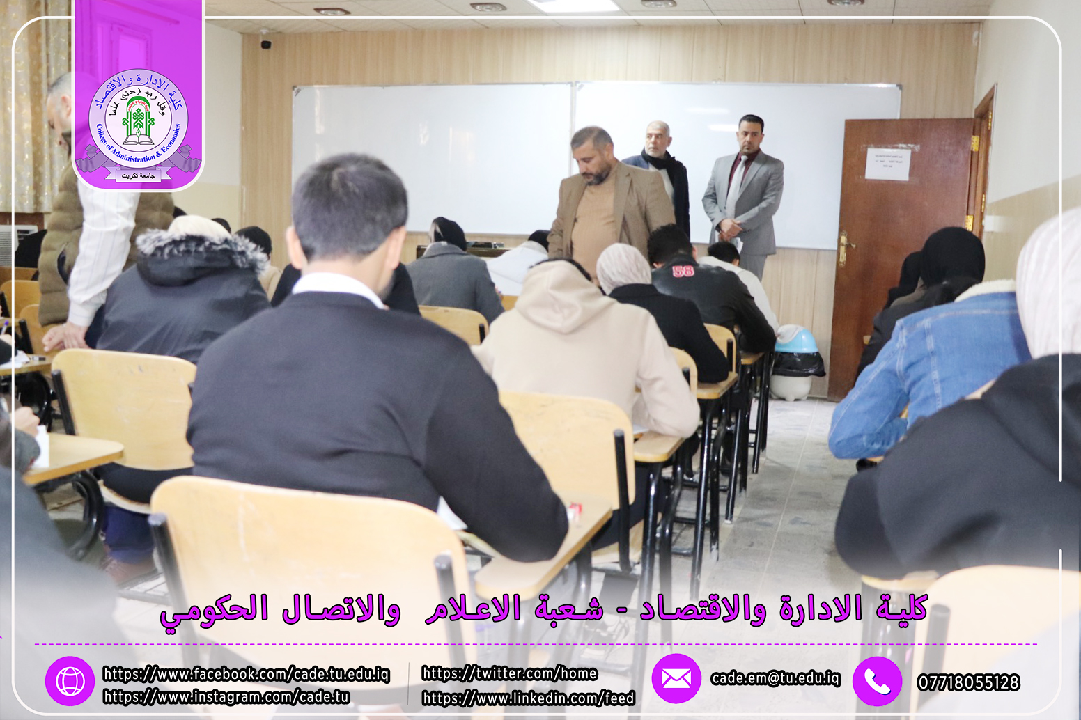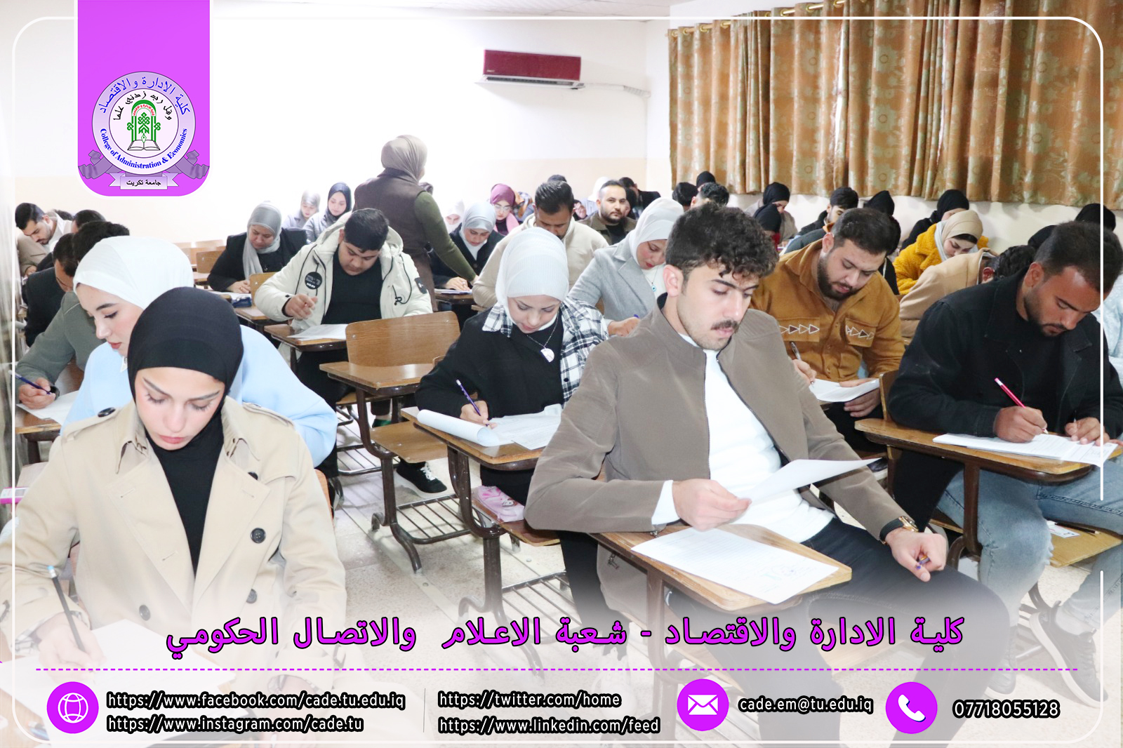 بدأت في كلية الإدارة والاقتصاد / جامعة تكريت الامتحانات النهائية لطلبة الدراسات الأولية للفصل الدراسي الأول (الدور الأول) للعام الدراسي 2024/2025 ، وذلك يوم الخميس الموافق 19/12/2024.