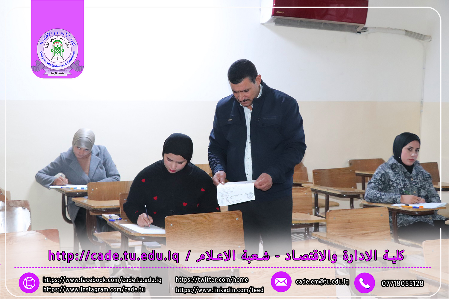 استقبل الأستاذ الدكتور عبدالرزاق حمد حسين، عميد كلية الإدارة والاقتصاد، وبرفقة المدرس المساعد أحمد عايد مخلف، معاون العميد للشؤون الإدارية، اللجنة المركزية الخاصة بمتابعة سير الامتحانات النهائية للفصل الدراسي الأول/ الدور الأول، برئاسة الأستاذ المساعد الدكتور قادر عبد الله شناك، احد اعضاء اللجنة المركزية من رئاسة جامعة تكريت، وذلك يوم السبت الموافق 2024/12/28.