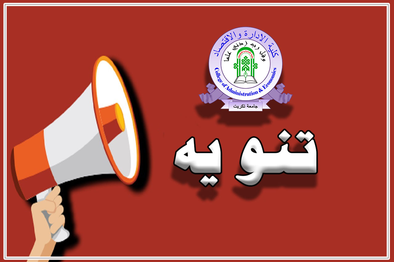 وتؤكد عمادة الكلية على ضرورة التزام الطلبة بالمواعيد الجديدة المعلنة، وتتمنى عمادة كلية الإدارة والاقتصاد لجميع الطلبة النجاح والتوفيق في مسيرتهم العلمية.