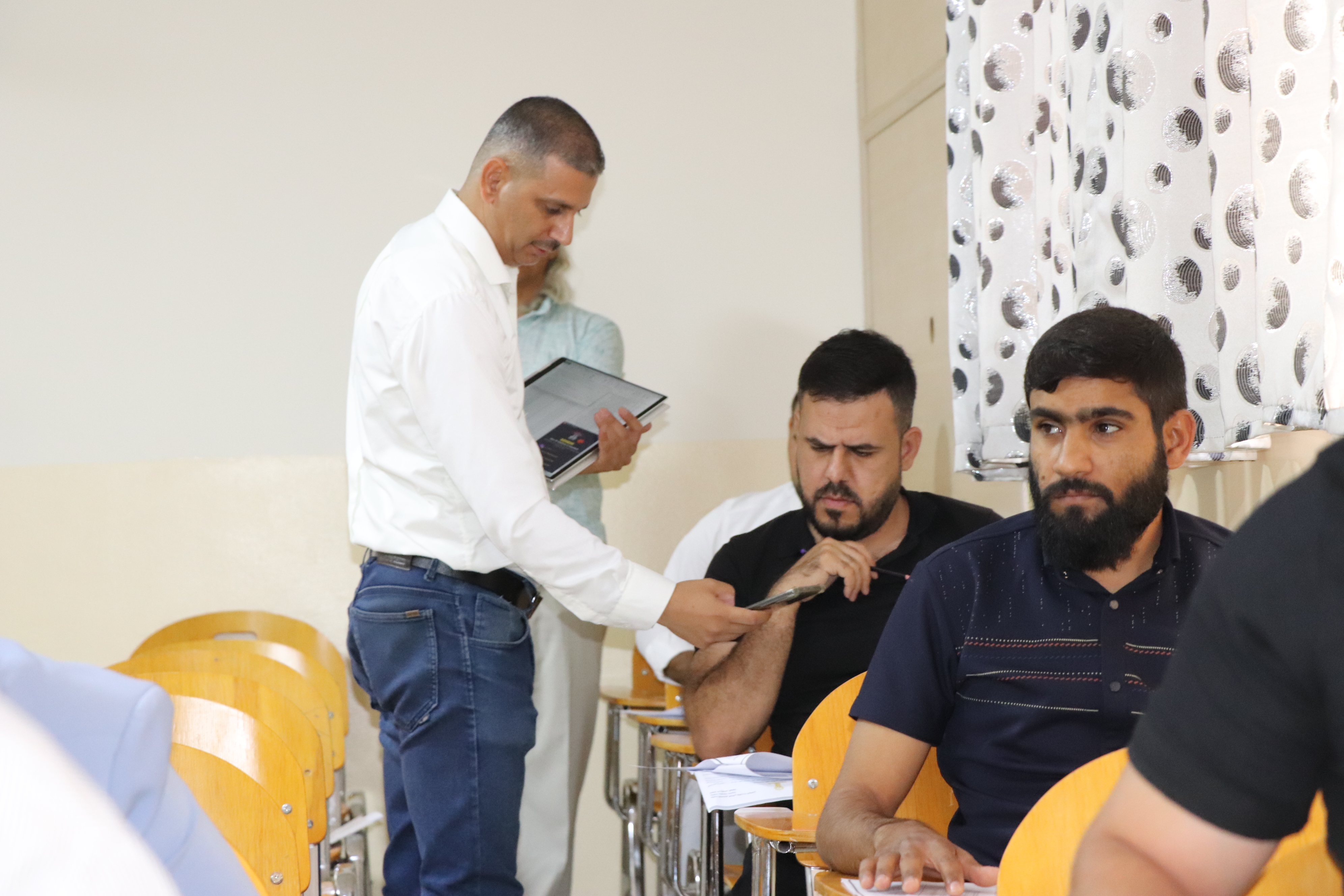 هذا وقام السيد العميد الأستاذ الدكتور عبد الرزاق حمد حسين، والسيد معاون العميد للشؤون العلمية الأستاذ المساعد الدكتور أشرف هاشم فارس، بالاطلاع على سير الامتحان التنافسي لضمان انتظامه وسلامة الإجراءات المتبعة.