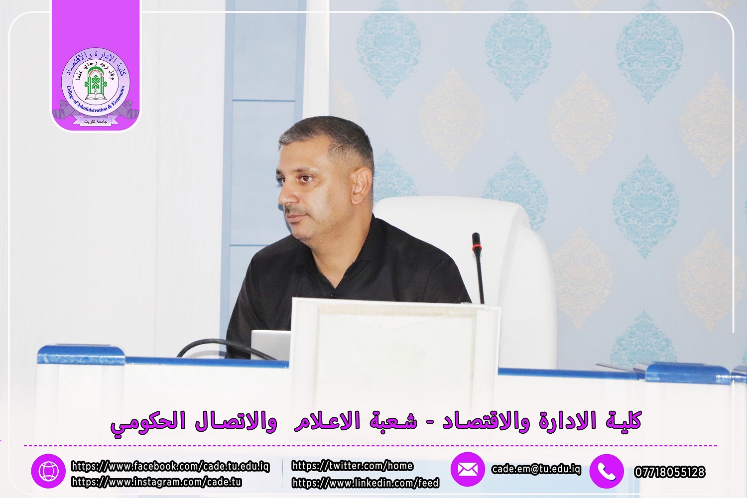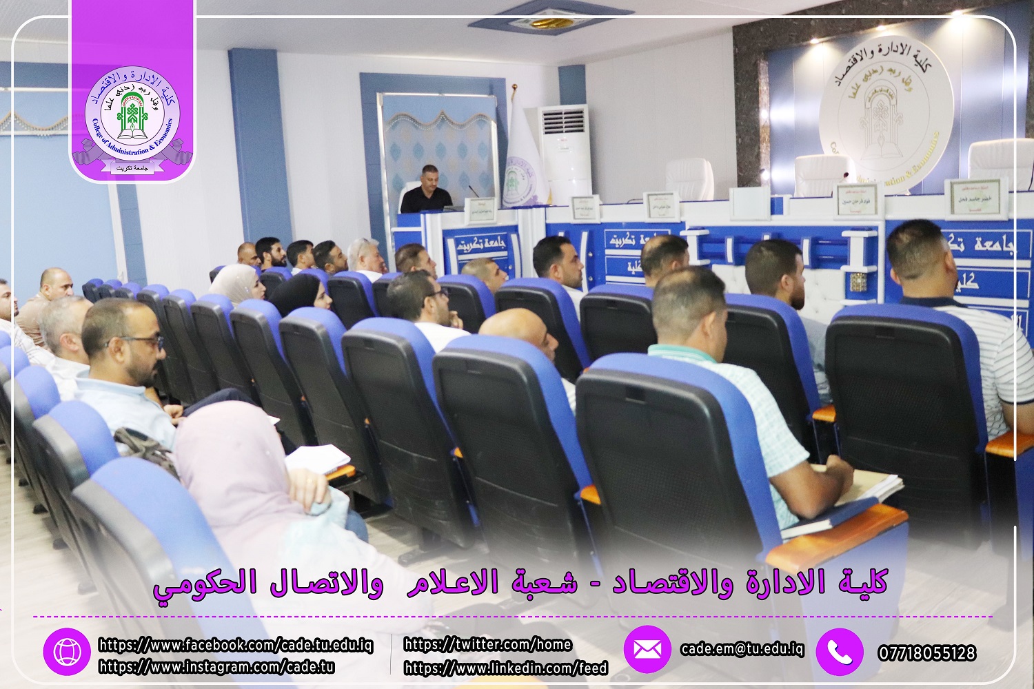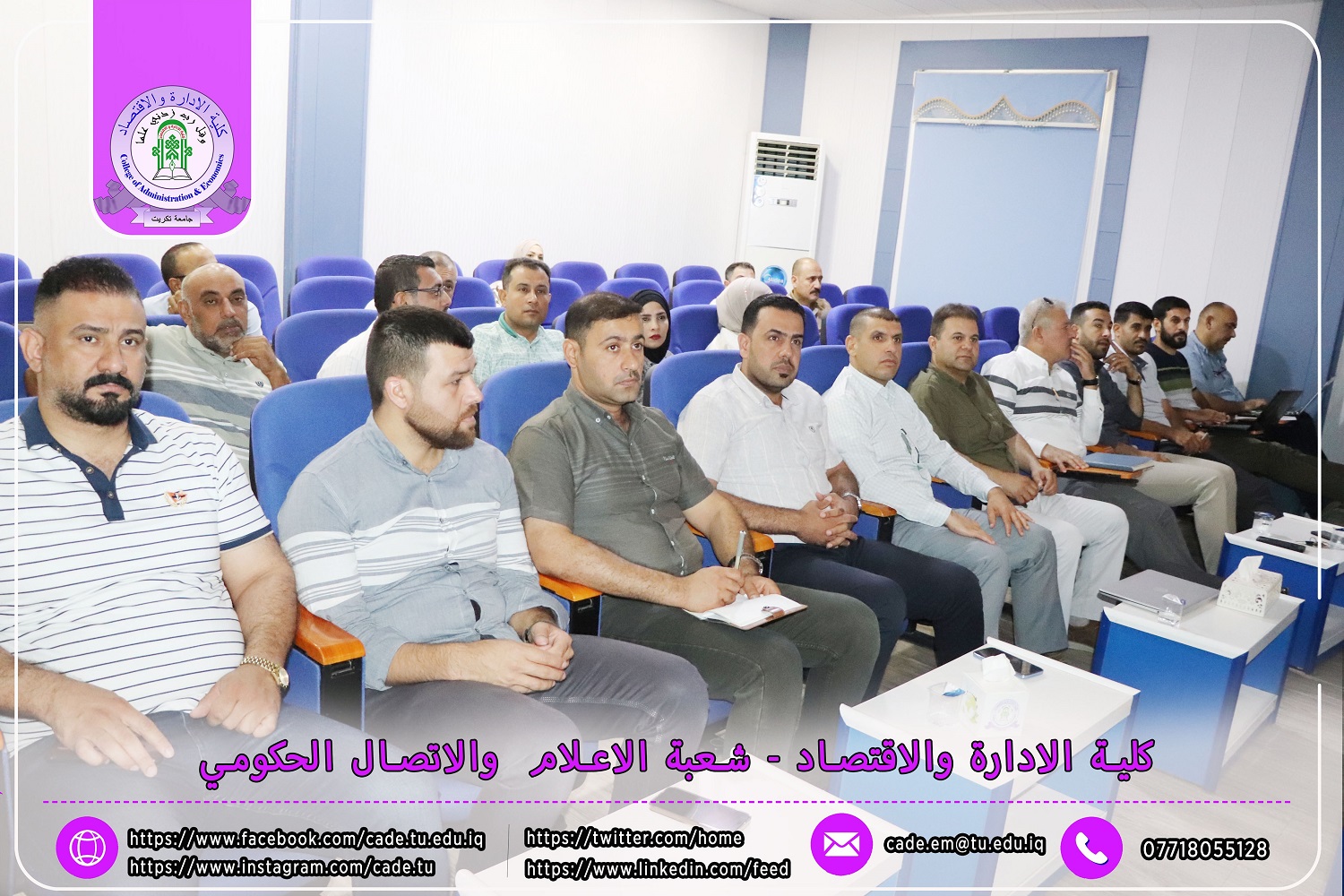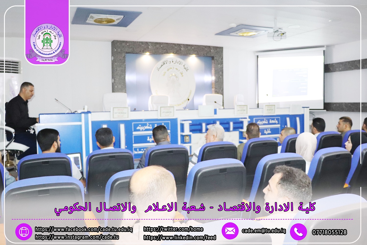 في إطار الجهود المستمرة لتعزيز البنية التحتية التعليمية وتلبية متطلبات وزارة التعليم العالي والبحث العلمي، نظّمت كلية الإدارة والاقتصاد بجامعة تكريت ورشة عمل متخصصة حول إدارة النظام الإلكتروني لمسار بولونيا للعام الدراسي 2024 / 2025.