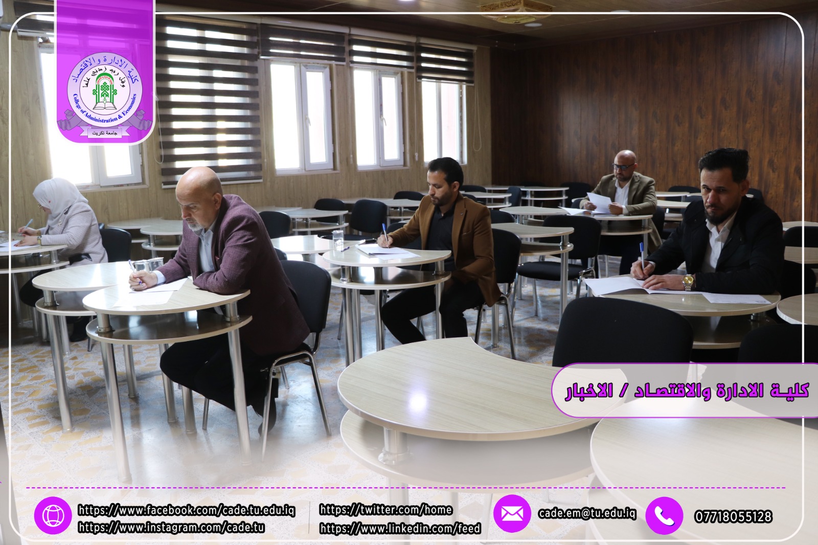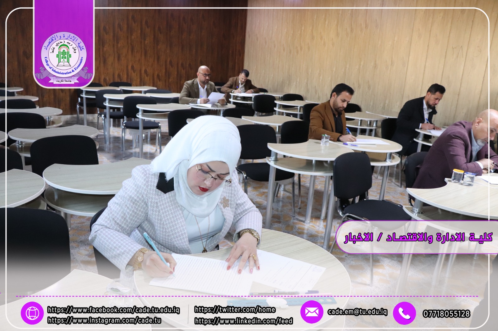 جرى في كلية الإدارة والاقتصاد في جامعة تكريت، صباح يوم الاربعاء الموافق 15 /1/ 2025، الامتحان الشامل لطلبة الدكتوراه في قسم إدارة الاعمال، للعام الدراسي 2024-2025، وذلك على قاعة الدراسات العليا