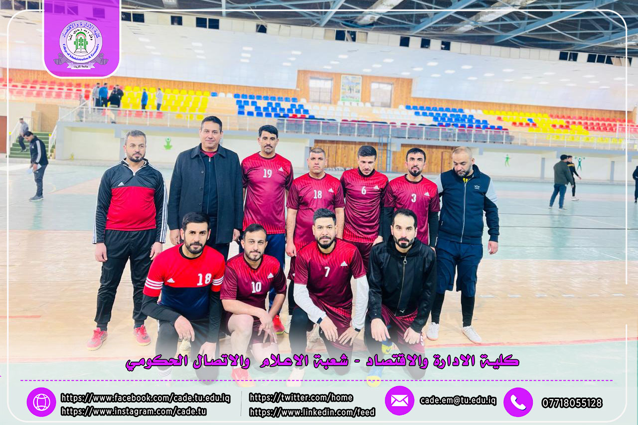 ضمن فعاليات بطولة كأس السيد رئيس جامعة تكريت لكرة قدم الصالات للتدريسيين، التي تنظمها شعبة النشاطات الطلابية في كلية التربية البدنية وعلوم الرياضة، للعام الدراسي 2025/2026 وعلى القاعات التدريبية في الكلية، واصل فريق تدريسيي كلية الإدارة والاقتصاد عروضه المميزة محققًا فوزًا جديدًا ومستحقًا.