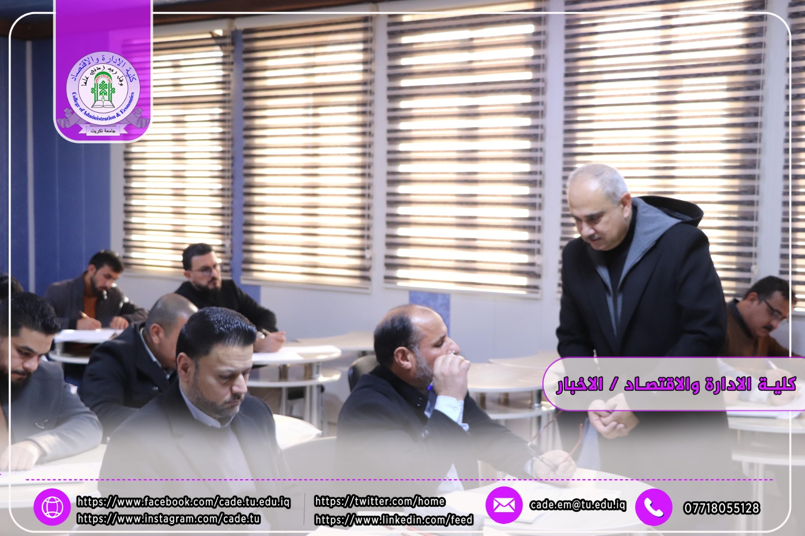 زارت اللجنة المركزية المكلفة بمتابعة امتحانات الدراسات العليا المتمثلة بالأستاذ الدكتور (سرمد احمد موسى) كلية الإدارة والاقتصاد / جامعة تكريت لتفقد سير الامتحانات النهائية لطلبة الدراسات العليا للفصل الدراسي الأول للعام الدراسي 2024/2025 وذلك يوم الخميس الموافق 23/1/2025.