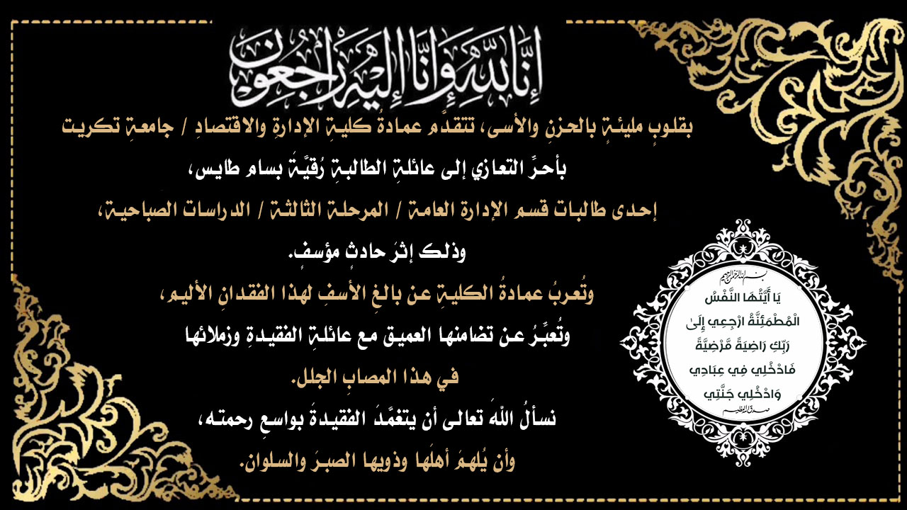 المقال التالي: تنويه هام ..... إلى الخريجين الثلاثة الأوائل للعام الدراسي 2024–2025 من كلية الإدارة والاقتصاد / جامعة تكريت