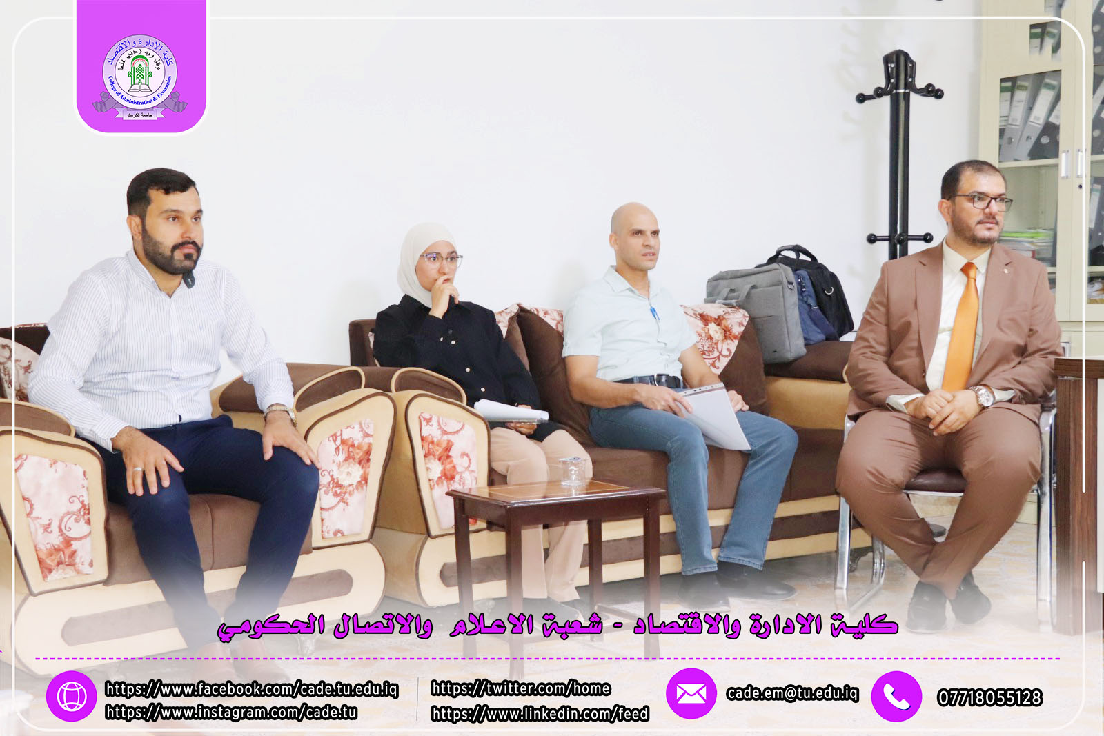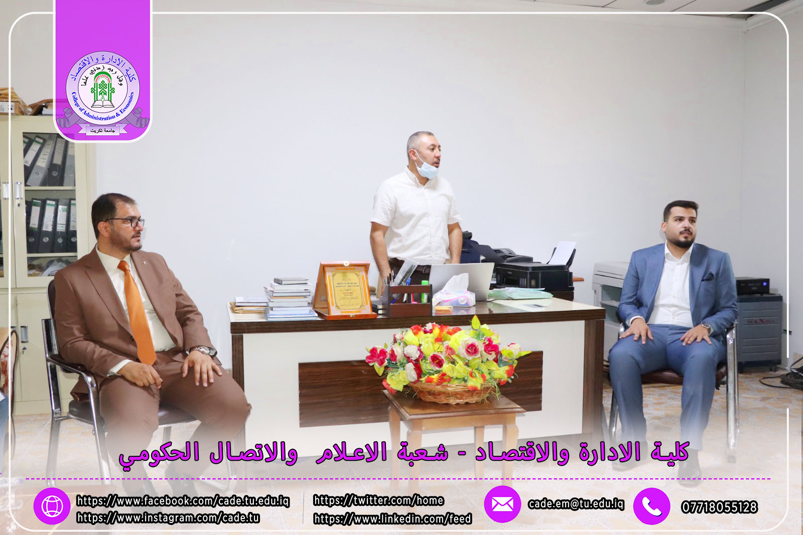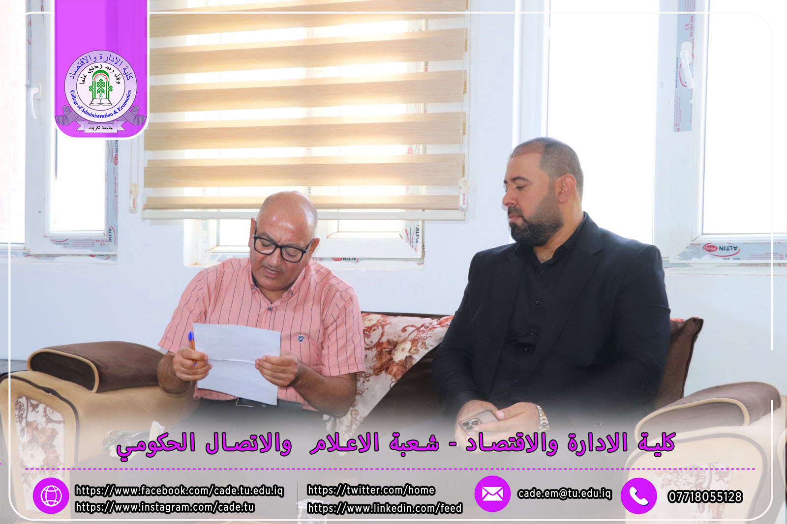 استقبل المدرس الدكتور أحمد عايد مخلف، معاون العميد للشؤون الإدارية في كلية الإدارة والاقتصاد / جامعة تكريت، في مكتبه صباح يوم الاثنين، الأستاذ الدكتور أركان برع محمد، مدير قسم ضمان الجودة والأداء الجامعي.