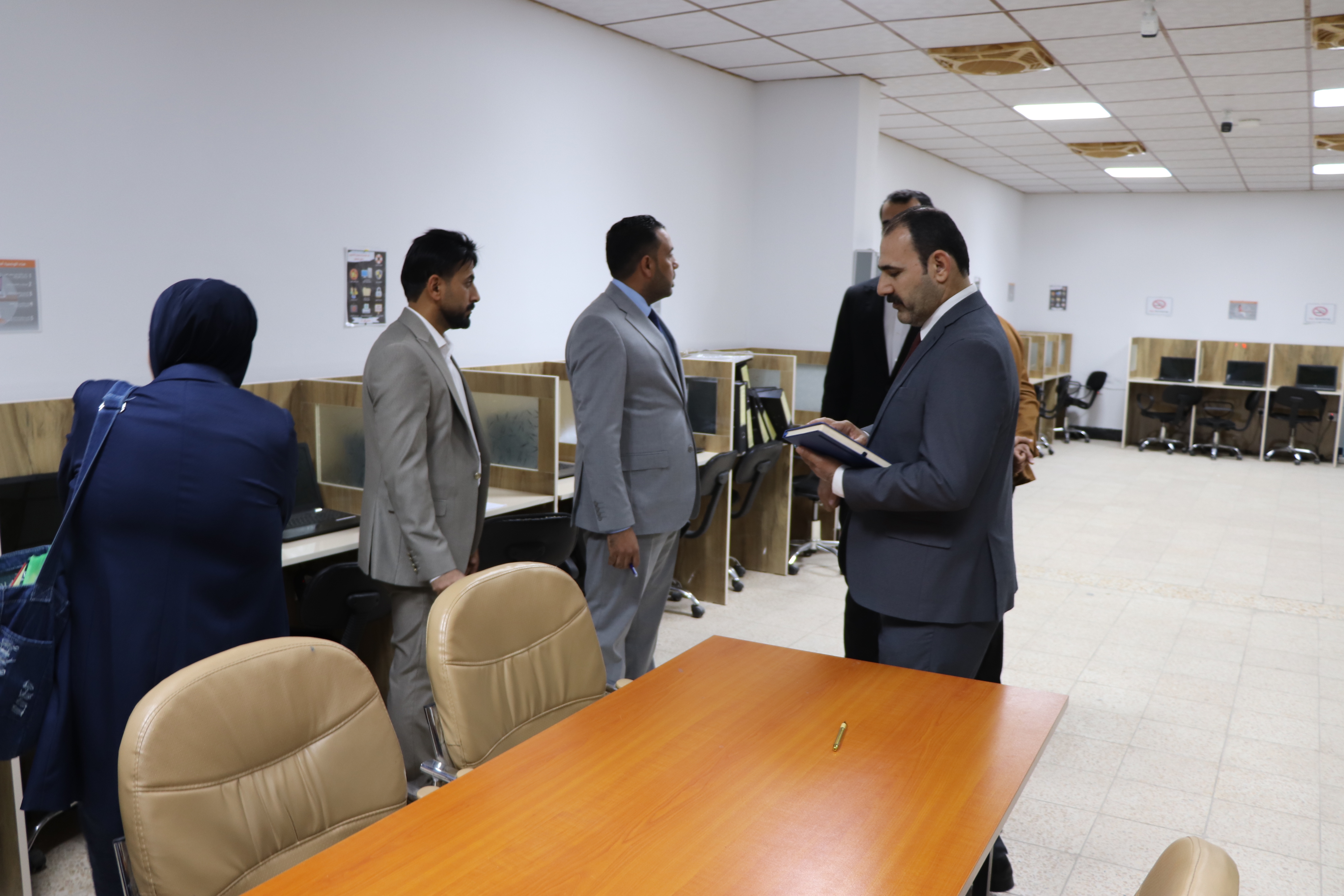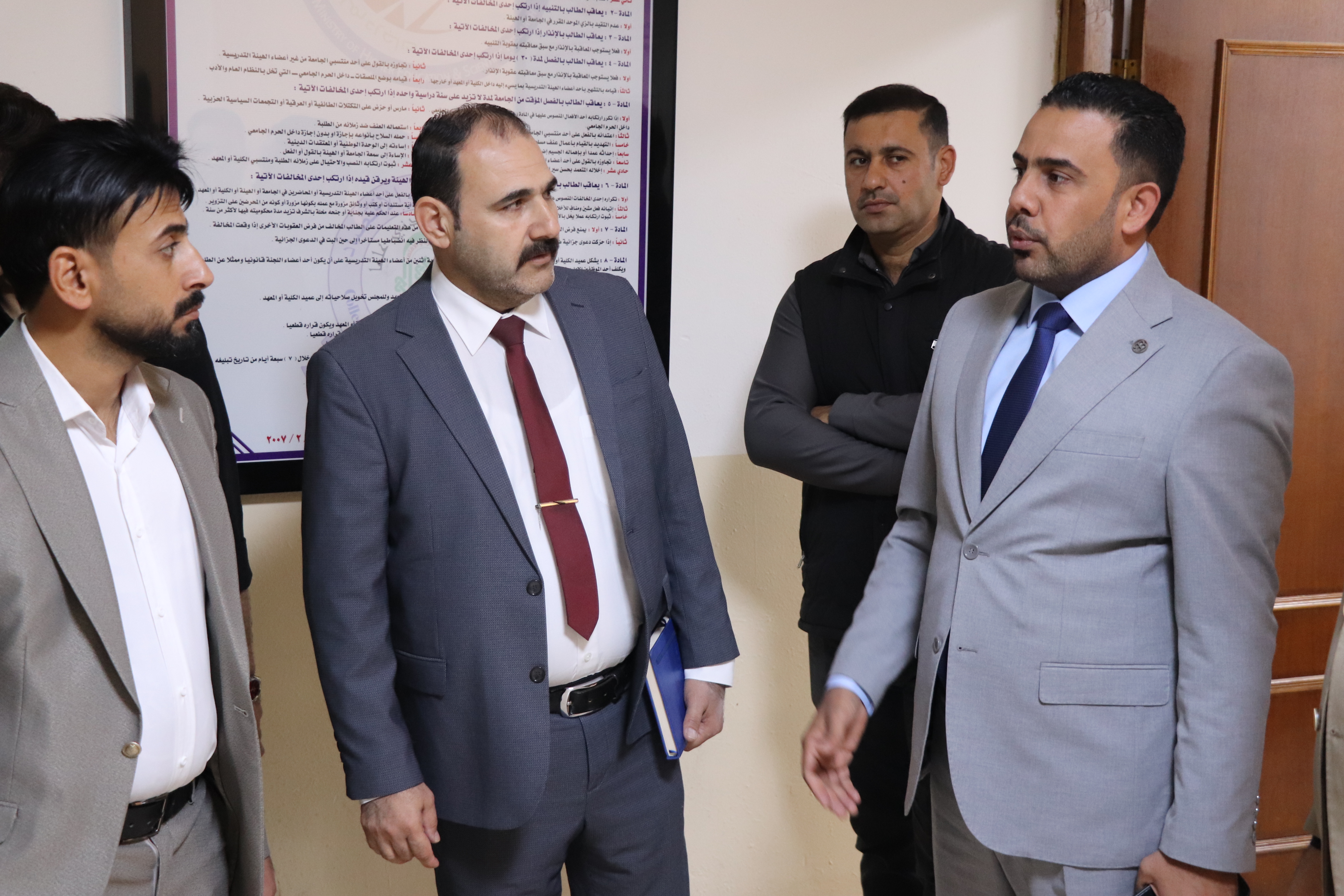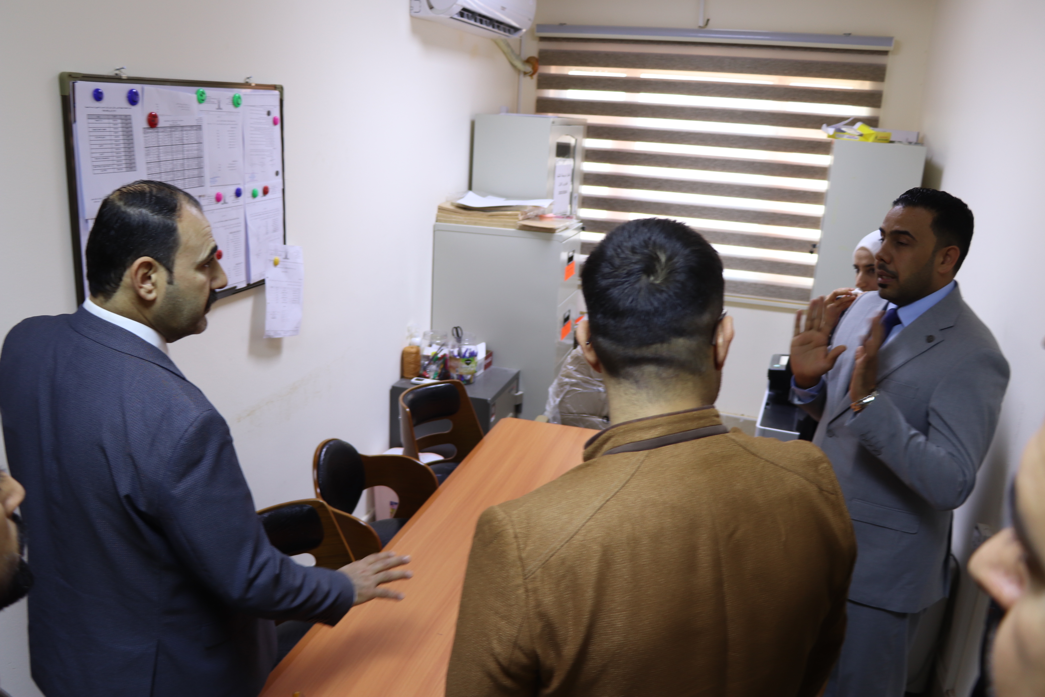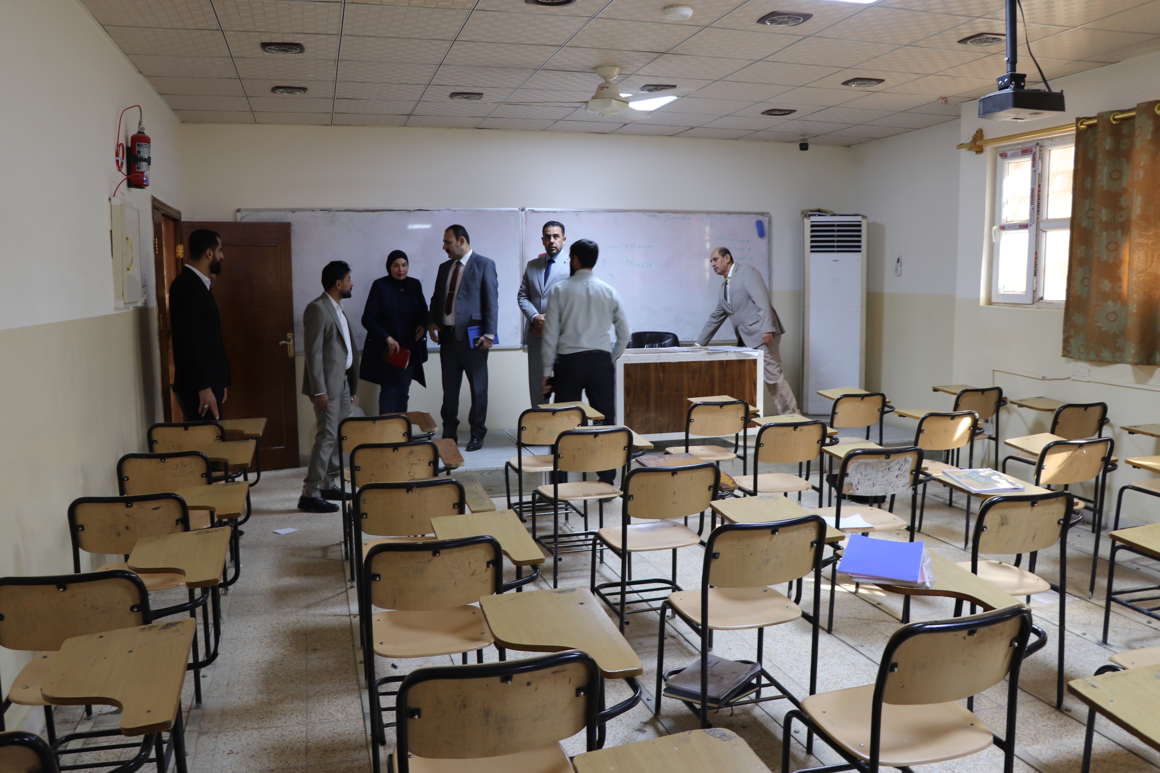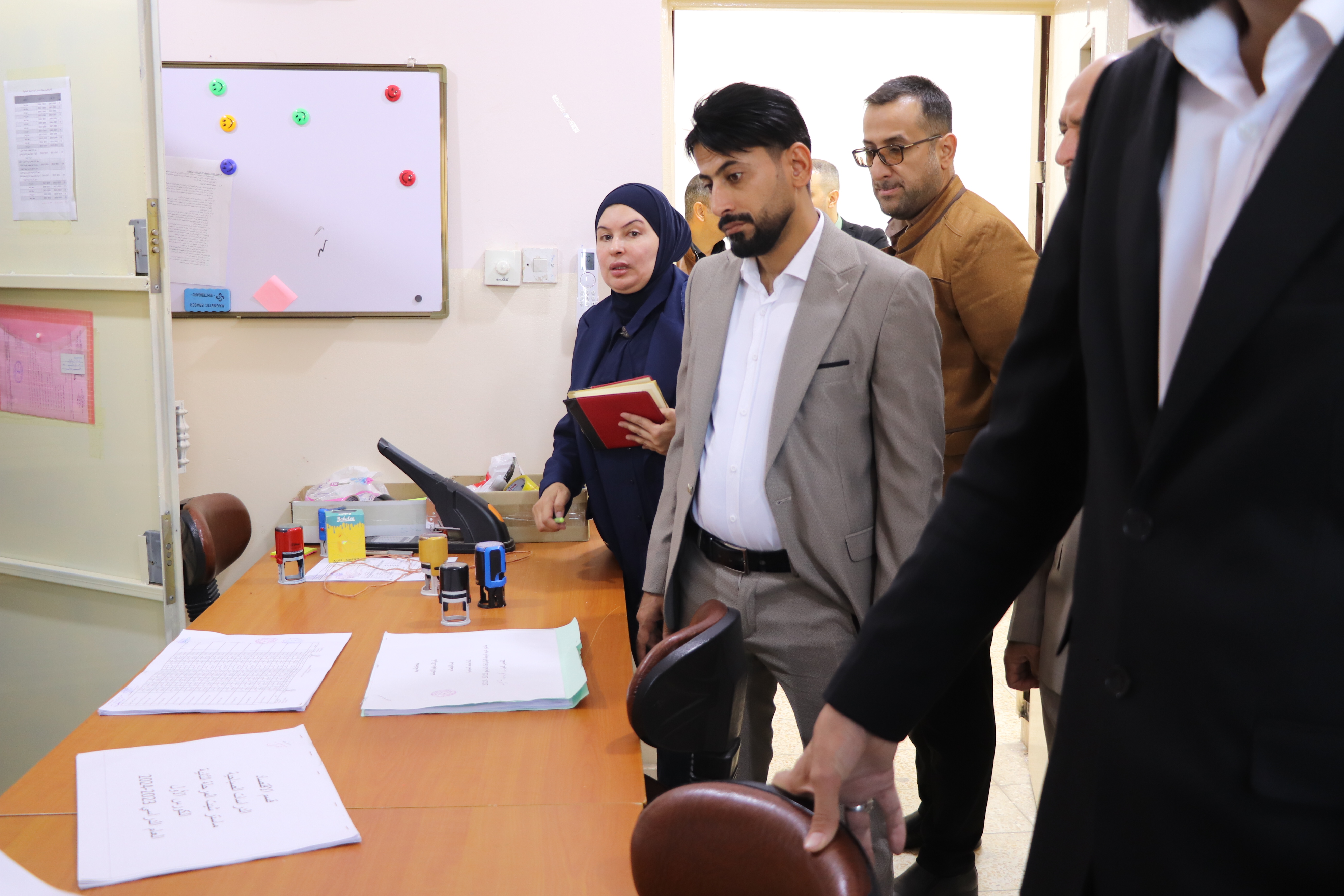 ترأس اللجنة الوزارية م.م. أحمد محمد سليم، ورافقه أربعة من أعضاء اللجنة الذين باشروا بجولة ميدانية داخل الكلية شملت الأقسام العلمية والقاعات الدراسية واللجان الامتحانية والمكاتب الإدارية التابعة لكل قسم، بالإضافة إلى الاطلاع على الواقع الفني والإداري والأكاديمي في الأقسام المستحدثة لضمان تحقيق معايير الاستحداث المعتمدة.
