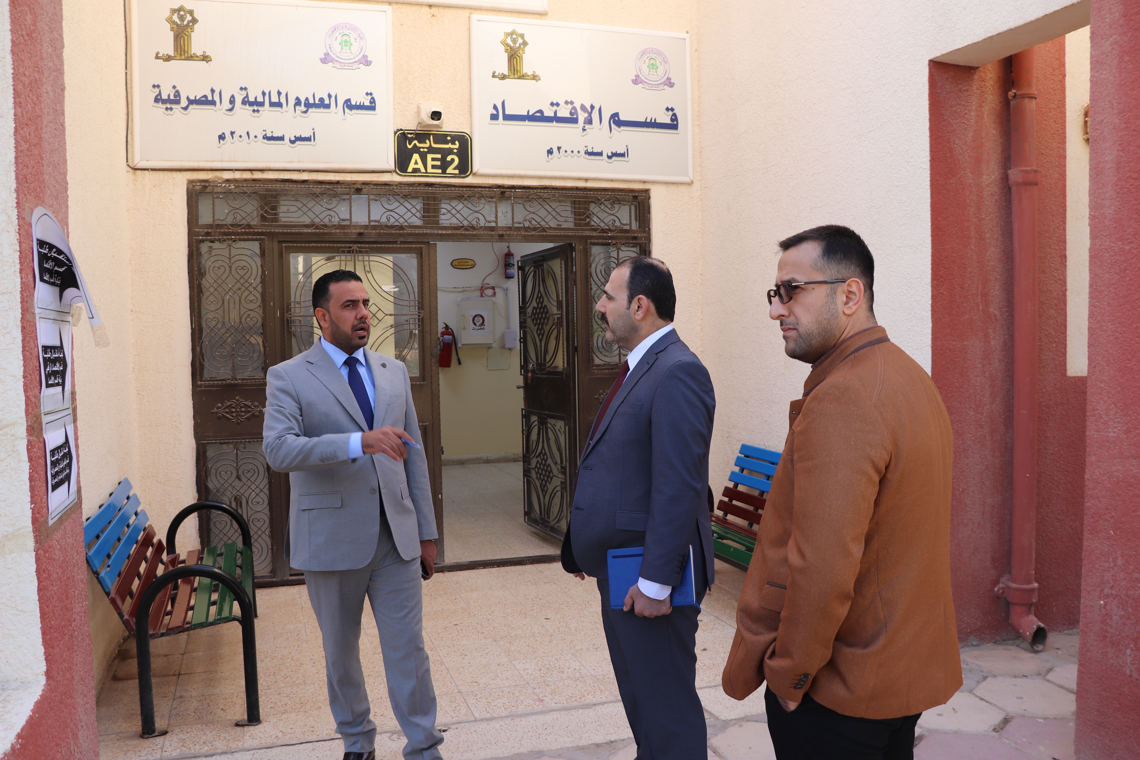 وكان في استقبال اللجنة الأستاذ المساعد الدكتور قتيبة إبراهيم حمادة، معاون العميد لشؤون الطلبة، وا.م.د. عمر عبد الله محمد رئيس قسم الاقتصاد، وم.د. احمد عايد مخلف رئيس قسم ادارة التسويق، حيث قدّم السيد معاون العميد شرحًا وافيًا عن استعدادات الكلية وخطتها الأكاديمية. وأشاد خلال لقائه مع اللجنة بالدعم المستمر الذي توليه الجامعة لتطوير البيئة التعليمية وفتح آفاق تخصصية تلائم التطورات الحديثة في الإدارة والاقتصاد.