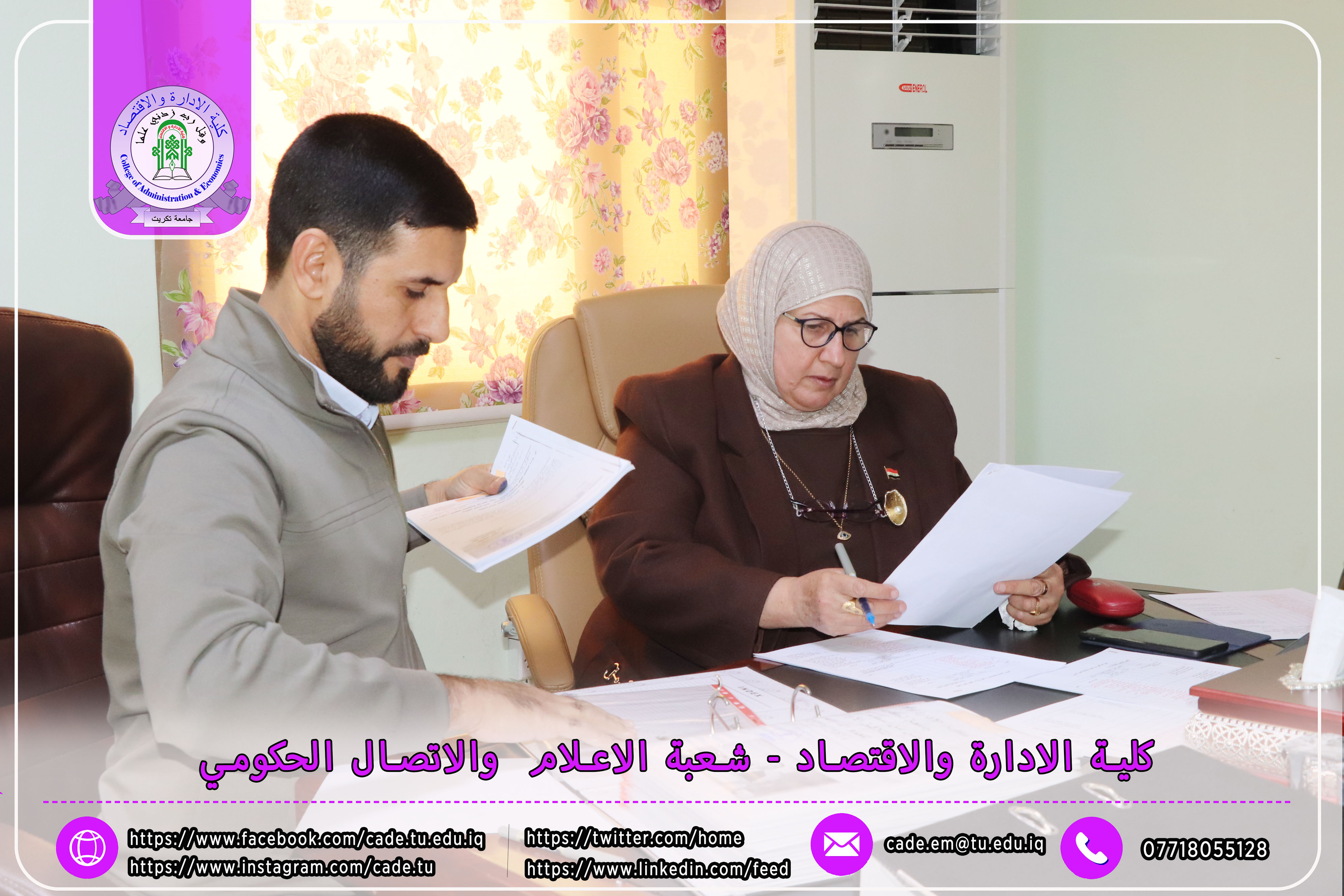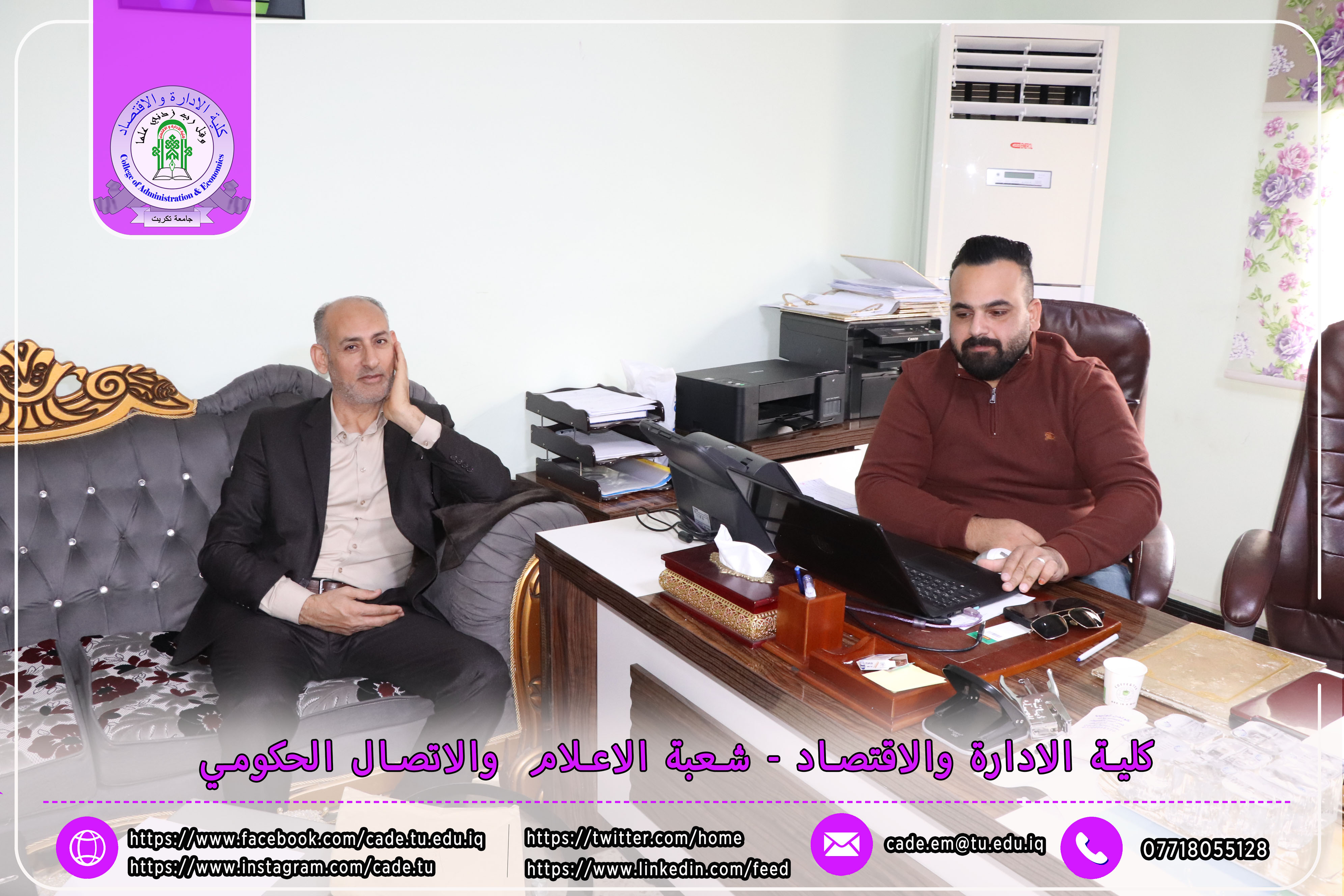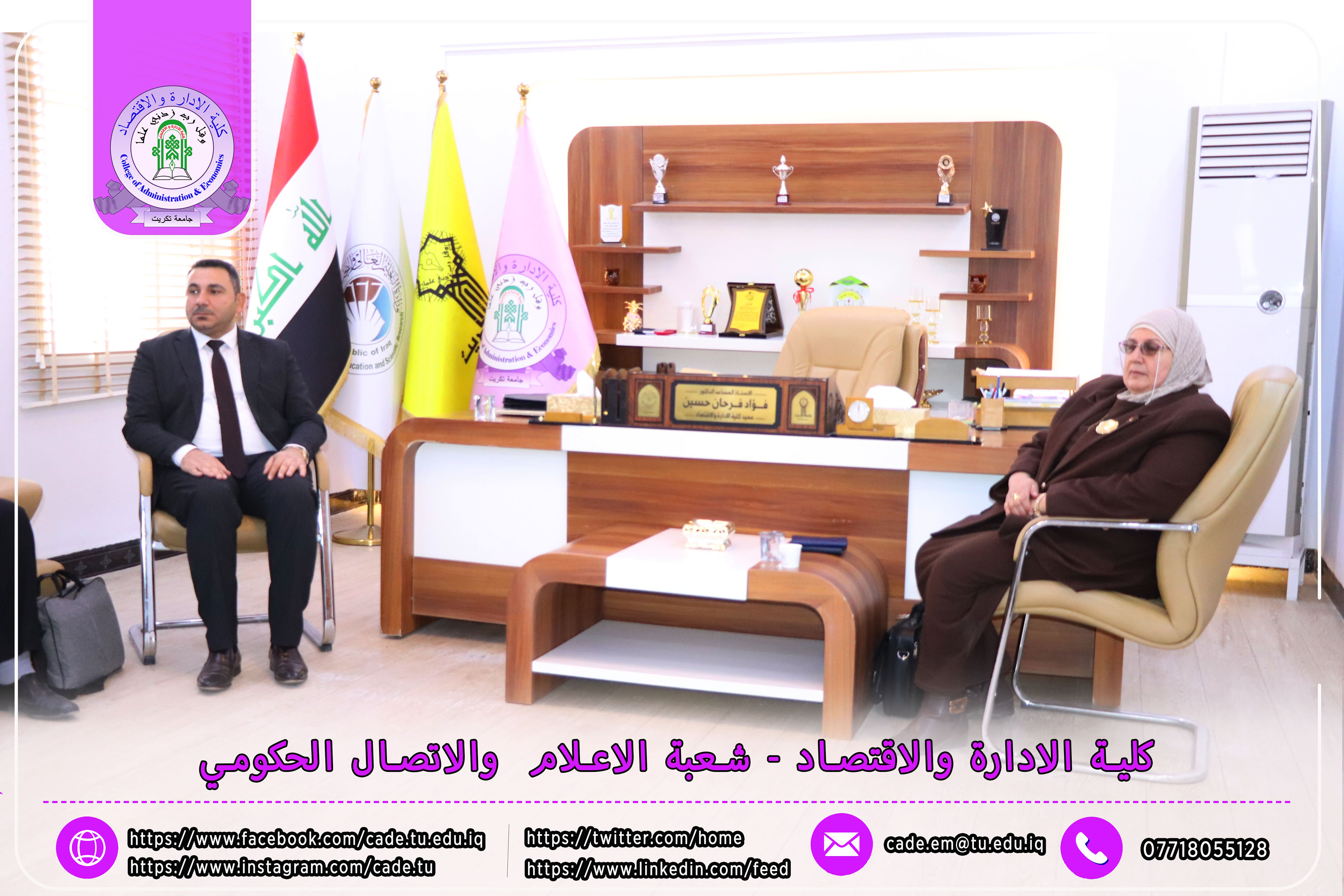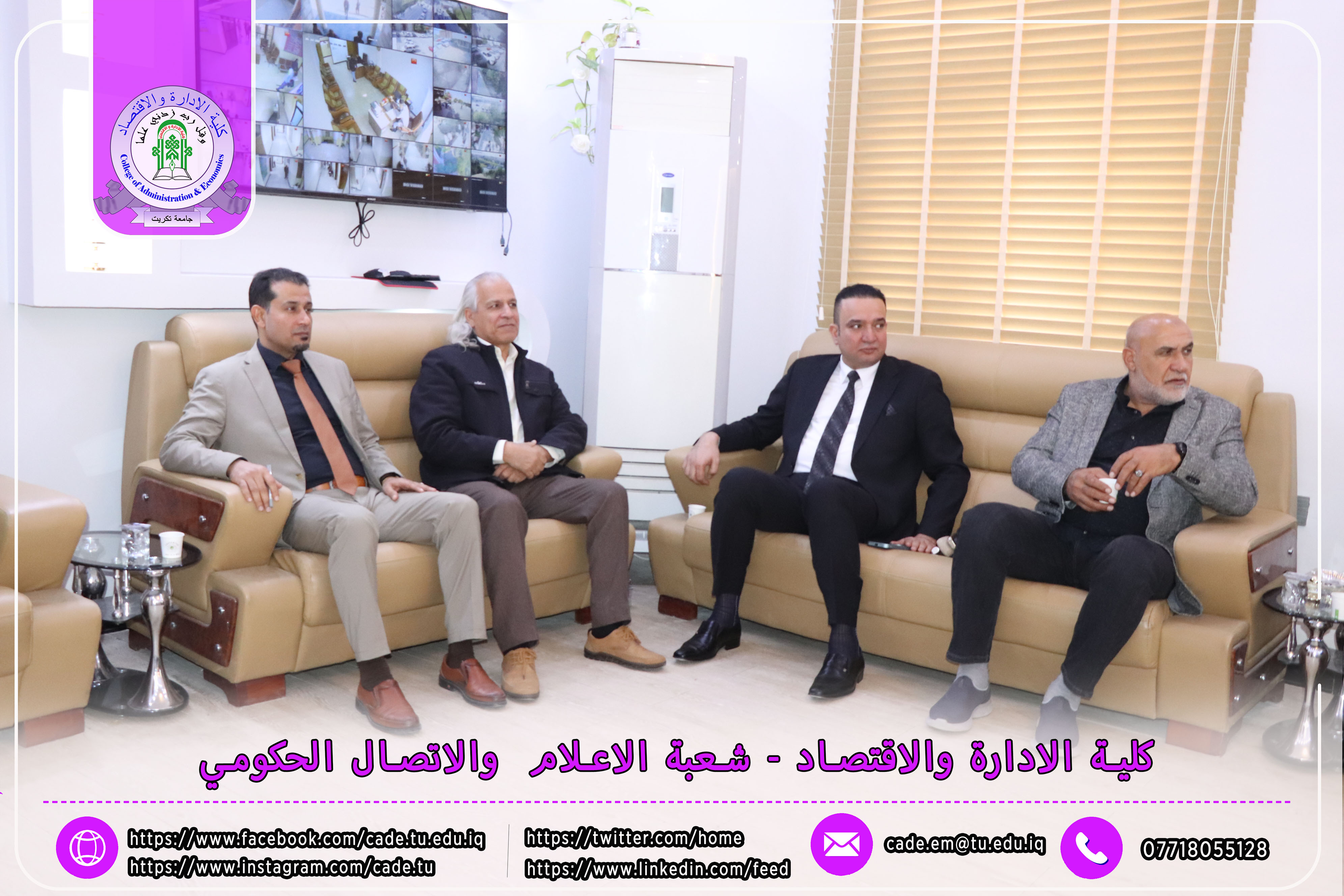 وكان في استقبال اللجنة كلٌّ من الأستاذ المساعد الدكتور فؤاد فرحان حسين عميد كلية الإدارة والاقتصاد، والأستاذ المساعد الدكتور خطاب عمران صالح معاون العميد للشؤون العلمية، إلى جانب عدد السادة التدريسيين ومسؤولي الشعب والوحدات الإدارية.