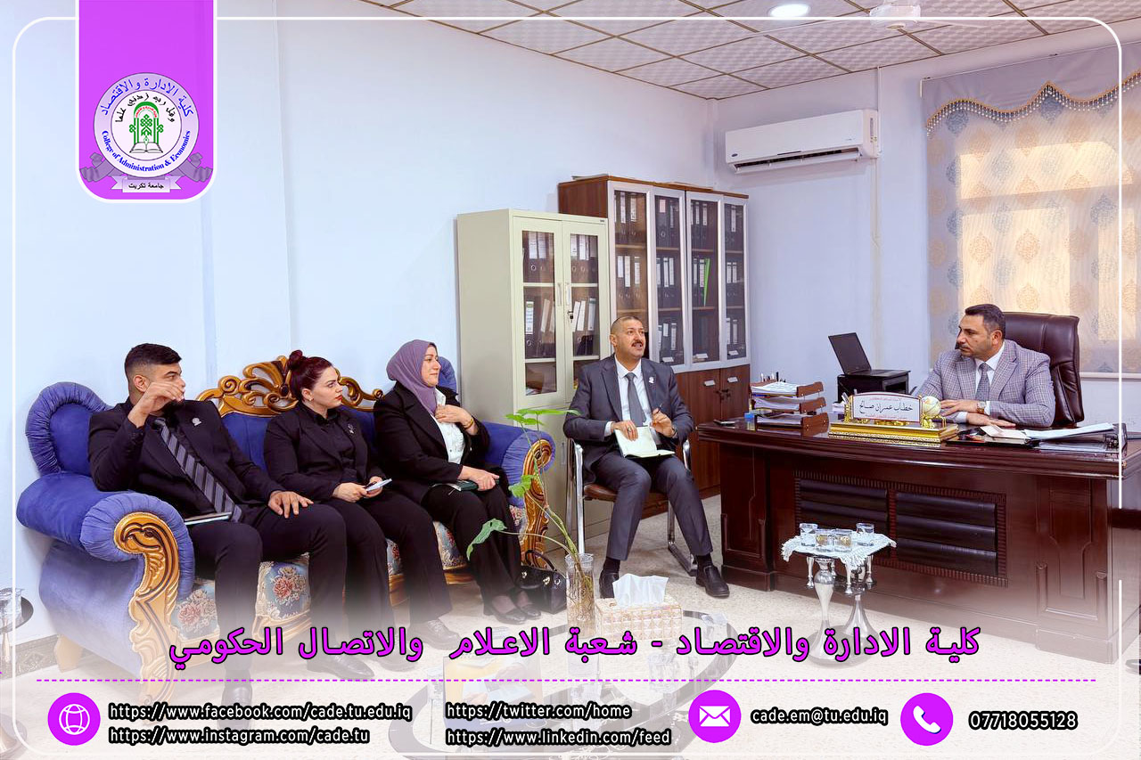 في إطار تعزيز أواصر التعاون العلمي والمؤسسي بين جامعة تكريت والمؤسسات المالية الوطنية، واستعداداً لانطلاق مؤتمرها العلمي الدولي السابع، استقبلت كلية الإدارة والاقتصاد وفداً من البنك المركزي العراقي – فرع الموصل، وذلك يوم الخميس الموافق 2025/11/27.