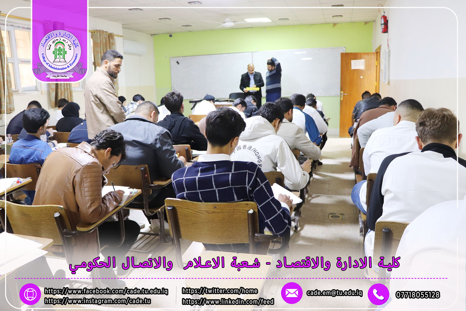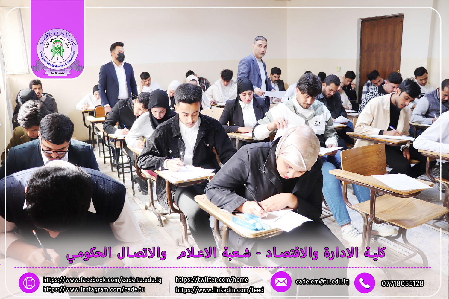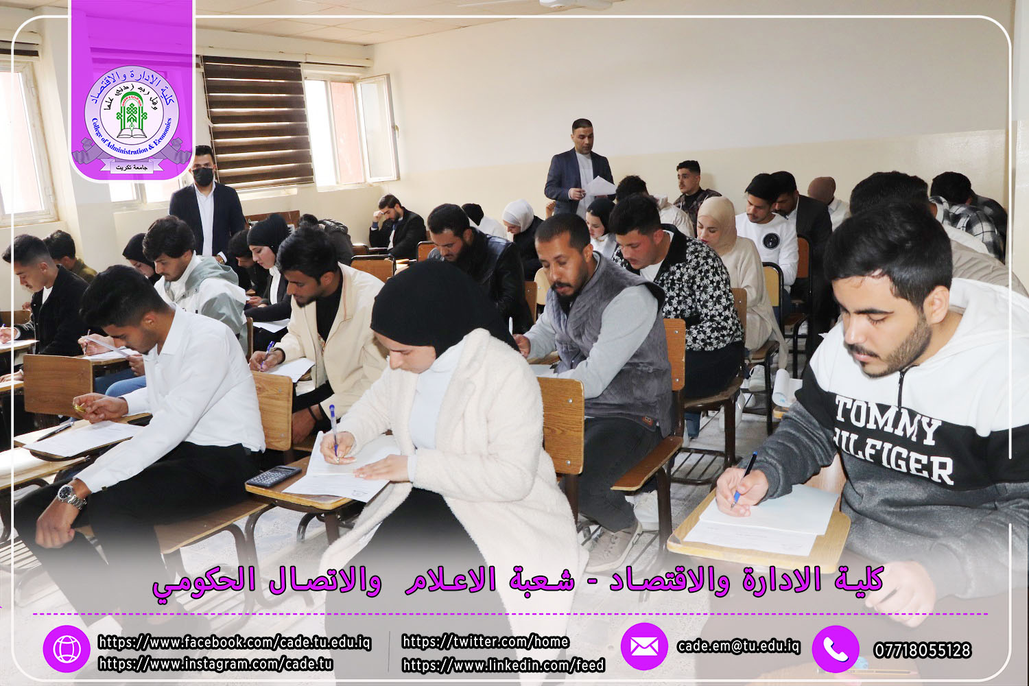 انطلقت في كلية الإدارة والاقتصاد يوم الأحد الموافق 16 /2/ 2025، امتحانات الدور الاول للفصل الدراسي الأول/ لطلبة المرحلة الأولى / للعام الدراسي 2025/2024، وسط أجواء تنظيمية متميزة حرصت الكلية على توفيرها لضمان سير العملية الامتحانية بسلاسة وانسيابية.