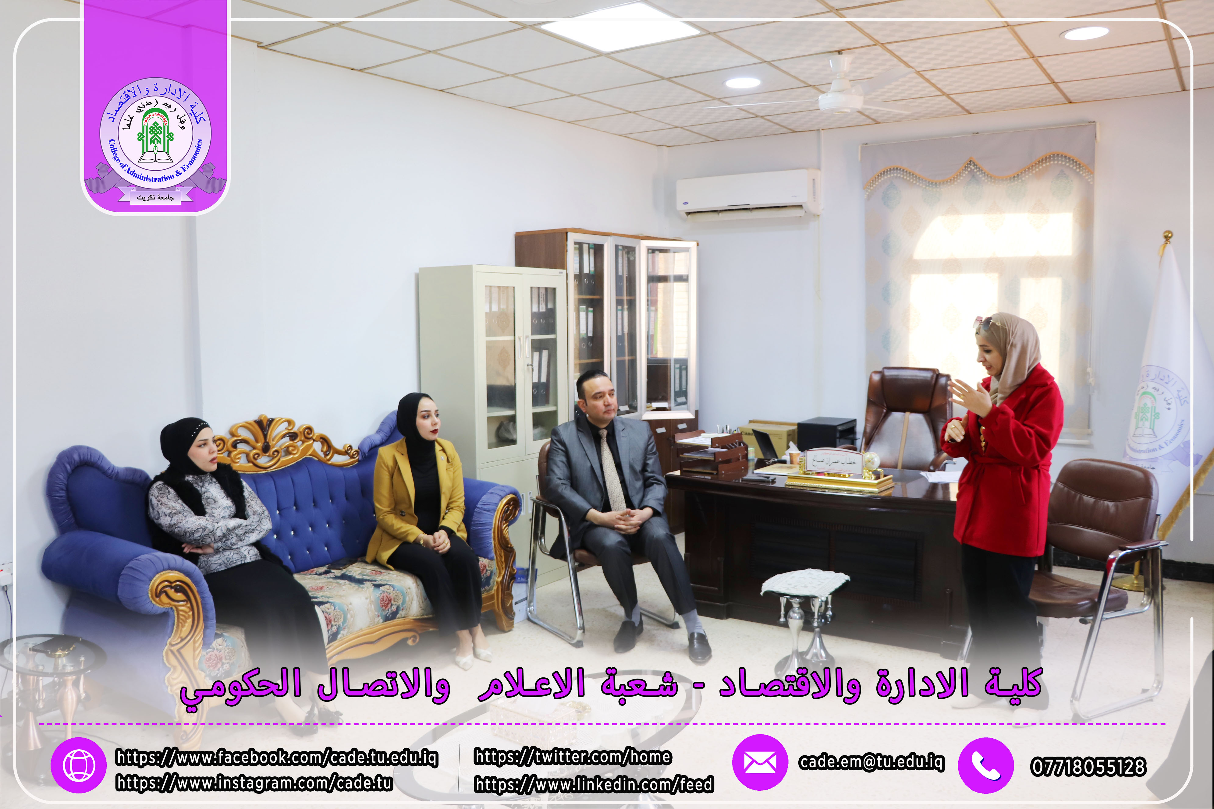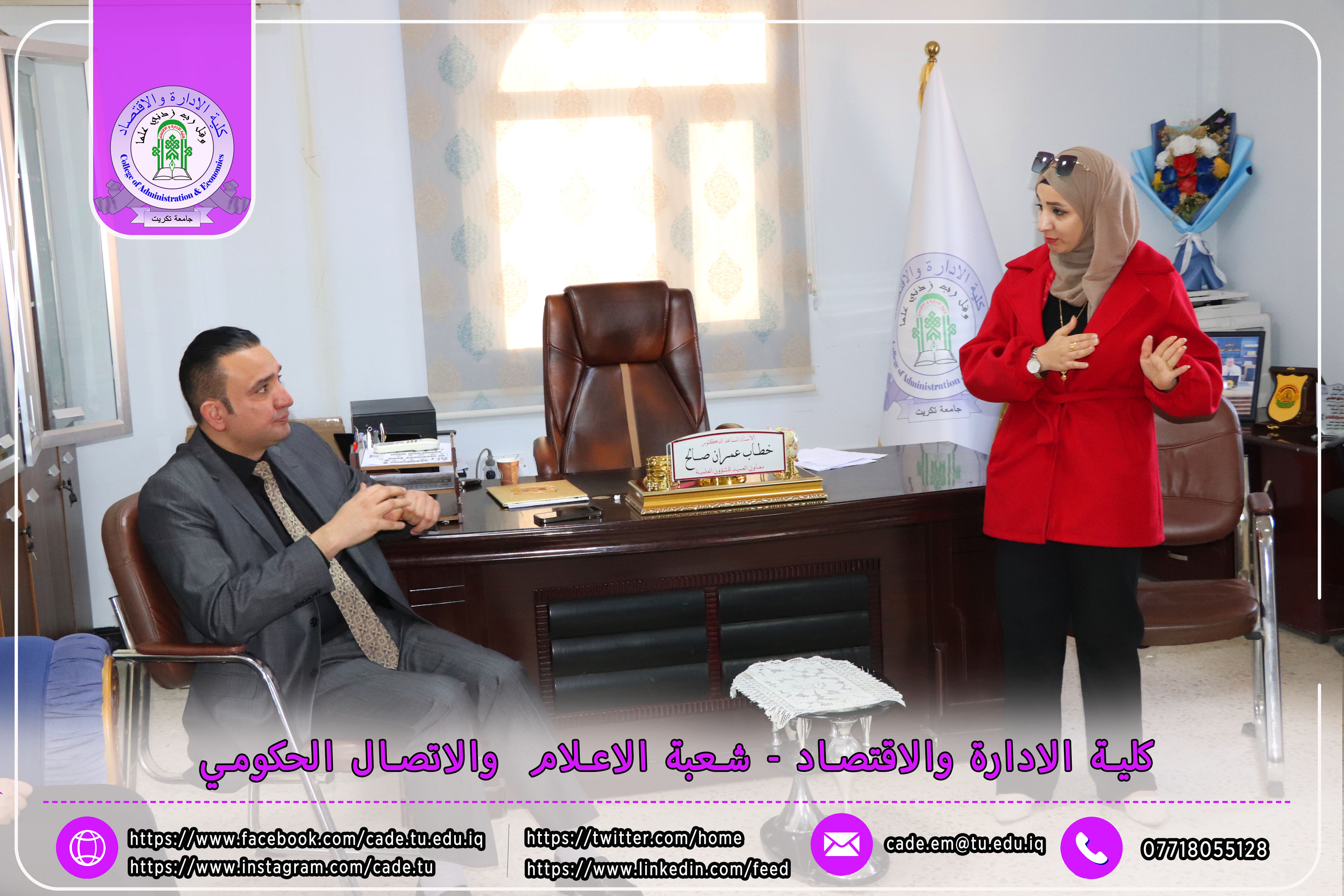 في خطوة نحو تعزيز الأداء العلمي والإداري في كلية الإدارة والاقتصاد / جامعة تكريت، عقد أ.م.د. خطاب عمران صالح، معاون العميد للشؤون العلمية صباح يوم الاثنين الموافق 2025/2/17 اجتماعًا بحضور مديرة شعبة الدراسات العليا م. ميسم رياض بحر، بالإضافة إلى عدد من موظفي شعبة الدراسات العليا.