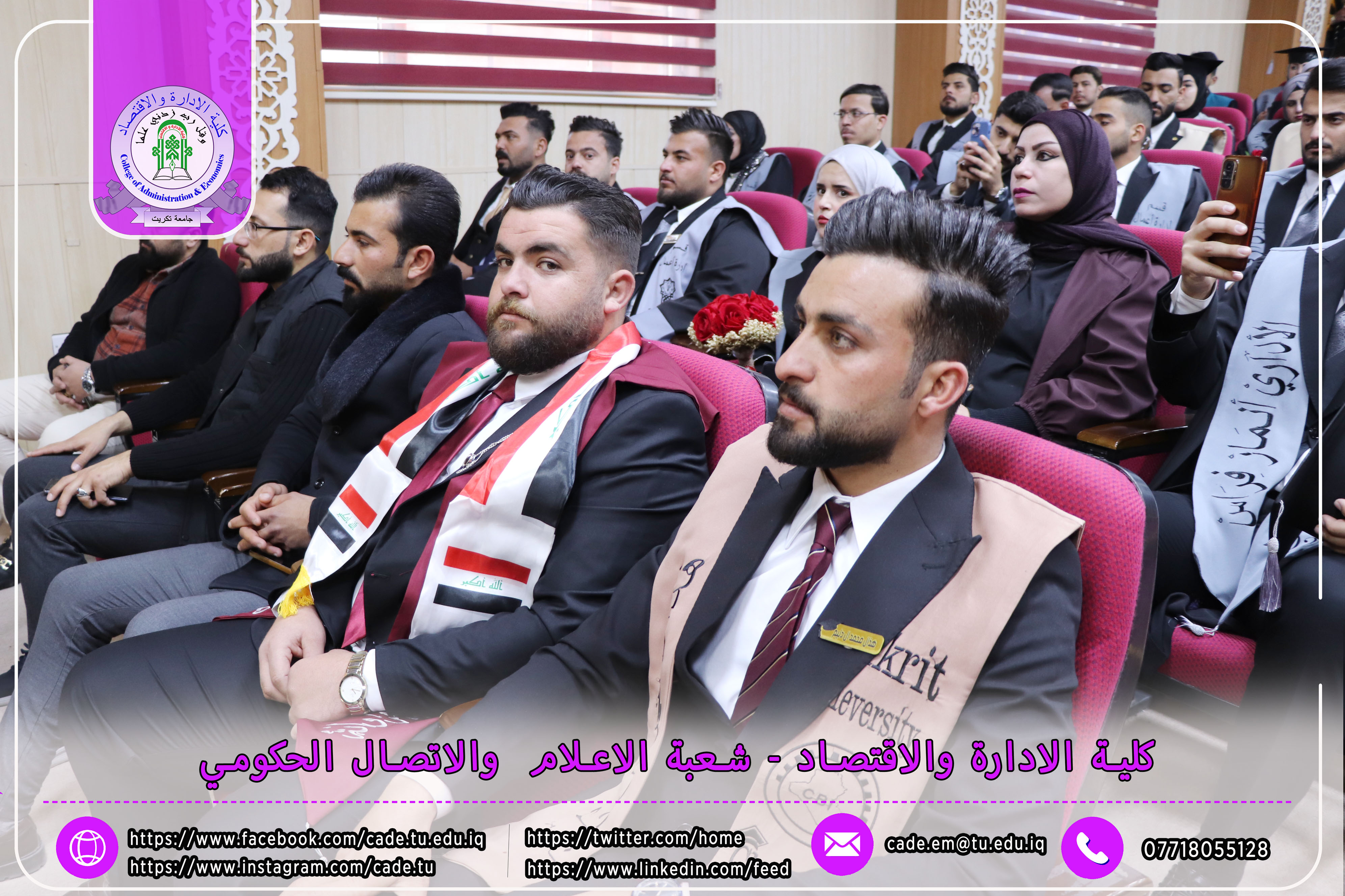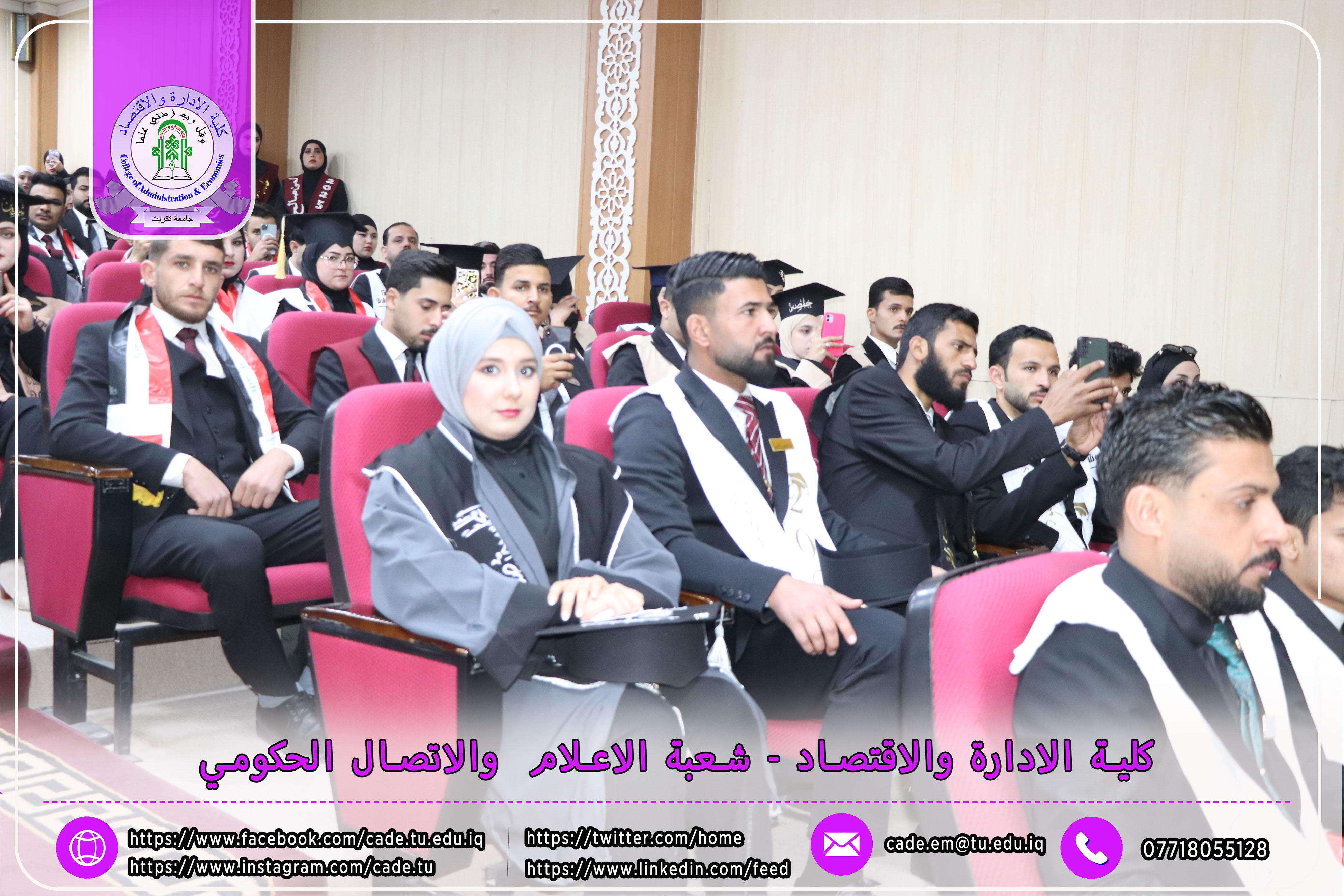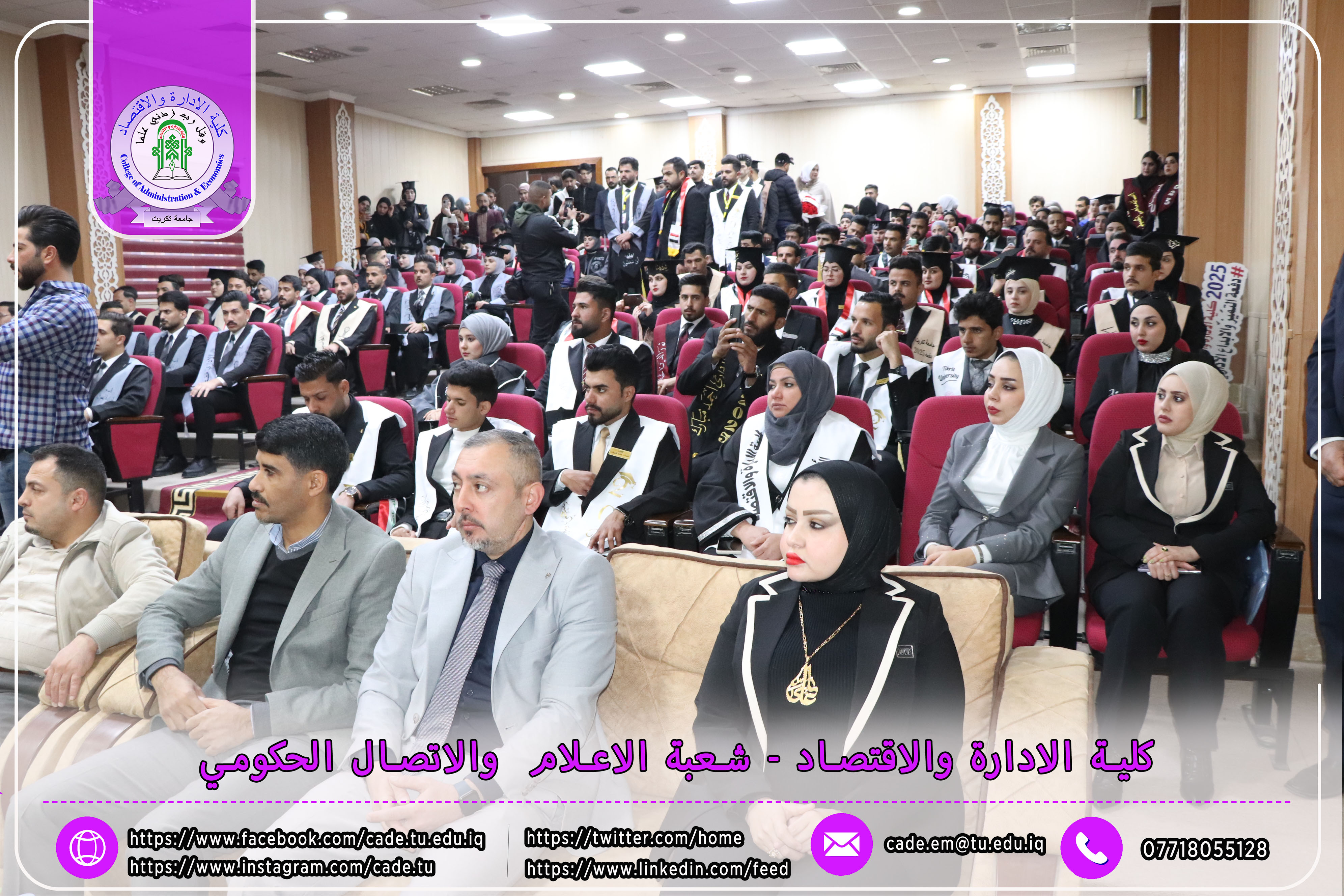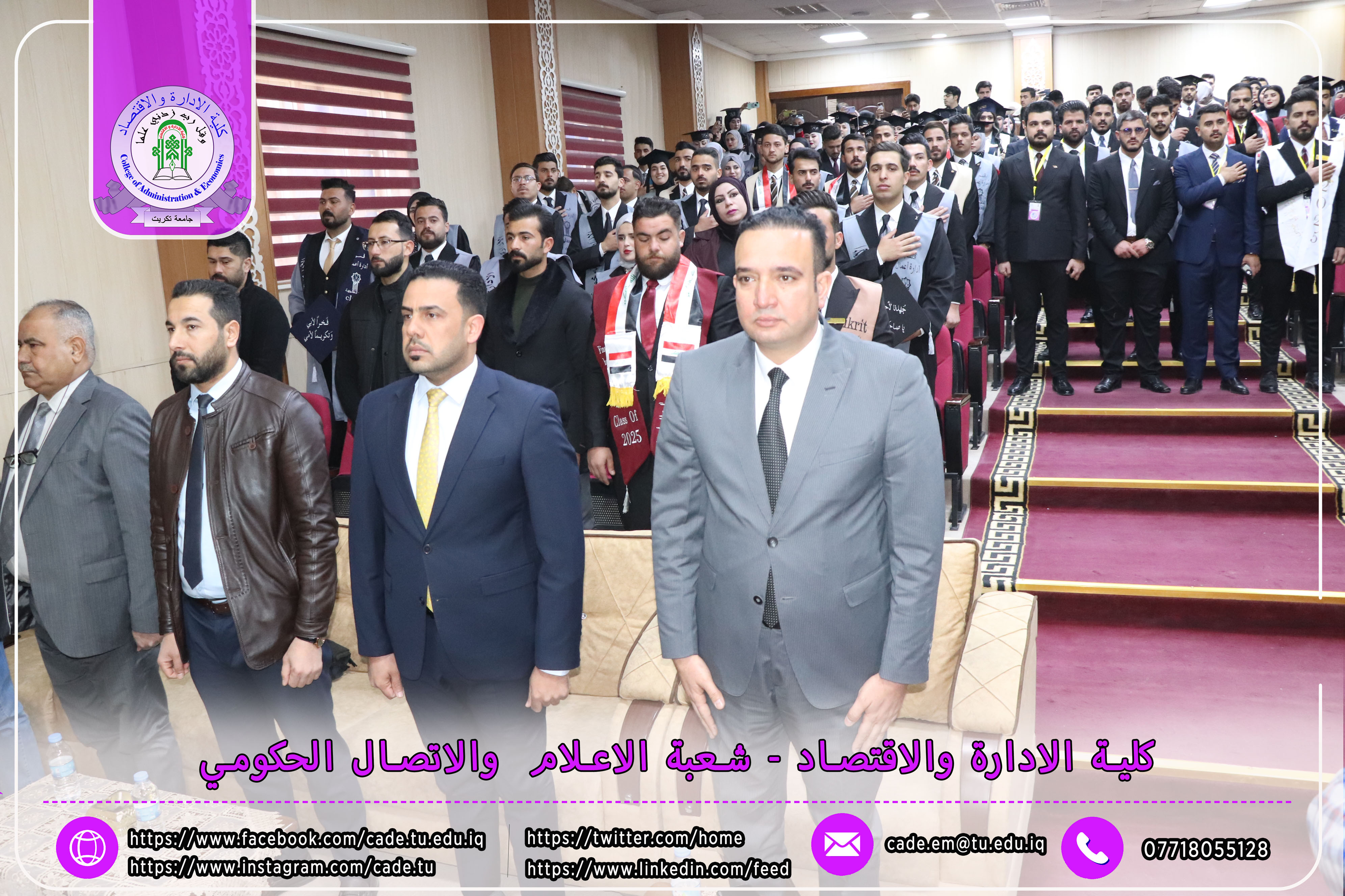 في أجواء مليئة بالفرح والفخر، نظّمت كلية الإدارة والاقتصاد بجامعة تكريت حفل تخرج مركزي لطلبة العام الدراسي 2024-2025، وذلك يوم الأربعاء الموافق 26 /2/ 2025، بحضور الأستاذ المساعد الدكتور خطاب عمران صالح، معاون العميد للشؤون العلمية، والمدرس الدكتور قتيبة إبراهيم حمادة، معاون العميد لشؤون الطلبة، إلى جانب رؤساء الأقسام العلمية والتدريسيين.