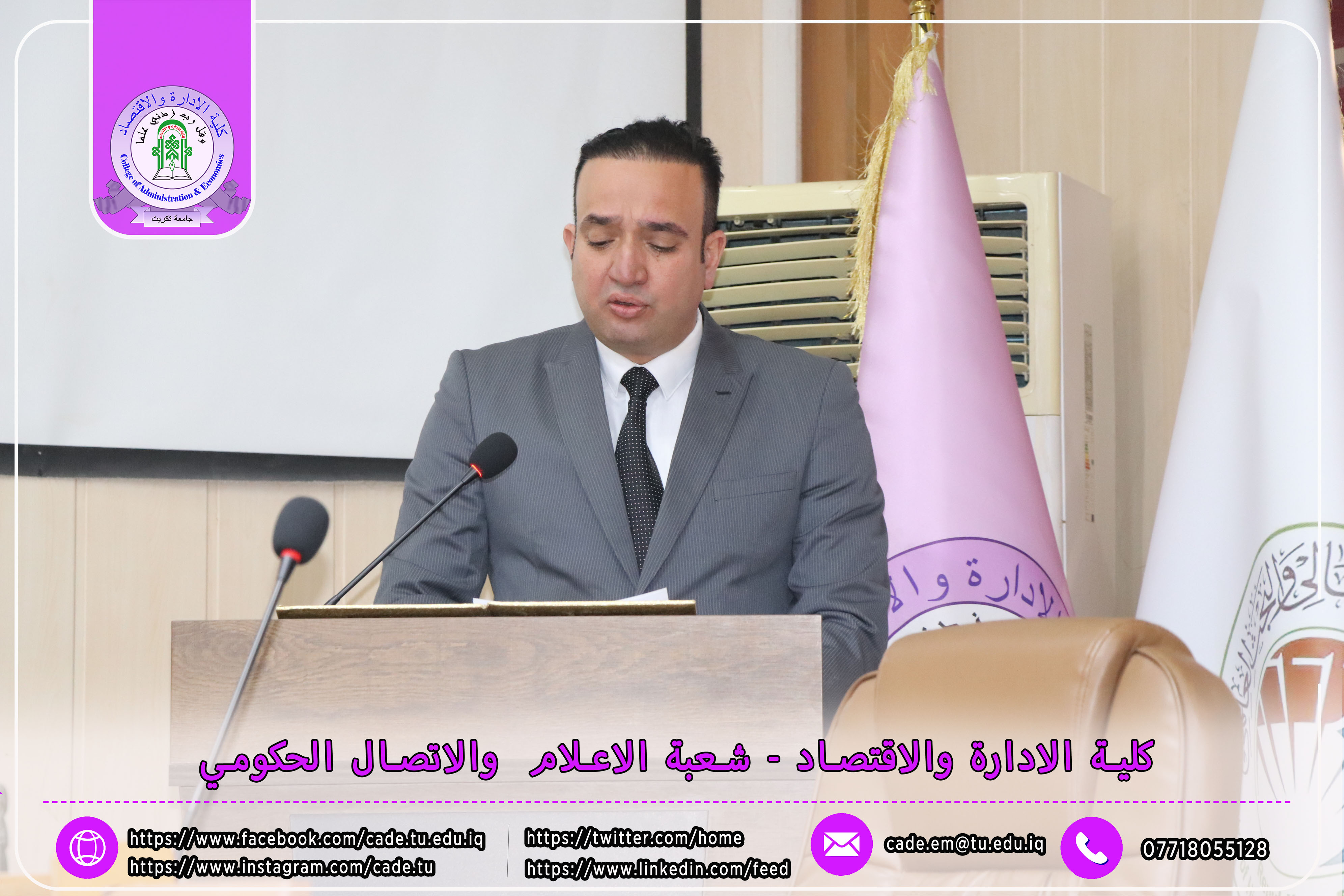 استُهل الحفل بتلاوة آياتٍ من الذكر الحكيم، تلاها عزف النشيد الوطني العراقي، الذي عزّز مشاعر الانتماء والفخر لدى الحاضرين. بعدها، ألقى الأستاذ المساعد الدكتور خطاب عمران صالح كلمة افتتاحية عبّر فيها عن فخر الكلية واعتزازها بإنجازات الطلبة، مؤكدًا أن هذا اليوم يمثل ثمرة الجهد والاجتهاد وسنوات من العمل والتفاني. كما أشار إلى الدور الحيوي الذي يلعبه خريجو الكلية في دعم سوق العمل والمساهمة في تطوير الاقتصاد والإدارة في العراق.