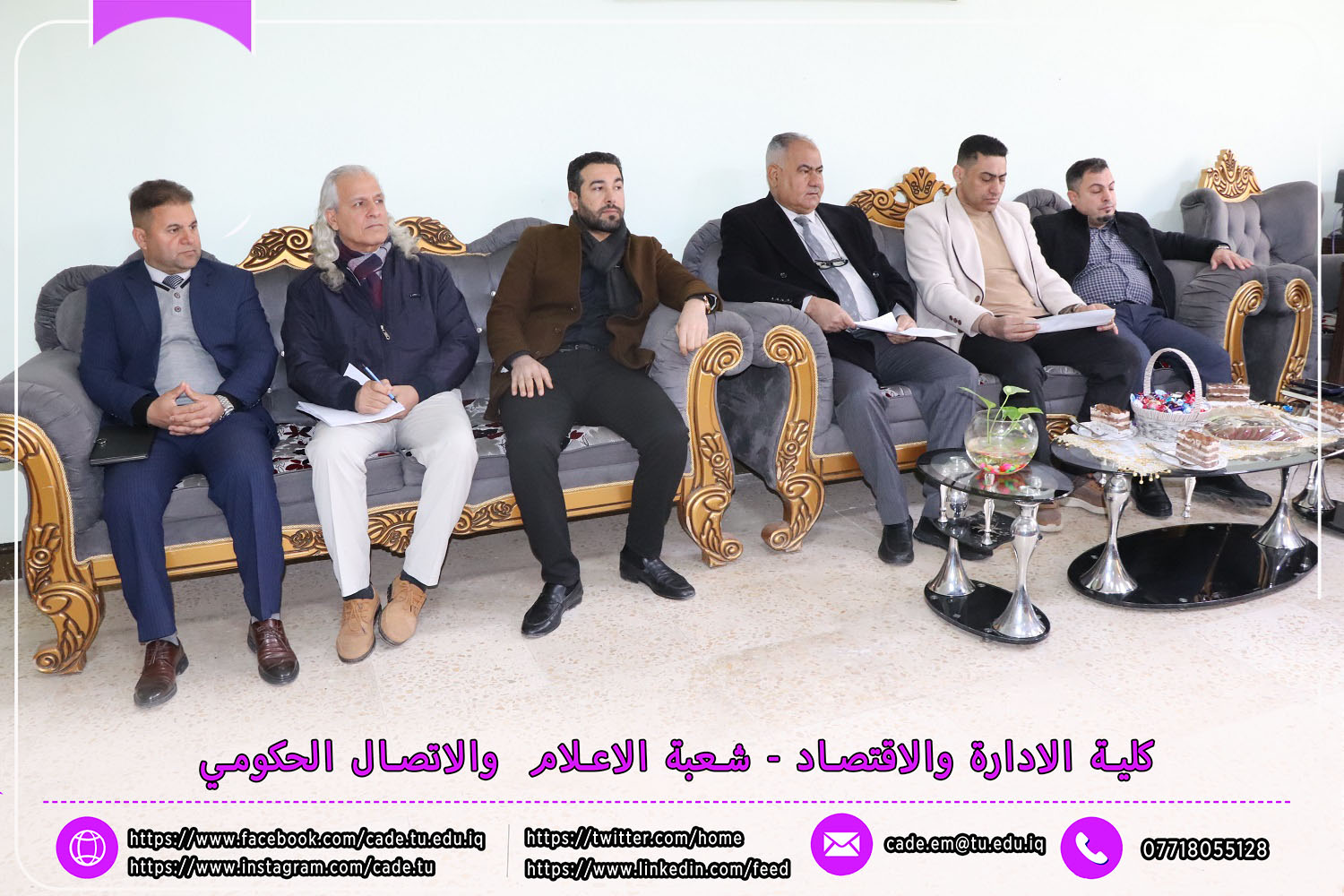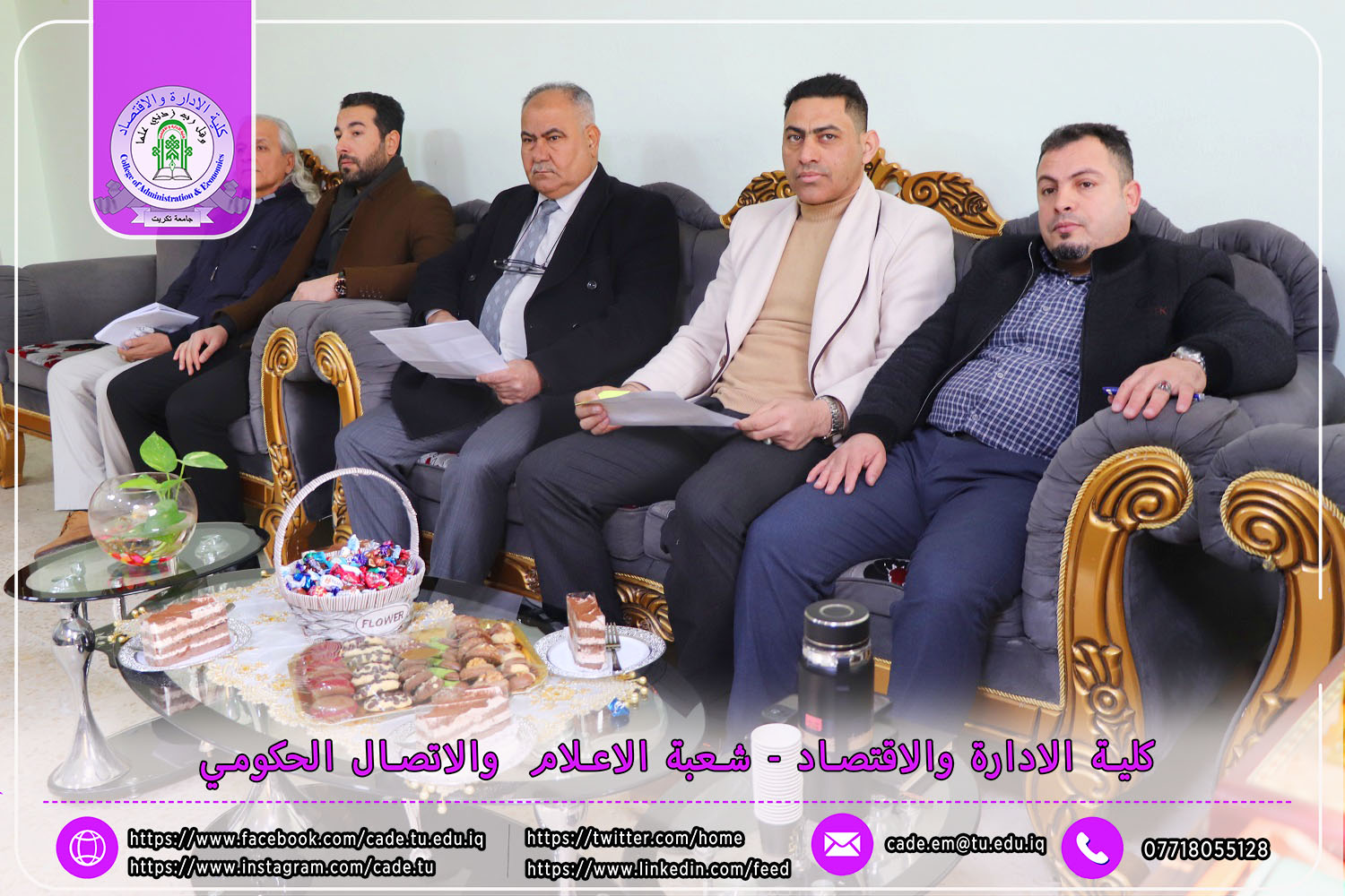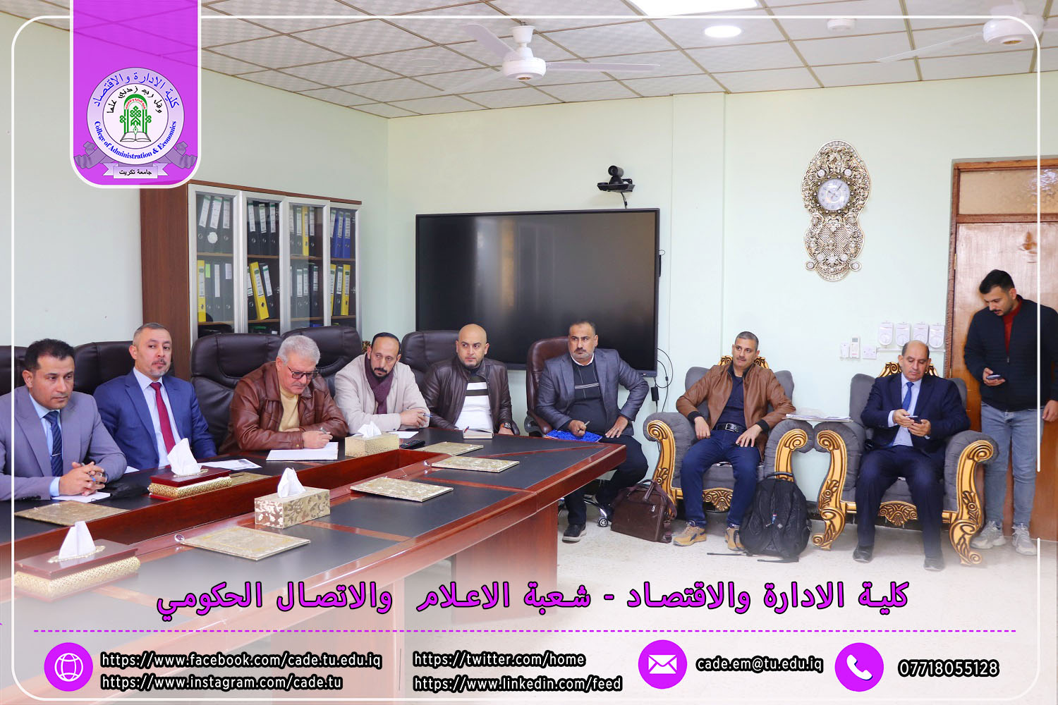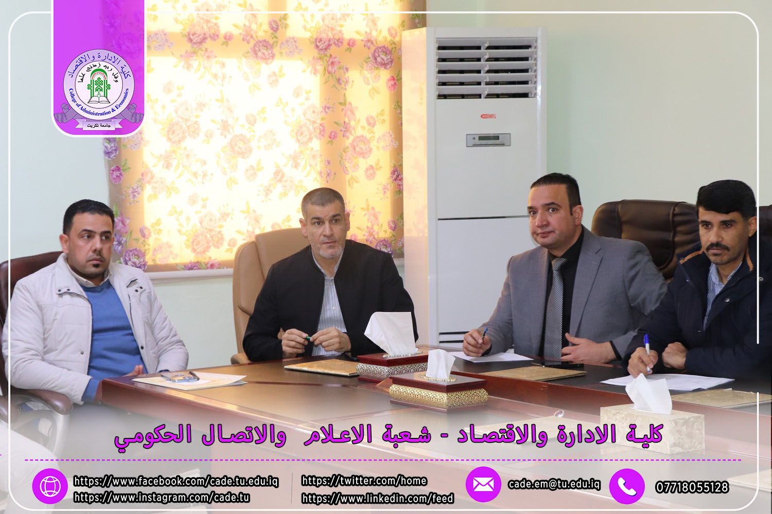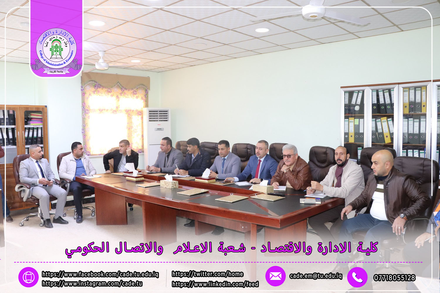 في إطار التحضيرات الجارية لانعقاد المؤتمر العلمي الدولي السادس الذي تنظمه كلية الإدارة والاقتصاد في جامعة تكريت، عقدت اللجنة المركزية للمؤتمر اجتماعها يوم الاحد الموافق 9 /2/ 2025 برئاسة الأستاذ الدكتور عبد الرزاق حمد حسين، عميد الكلية، وبحضور السادة معاوني العميد، ورؤساء وأعضاء اللجان المختصة.