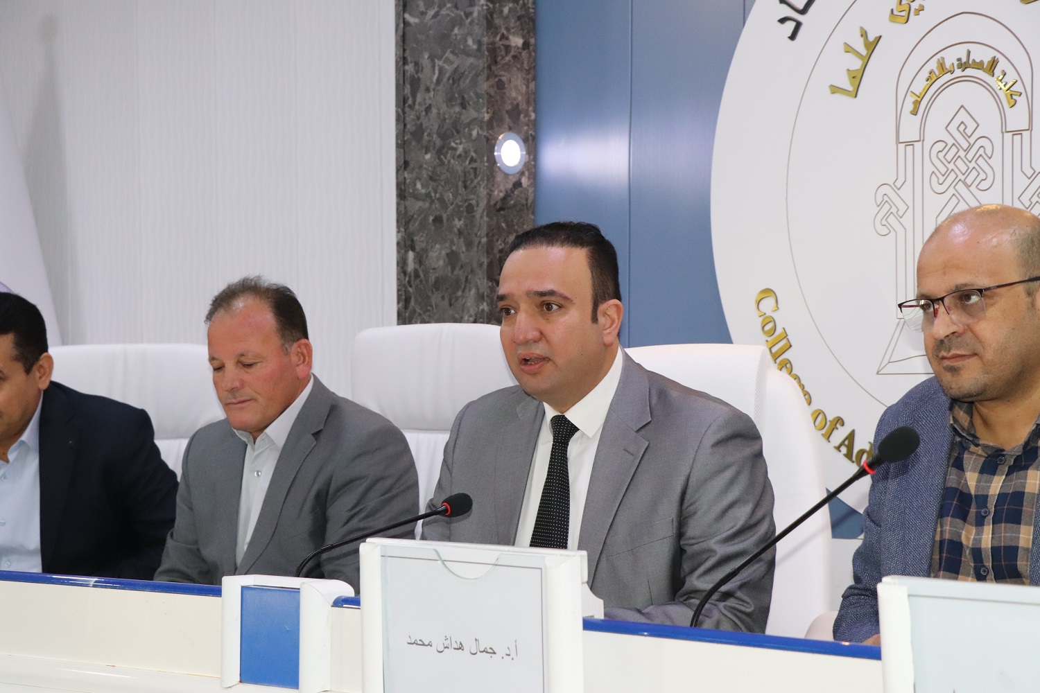 انعقد المؤتمر على رحاب كلية الإدارة والاقتصاد / قاعة الدكتور محمد بدع ، بحضور لجنة المناقشة التي ضمت نخبة من أساتذة الكلية، برئاسة الأستاذ الدكتور سطم صالح حسين، وعضوية كل من الأستاذ الدكتور مخيف جسم حمد، والأستاذ الدكتور جمال هداش محمد، والأستاذ المساعد الدكتور ثامر عكاب حواس، والأستاذ المساعد الدكتور مظهر خالد عبد الحميد.