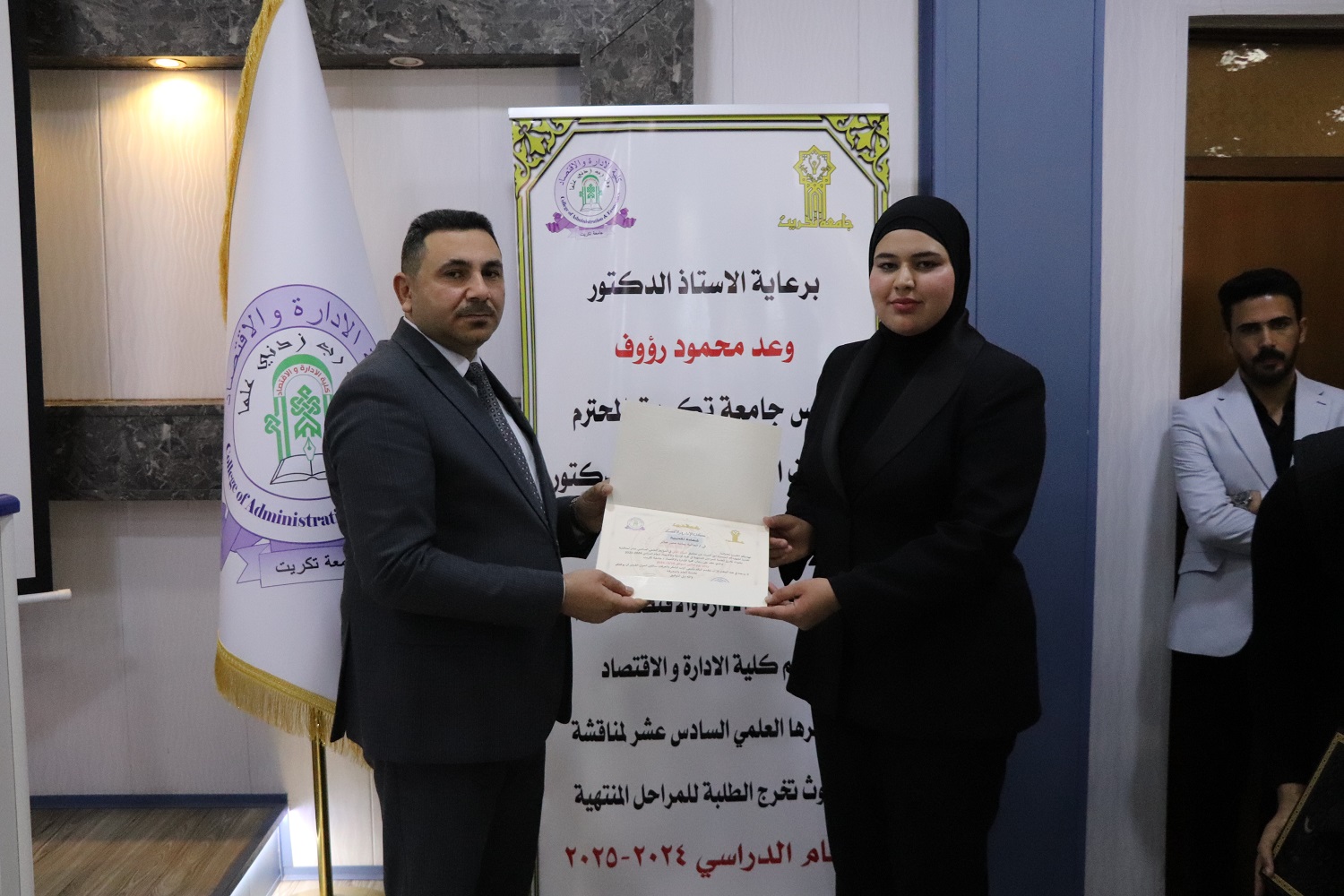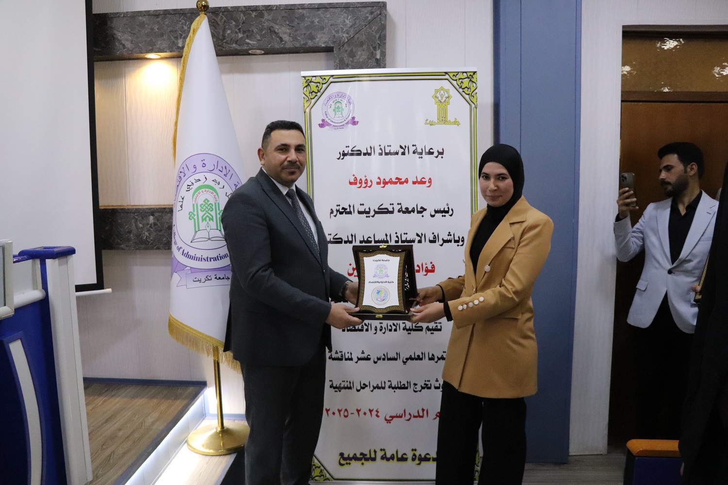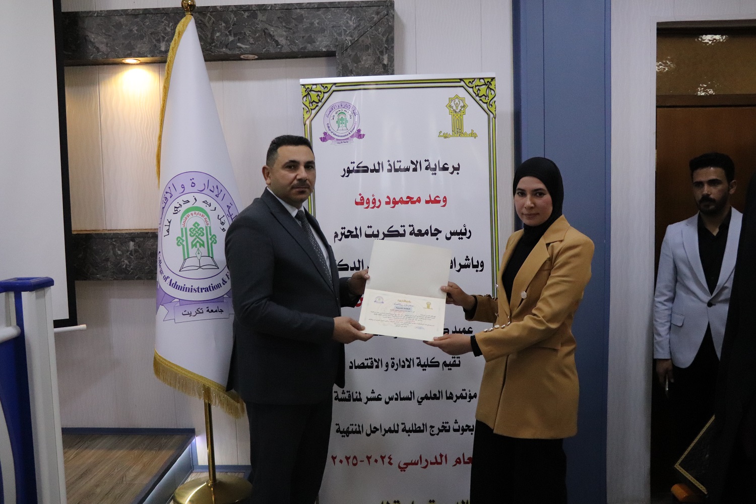 برعاية الأستاذ الدكتور وعد محمود رؤوف، رئيس جامعة تكريت، وبإشراف الأستاذ المساعد الدكتور فؤاد فرحان حسين، عميد كلية الإدارة والاقتصاد، أقامت الكلية مؤتمرها العلمي السادس عشر لمناقشة بحوث تخرج الطلبة للمراحل المنتهية للعام الدراسي 2024-2025