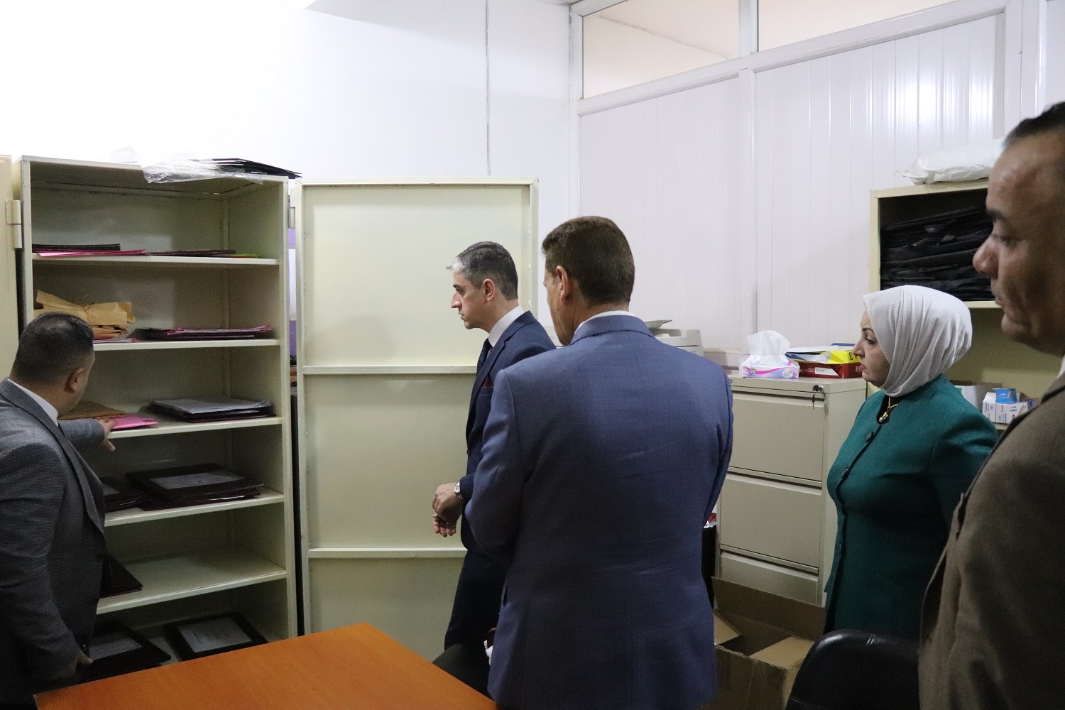 وفي ختام الجولة، استقبل السيد رئيس جامعة تكريت، الأستاذ الدكتور وعد محمود رؤوف، أعضاء اللجنة الوزارية في مكتبه، حيث أعرب عن شكره وتقديره لجهودهم المبذولة وتعاونهم المستمر في دعم العملية التعليمية، مقدماً لهم كتاب شكر وتقدير على تحملهم عناء السفر وإسهامهم في تطوير البرامج الأكاديمية.