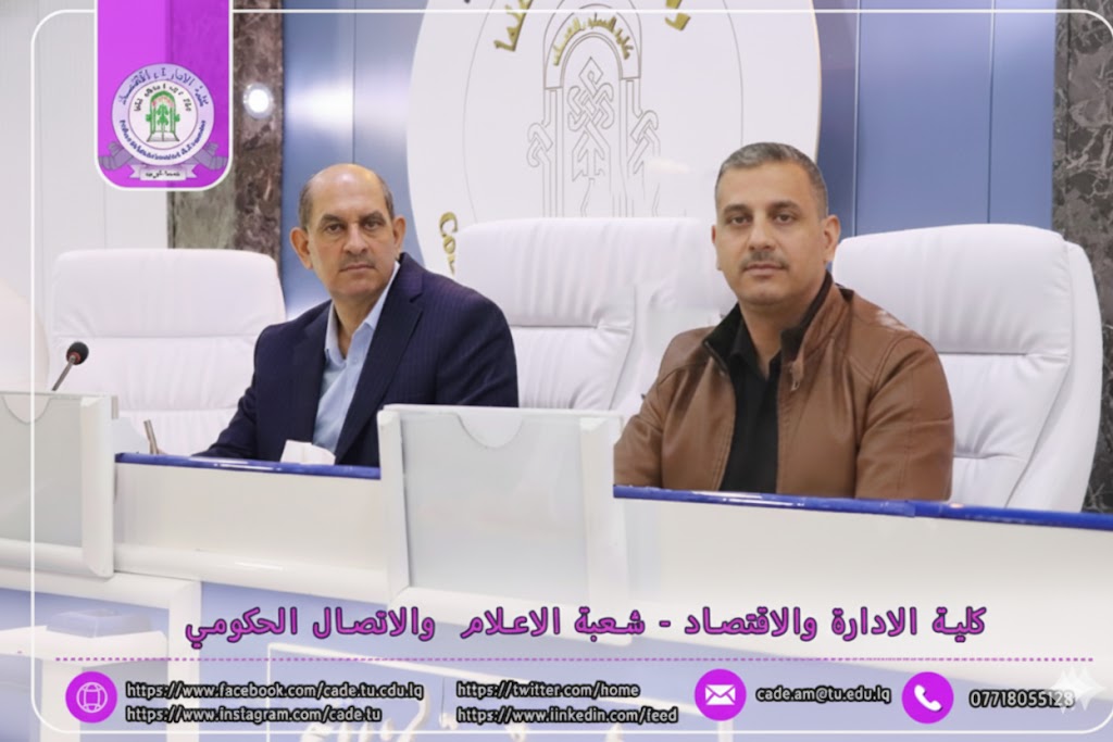 برعاية الأستاذ الدكتور وعد محمود رؤوف، رئيس جامعة تكريت، وبإشراف الأستاذ المساعد الدكتور فؤاد فرحان حسين، عميد كلية الإدارة والاقتصاد، نظمت وحدة التأهيل والتوظيف والمتابعة في الكلية دورة علمية حضورية بعنوان "التدقيق الداخلي لمختبرات الحاسوب وضمان جودة الأنظمة التقنية"، وذلك يوم الخميس الموافق 20 / 3 / 2025، على قاعة الدكتور محمد بدع.