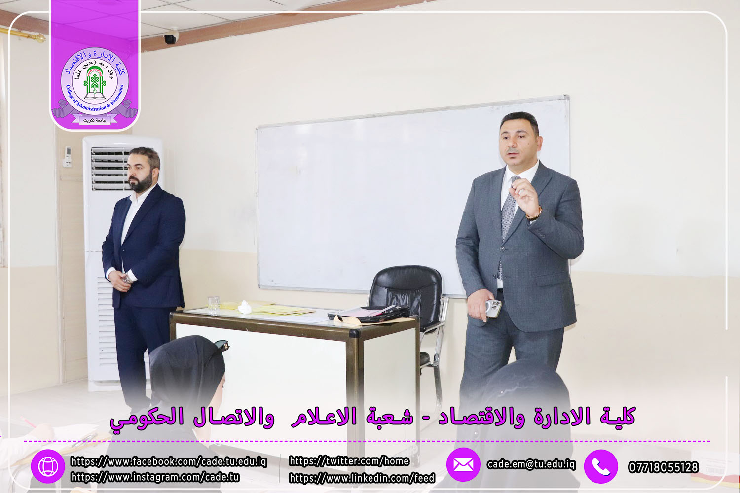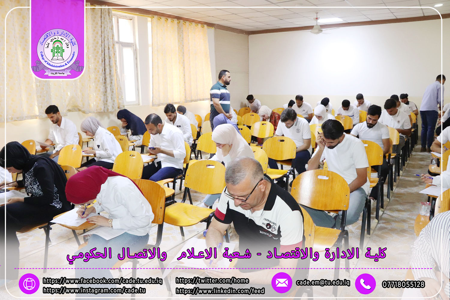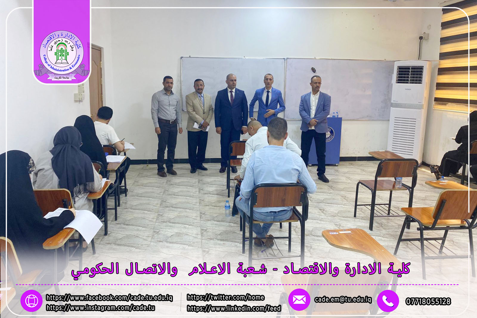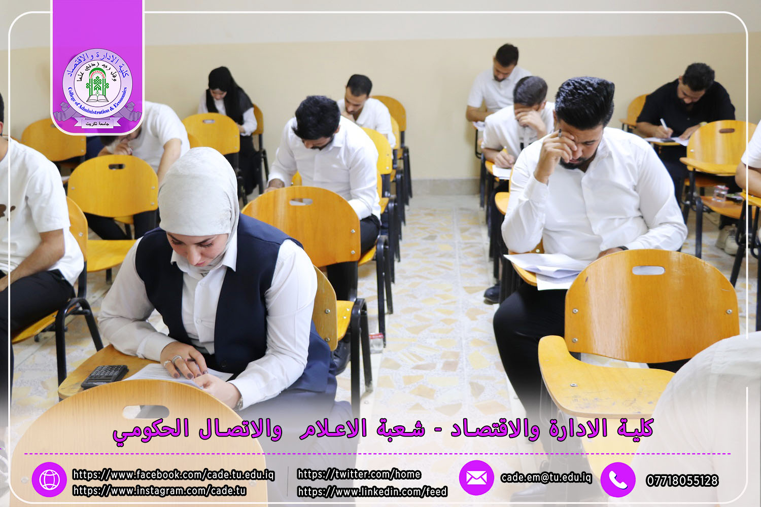 شهدت كلية الإدارة والاقتصاد في جامعة تكريت، يوم السبت الموافق 10 /5/ 2025، انطلاق الامتحان التقويمي (الوزاري) لطلبة المرحلتين الثالثة والرابعة في الدراستين الصباحية والمسائية لقسمي إدارة الأعمال والمحاسبة، للفصل الدراسي الثاني / الدور الاول للعام الدراسي 2024-2025، وذلك تنفيذًا لتوجيهات وزارة التعليم العالي والبحث العلمي بشأن تطبيق الامتحانات التقويمية المركزية.