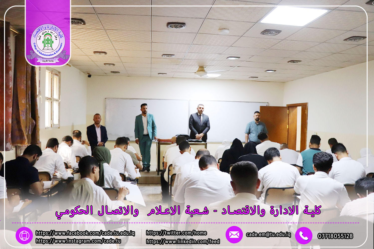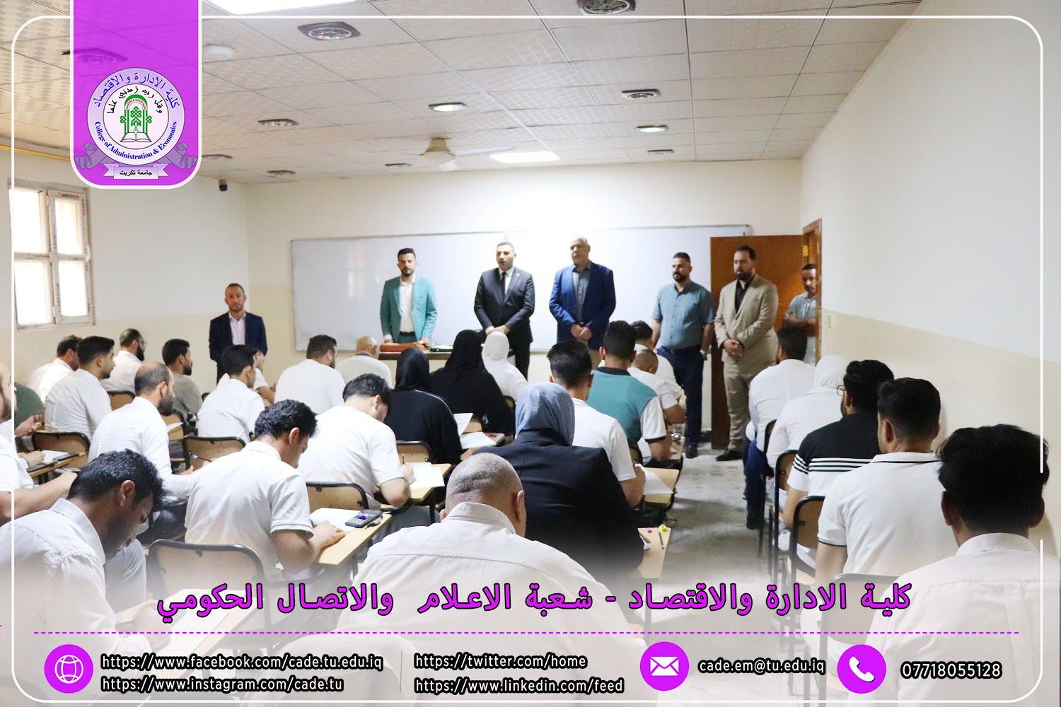 استنادًا إلى التقويم الجامعي للعام الدراسي 2025/2024 الصادر عن وزارة التعليم العالي والبحث العلمي / دائرة الدراسات والتخطيط والمتابعة / قسم الدراسات والتخطيط، تعلن كلية الإدارة والاقتصاد – جامعة تكريت عن بدء الامتحانات النهائية للفصل الدراسي الثاني / الدور الأول للعام الدراسي 2025/2024.