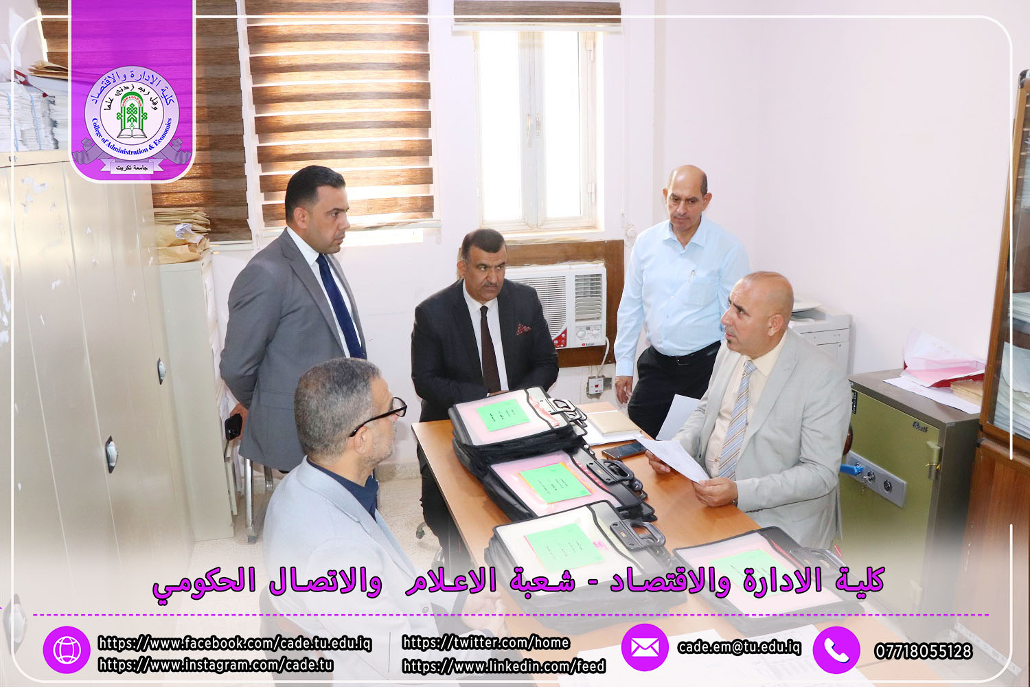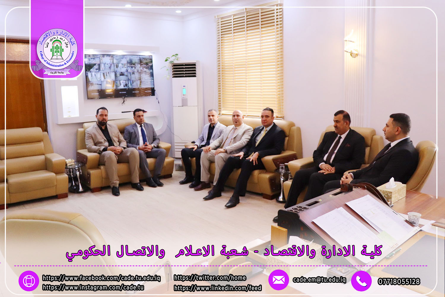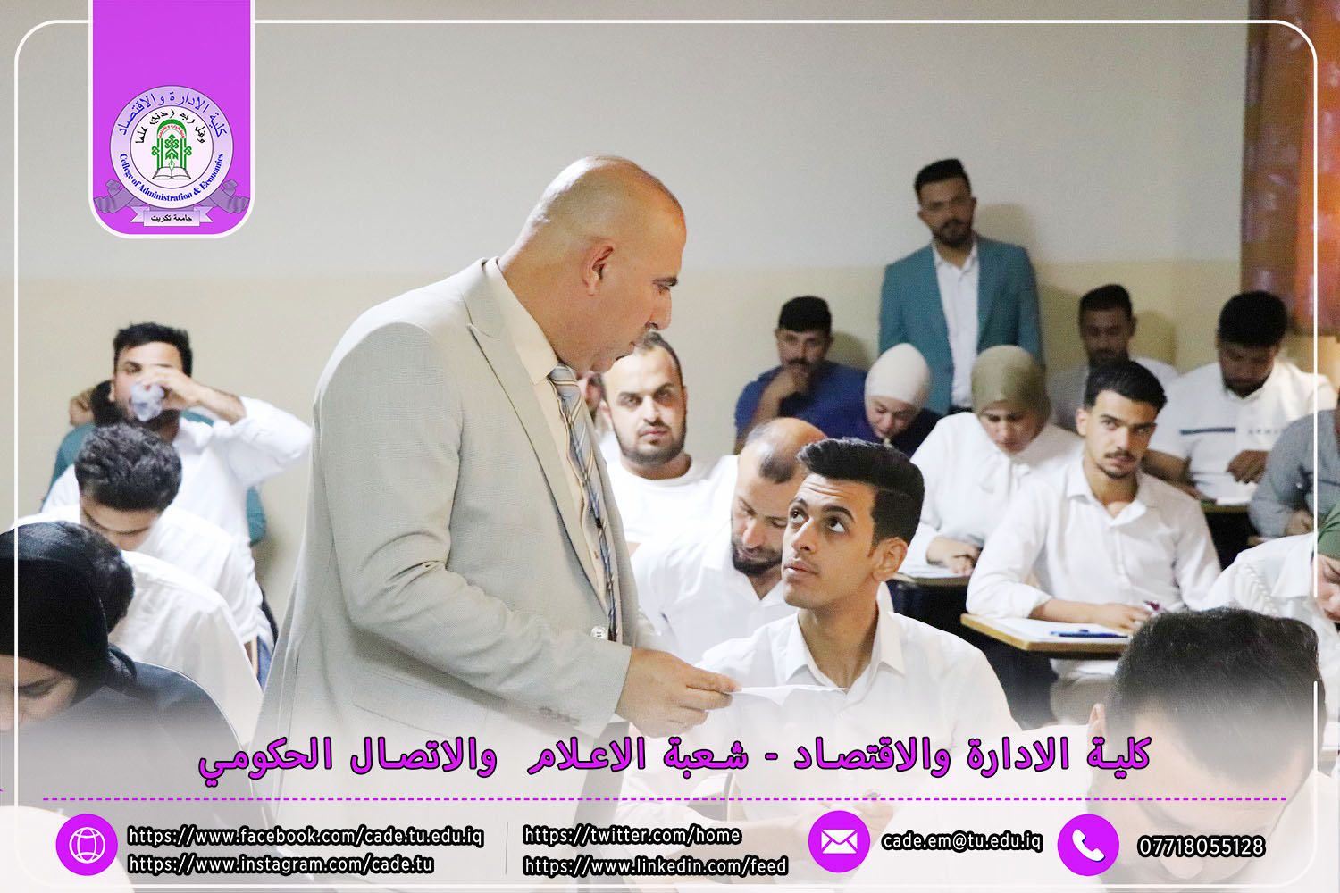 في إطار الجهود الرامية إلى تعزيز جودة العملية التعليمية والوقوف ميدانيًا على سير الامتحانات النهائية، استقبل السيد ا.م.د. فؤاد فرحان حسين عميد كلية الإدارة والاقتصاد في يوم الأحد الموافق 4 أيار 2025 لجنة متابعة سير الامتحانات النهائية للفصل الدراسي الثاني من العام الدراسي 2024–2025، لطلبة الدراسات الأولية.