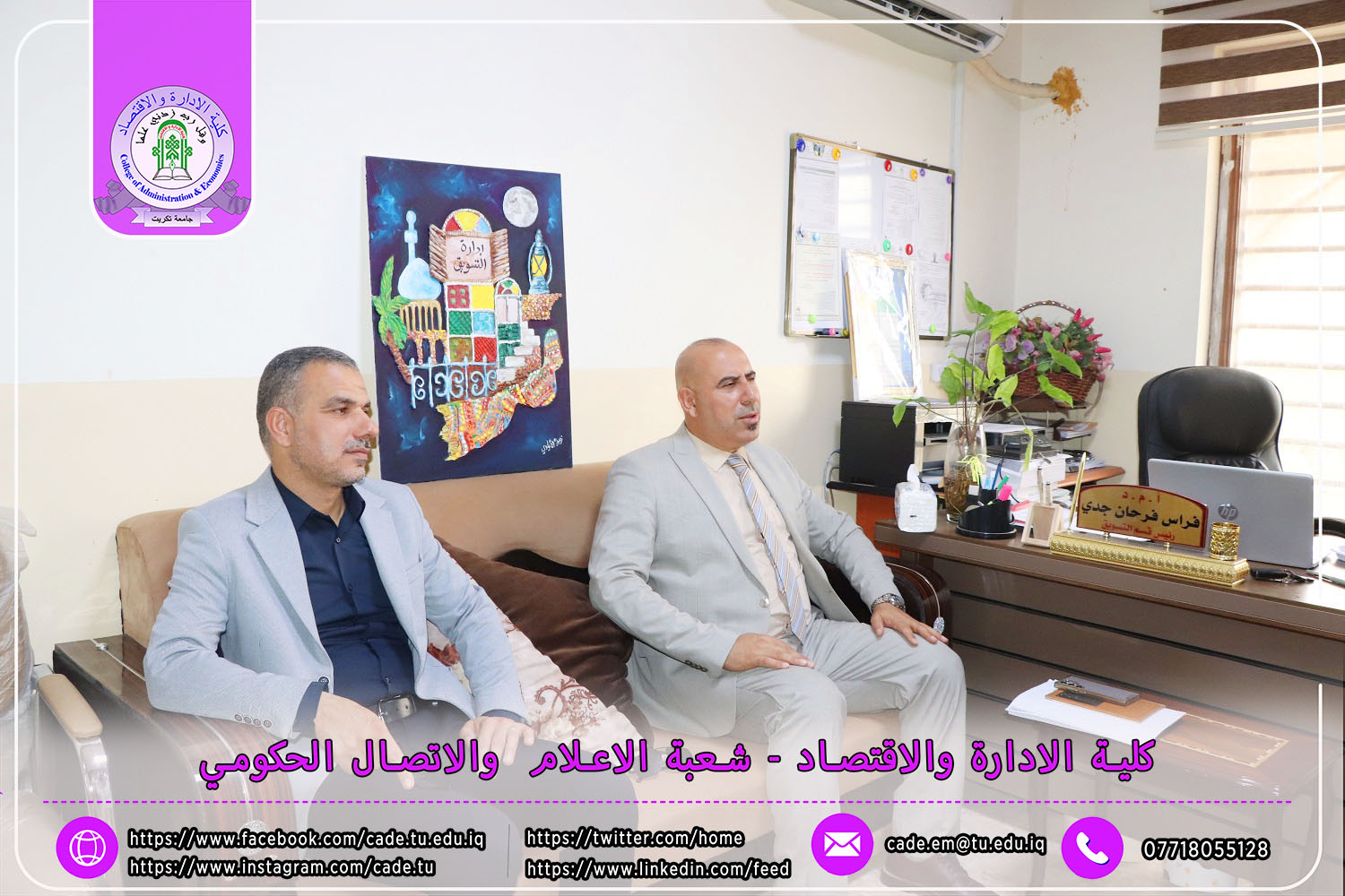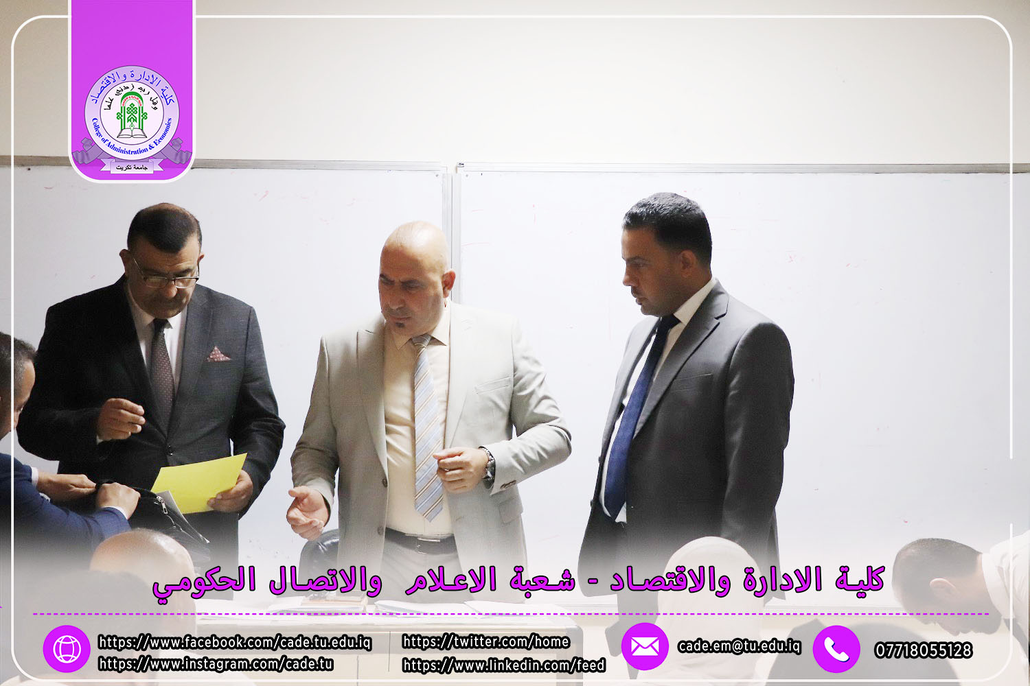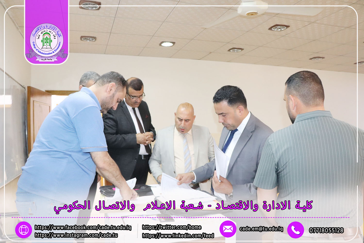 في إطار الجهود الرامية إلى تعزيز جودة العملية التعليمية والوقوف ميدانيًا على سير الامتحانات النهائية، استقبل السيد ا.م.د. فؤاد فرحان حسين عميد كلية الإدارة والاقتصاد في يوم الأحد الموافق 4 أيار 2025 لجنة متابعة سير الامتحانات النهائية للفصل الدراسي الثاني من العام الدراسي 2024–2025، لطلبة الدراسات الأولية.