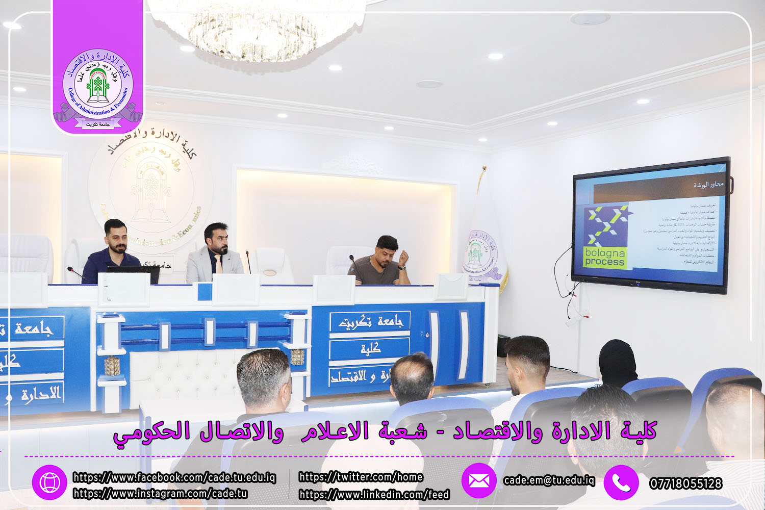 نظّم قسم شؤون الطلبة والتسجيل في رئاسة جامعة تكريت، بالتعاون مع كلية الإدارة والاقتصاد، ورشة عمل علمية تخصصية بعنوان "آلية تطبيق نظام مسار بولونيا"، وذلك يوم الثلاثاء الموافق 15 /7/ 2025، بمشاركة فاعلة من الكليات الجديدة المشمولة بتطبيق النظام في العام الدراسي 2025–2026، وهي كلية القانون وكلية التمريض.
