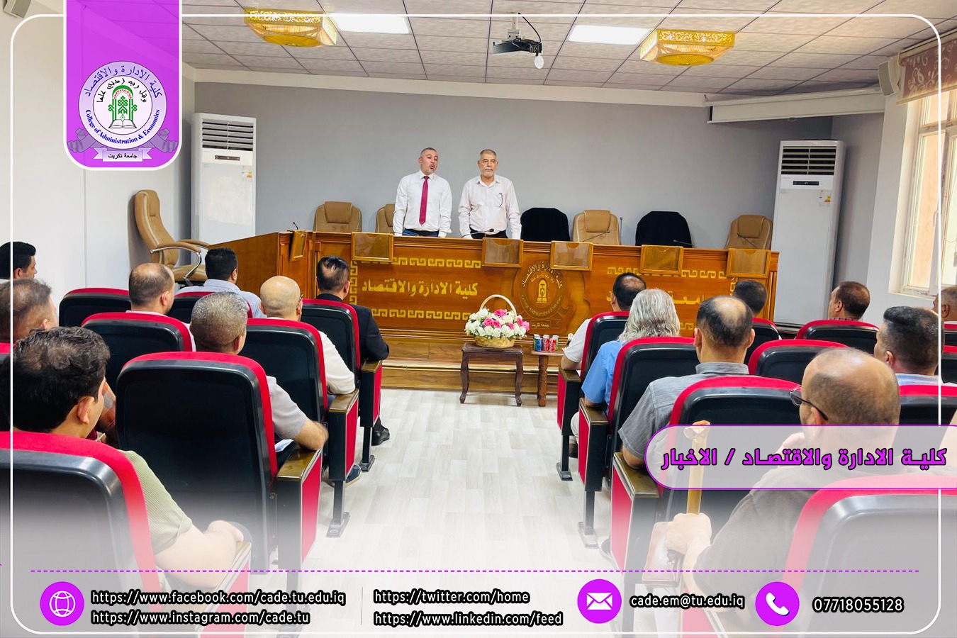 في أجواء امتزجت بالمحبة والامتنان، أقامت كلية الإدارة والاقتصاد - جامعة تكريت يوم الخميس الموافق 3/7/2025 حفلاً تكريمياً للأستاذ الدكتور قاسم أحمد حنظل، التدريسي في قسم إدارة الأعمال، بمناسبة إحالته إلى التقاعد، بعد مسيرة علمية حافلة بالعطاء والتميز.