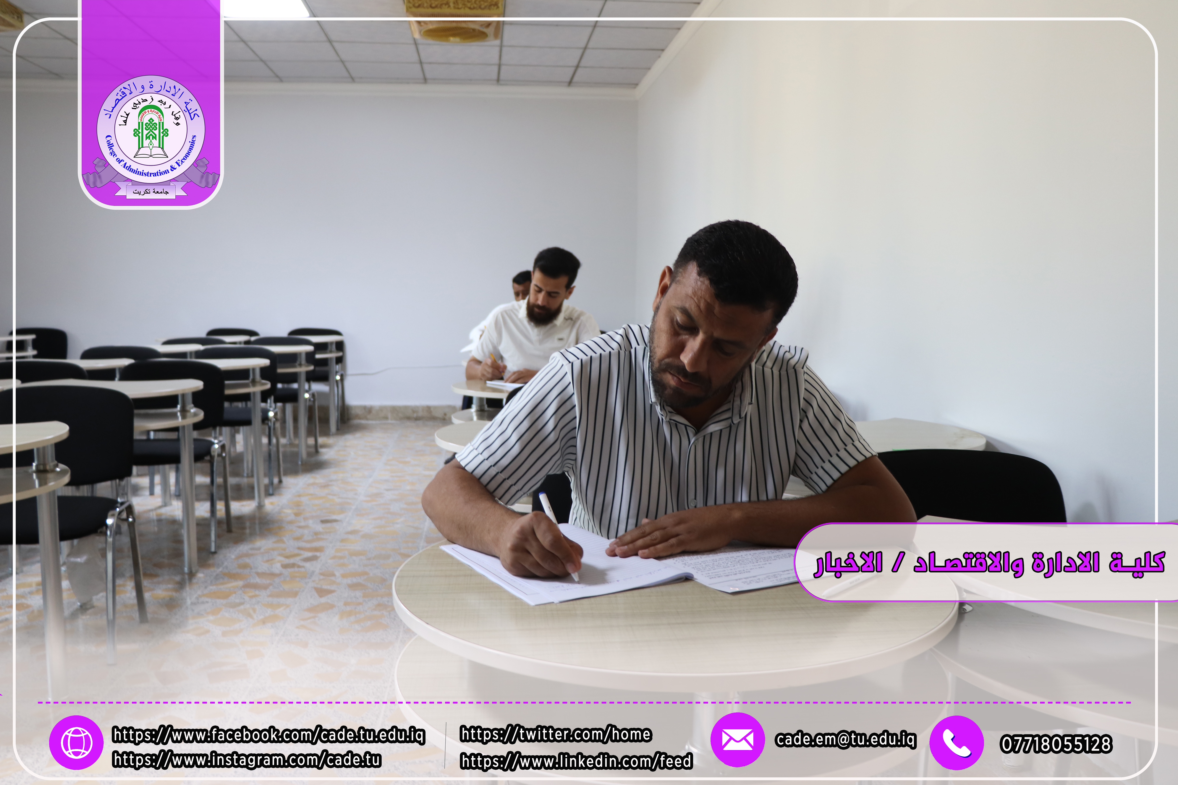 جرى في كلية الإدارة والاقتصاد في جامعة تكريت، صباح يوم الاثنين الموافق 15 /9/ 2025، الامتحان الشامل لطلبة الدكتوراه في قسم الاقتصاد، للعام الدراسي 2024-2025، وذلك على قاعة الدراسات العليا