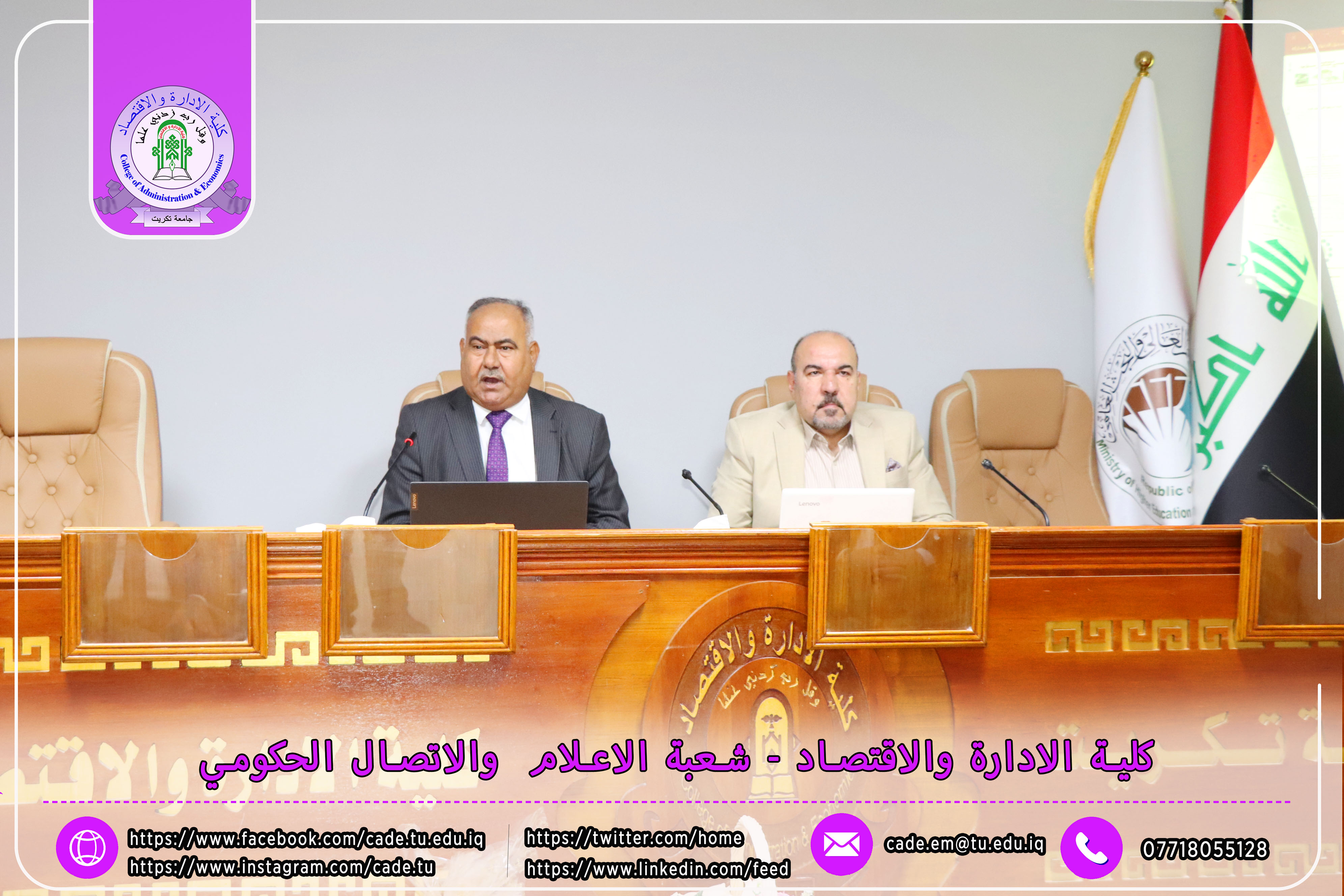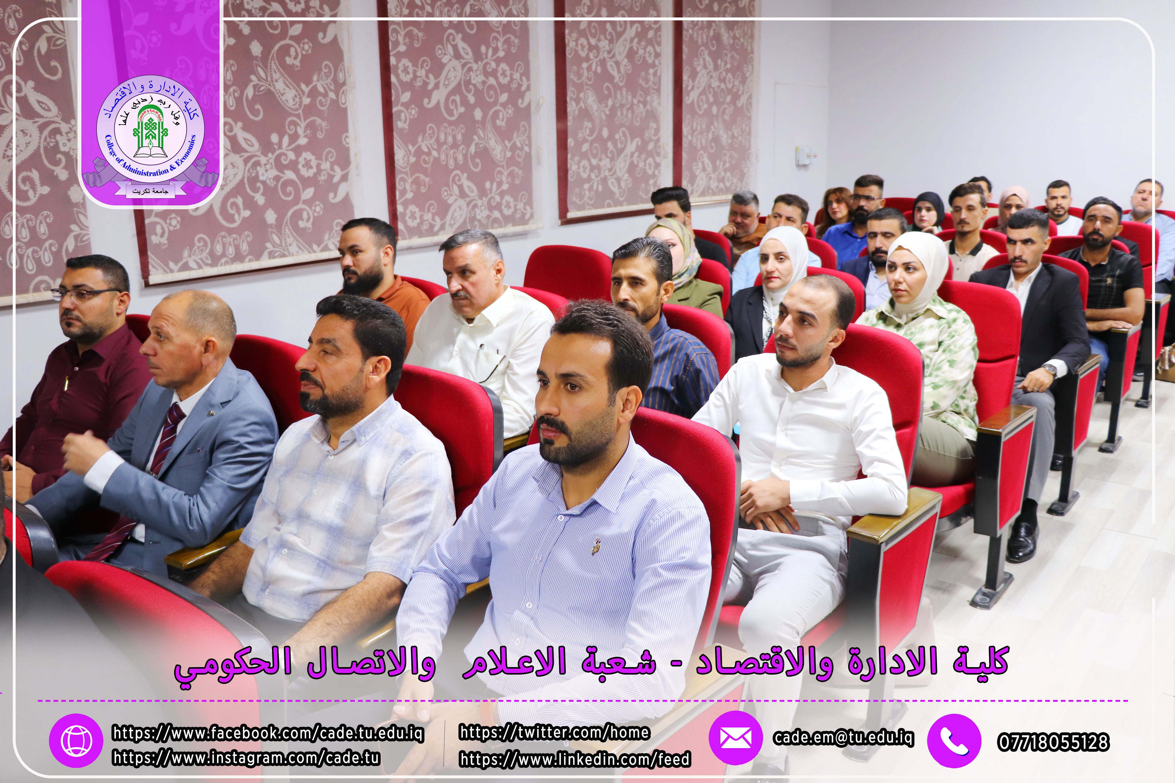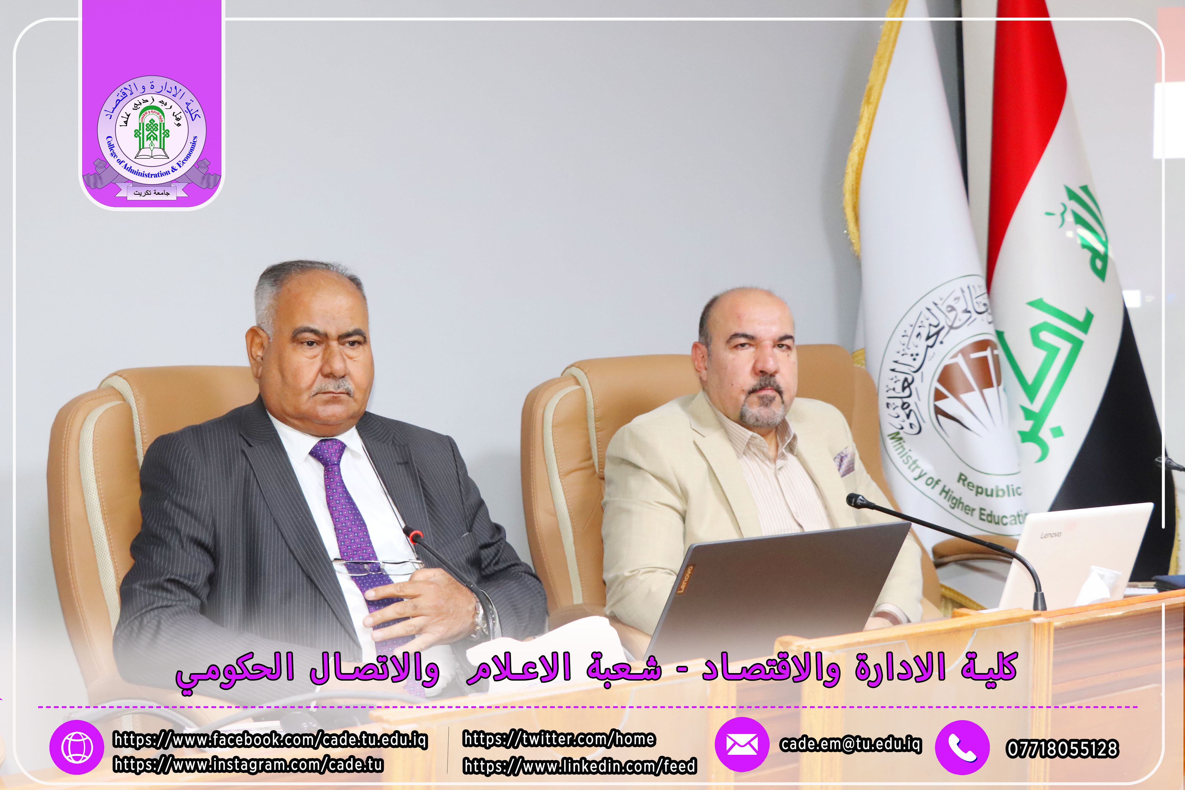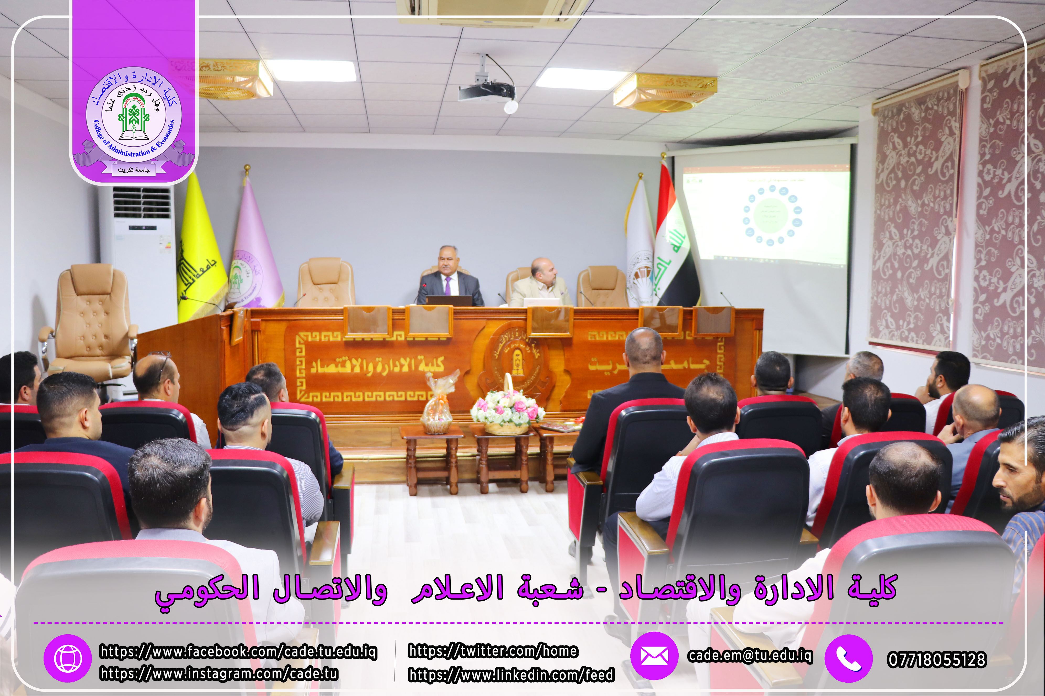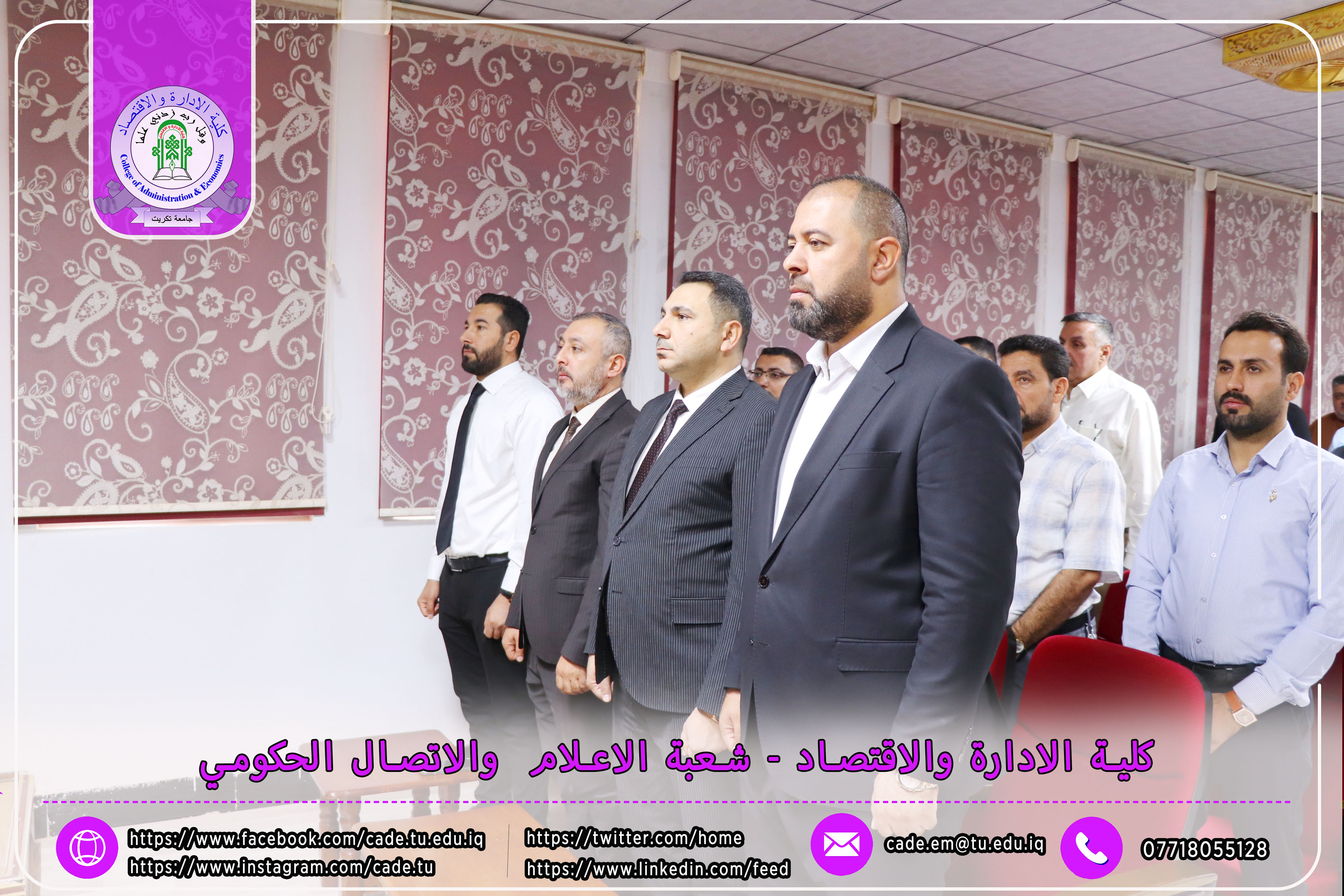 استنادا الى توجيهات وزارة التعليم العالي والبحث العلمي/ دائرة الدراسات والتخطيط والمتابعة/ قسم الاستراتيجيات والسياسات العامة. وانطلاقًا من دورها الريادي في دعم السياسات الوطنية وترسيخ قيم المسؤولية المجتمعية، نظّمت كلية الإدارة والاقتصاد في جامعة تكريت ندوة تعريفية موسعة بعنوان "متابعة وتفعيل استراتيجية الأمن الوطني العراقي (العراق أولاً) 2025–2030"، وذلك يوم الأربعاء الموافق 24 /9/ 2025 على قاعة قسم ادارة الاعمال. وجاءت هذه الندوة برعاية السيد رئيس جامعة تكريت الأستاذ الدكتور وعد محمود رؤوف، وبإشراف عميد الكلية الأستاذ المساعد الدكتور فؤاد فرحان حسين.
