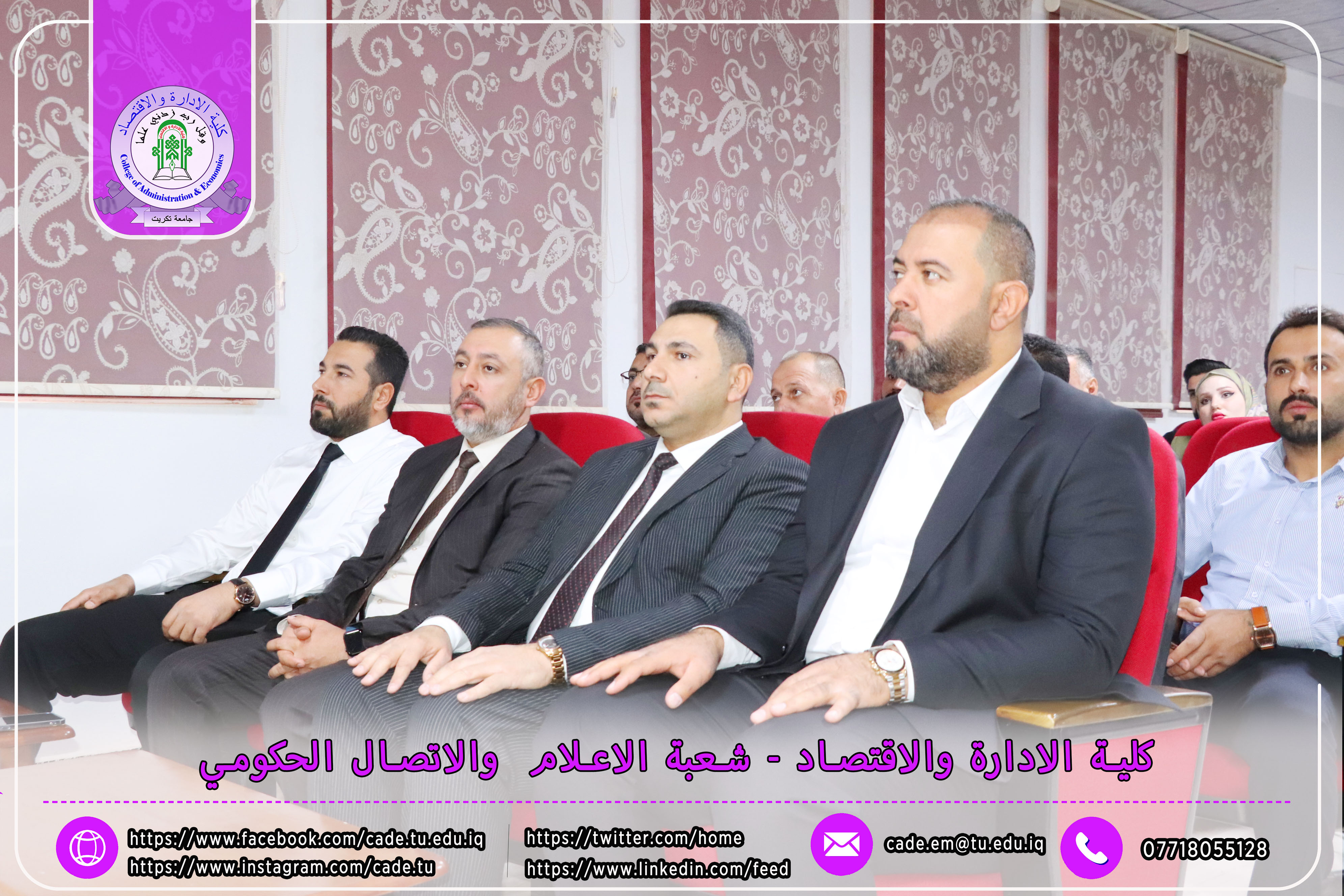 هذا وقد شهدت الندوة حضورًا مميزًا تقدمه ا.م.د. فؤاد فرحان حسين عميد الكلية وم.د. أحمد عايد مخلف معاون العميد للشؤون الإدارية والمالية وأ.د. عامر علي حمد رئيس قسم إدارة الأعمال وأ.م.د. مثنى روكان جاسم رئيس قسم المحاسبة ا.د. إبراهيم علي كردي رئيس قسم العلوم المالية والمصرفية إلى جانب نخبة من التدريسيين والموظفين وطلبة الدراسات الأولية.