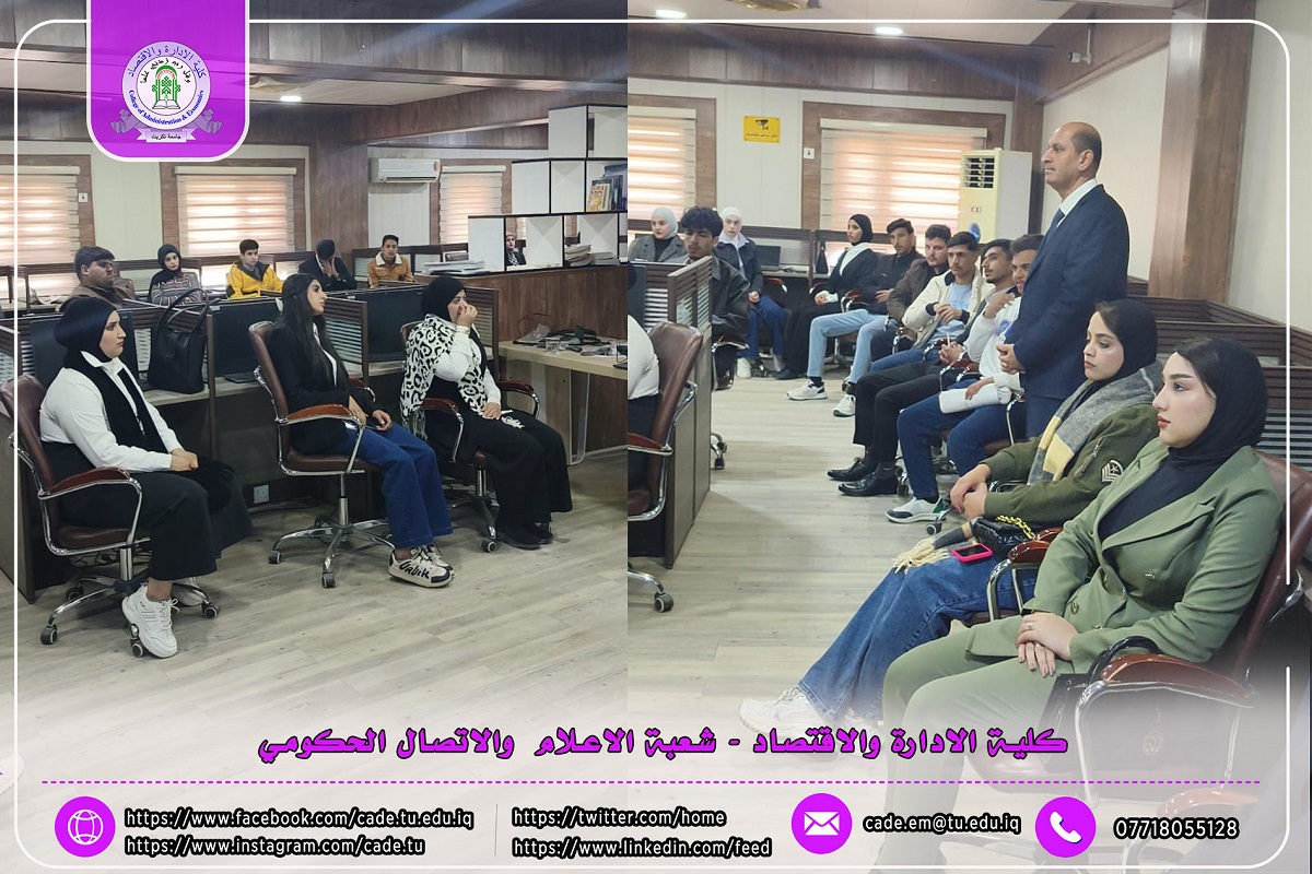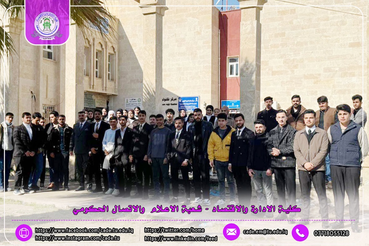 وجاءت هذه الزيارة برعاية عميد كلية الإدارة والاقتصاد الأستاذ المساعد الدكتور فؤاد فرحان حسين، وبإشراف مباشر من رئيس قسم الاقتصاد الرقمي الأستاذ الدكتور سامر محمد فخري، في إطار حرص عمادة الكلية ورئاسة القسم على دعم الطلبة علمياً وتعريفهم بأحدث الممارسات والتقنيات المعتمدة في مجال الإدارة والاقتصاد الرقمي.