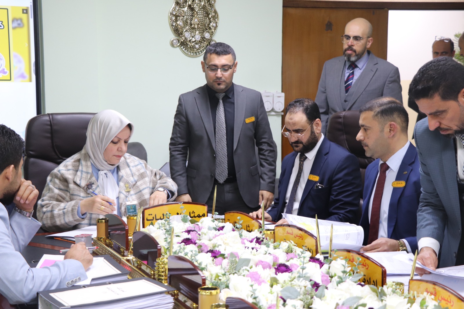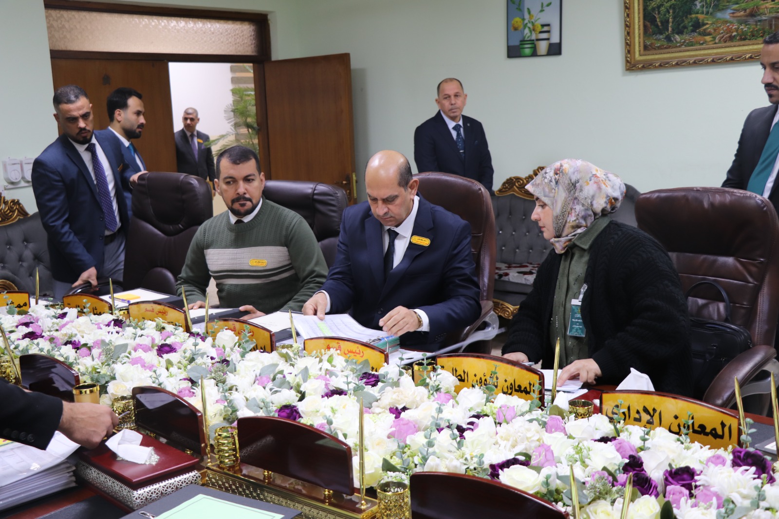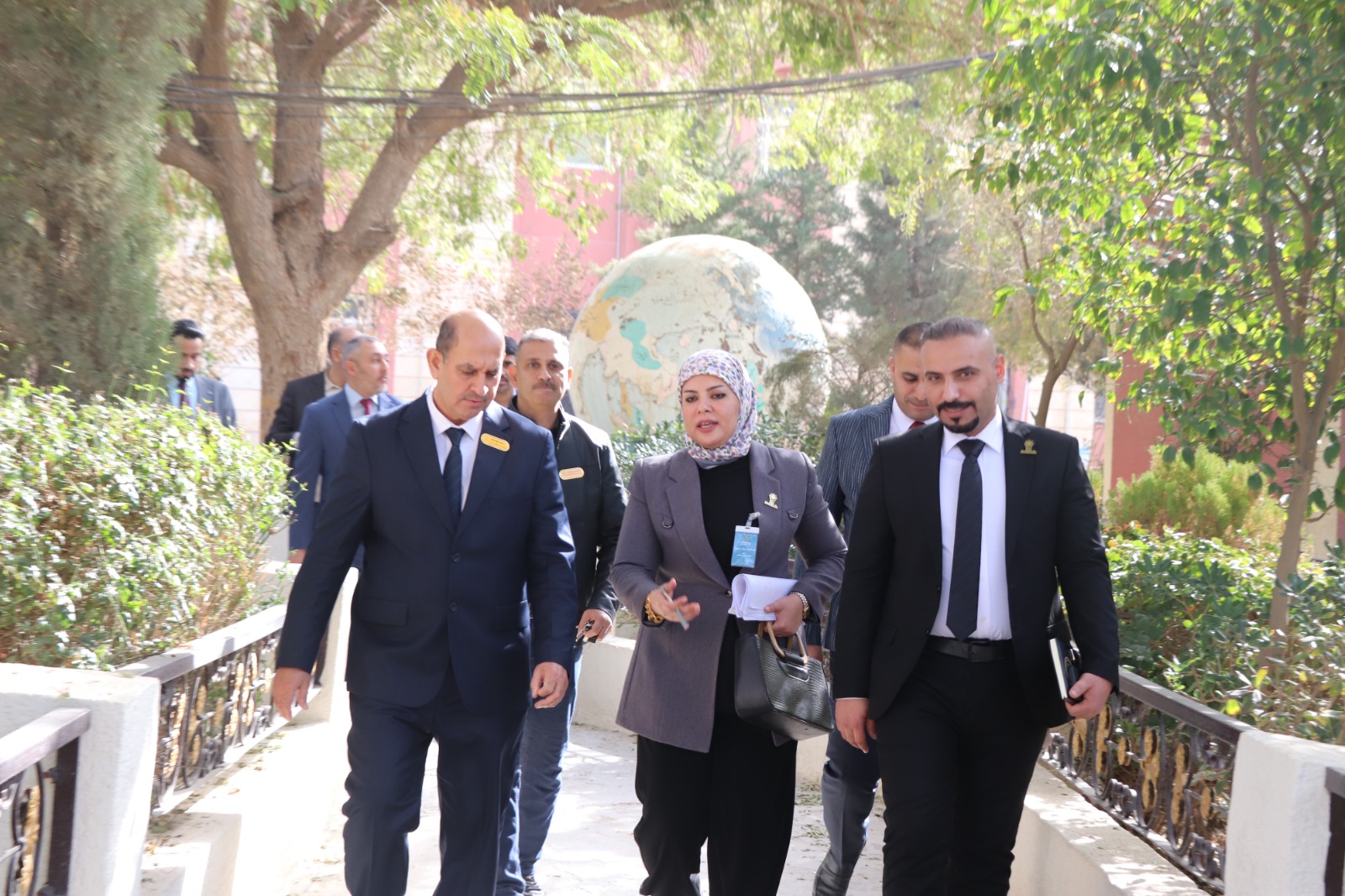 وكان في استقبال الفريق الوزاري الأستاذ المساعد الدكتور فؤاد فرحان حسين عميد كلية الإدارة والاقتصاد، ومعاونوه، إضافة إلى اللجان المختصة المكلفة بمتابعة متطلبات ومعايير الاعتماد لكل محور.