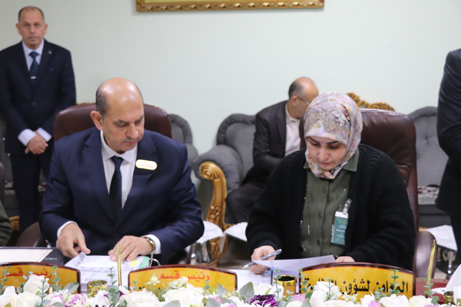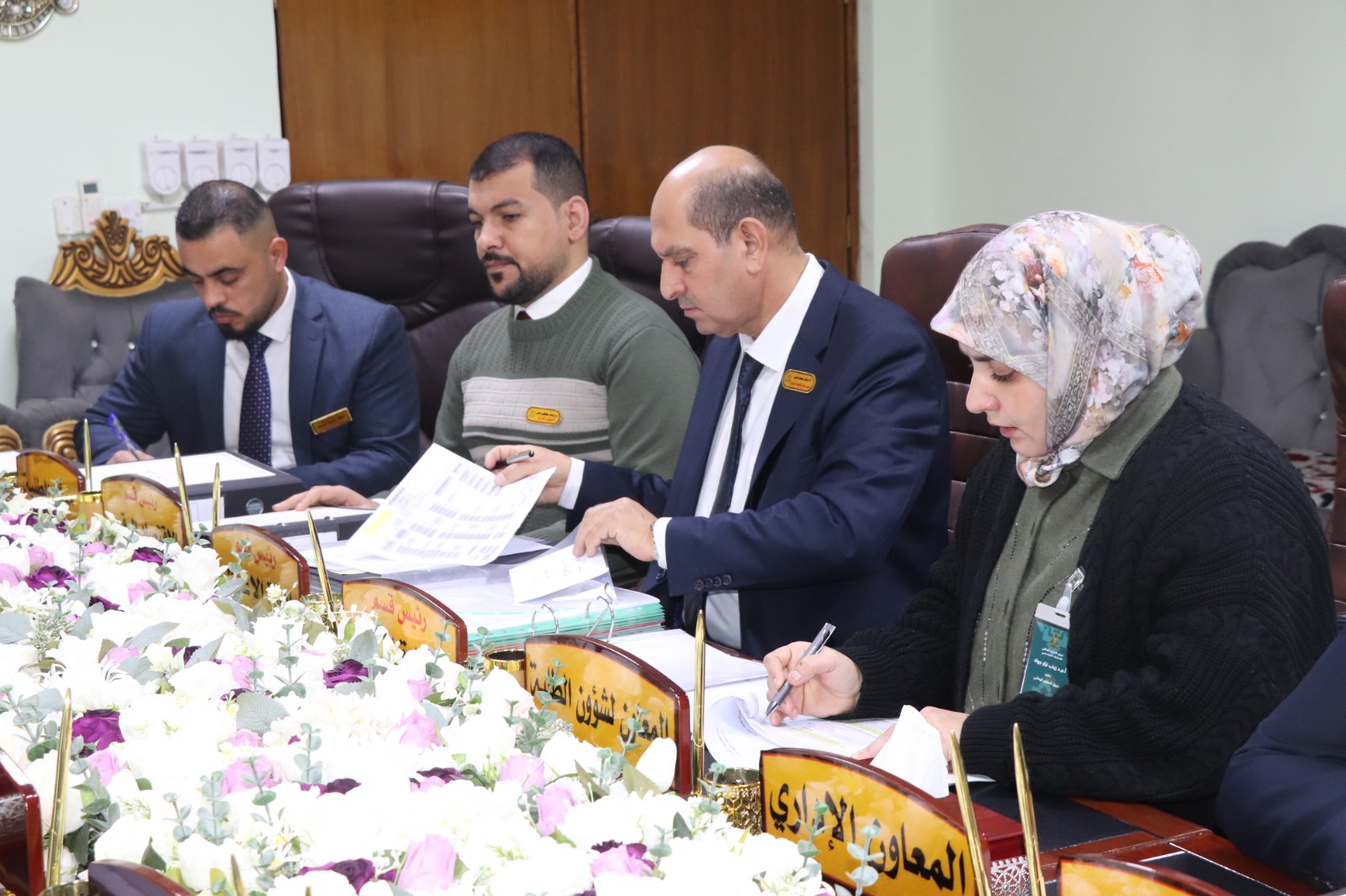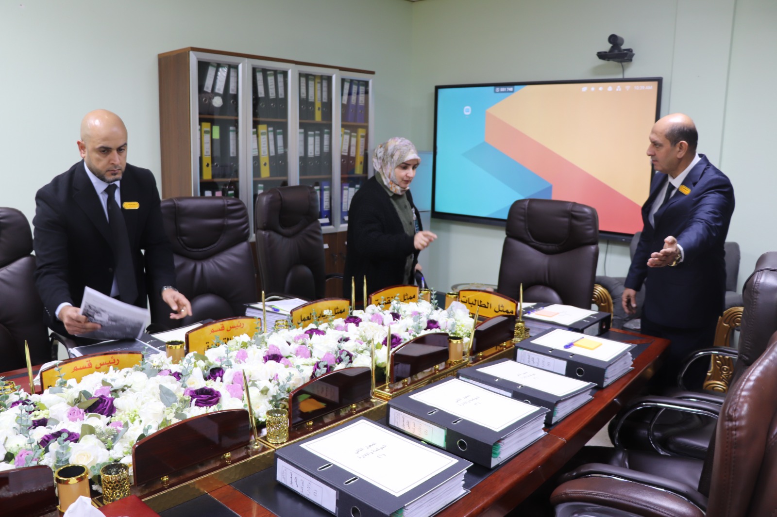 وكان في استقبال الفريق الوزاري الأستاذ المساعد الدكتور فؤاد فرحان حسين عميد كلية الإدارة والاقتصاد، ومعاونوه، إضافة إلى اللجان المختصة المكلفة بمتابعة متطلبات ومعايير الاعتماد لكل محور.