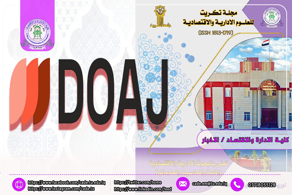 في إنجاز جديد يُضاف إلى الرصيد الأكاديمي لكلية الإدارة والاقتصاد في جامعة تكريت، تم فهرسة مجلة تكريت للعلوم الإدارية والاقتصادية في شبكة قاعدة بيانات الوصول المفتوح للمجلات العلمية والأكاديمية (DOAJ).