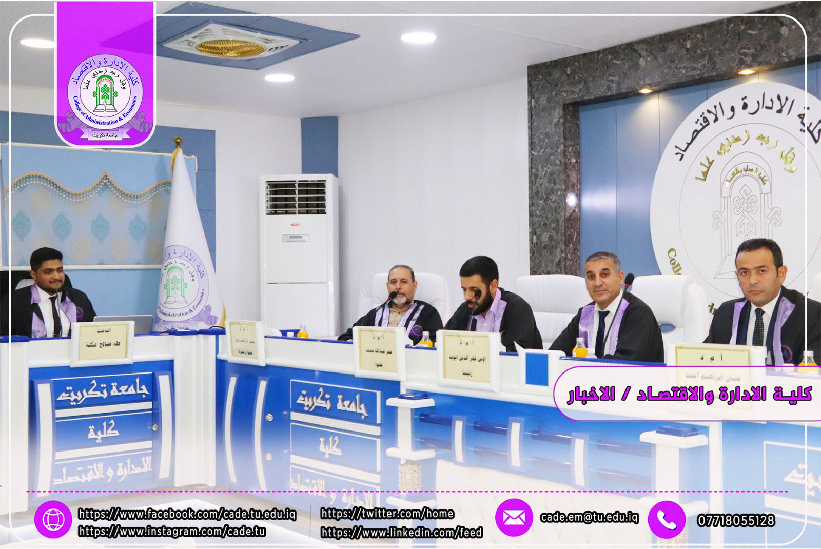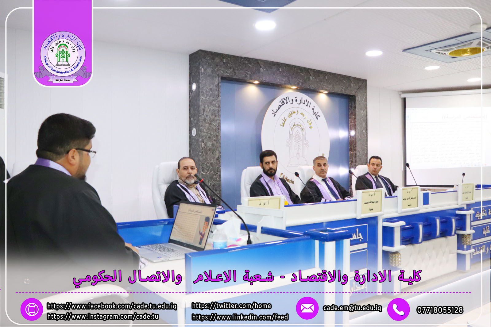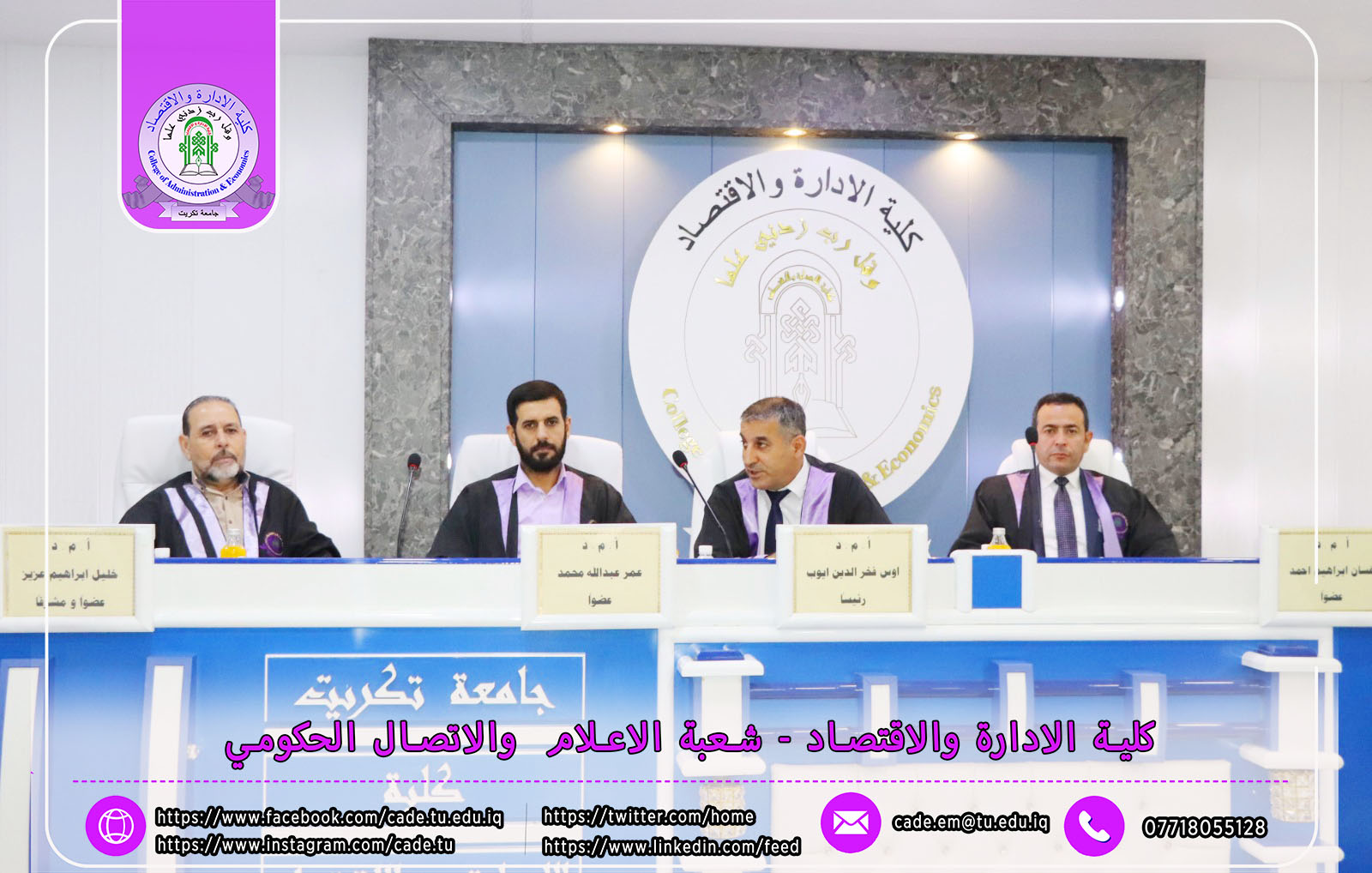 نوقشـت في كليـة الإدارة والاقتصاد رسالة الماجستير في العلوم الاقتصادية للطالــب طه صالح عكلة الموسـومة (اثر السياسة النقدية في الحد من فقاعات أسعار الأصول في بلدان مختارة مع الإشارة للعراق) بأشــراف ا.م.د. خليل إسماعيل عزيز.
