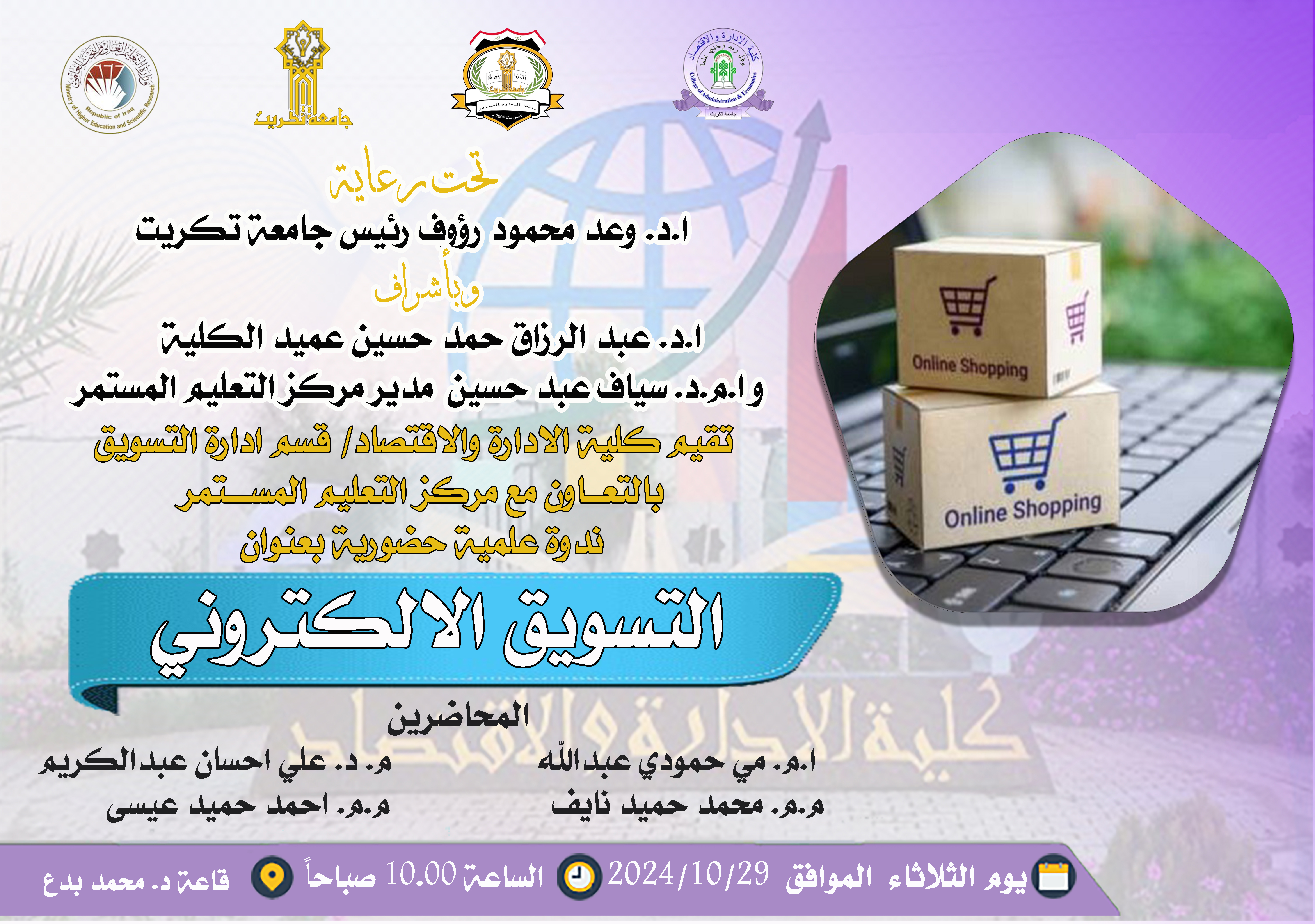 ندوة علمية حضورية بعنوان التسويق الالكتروني