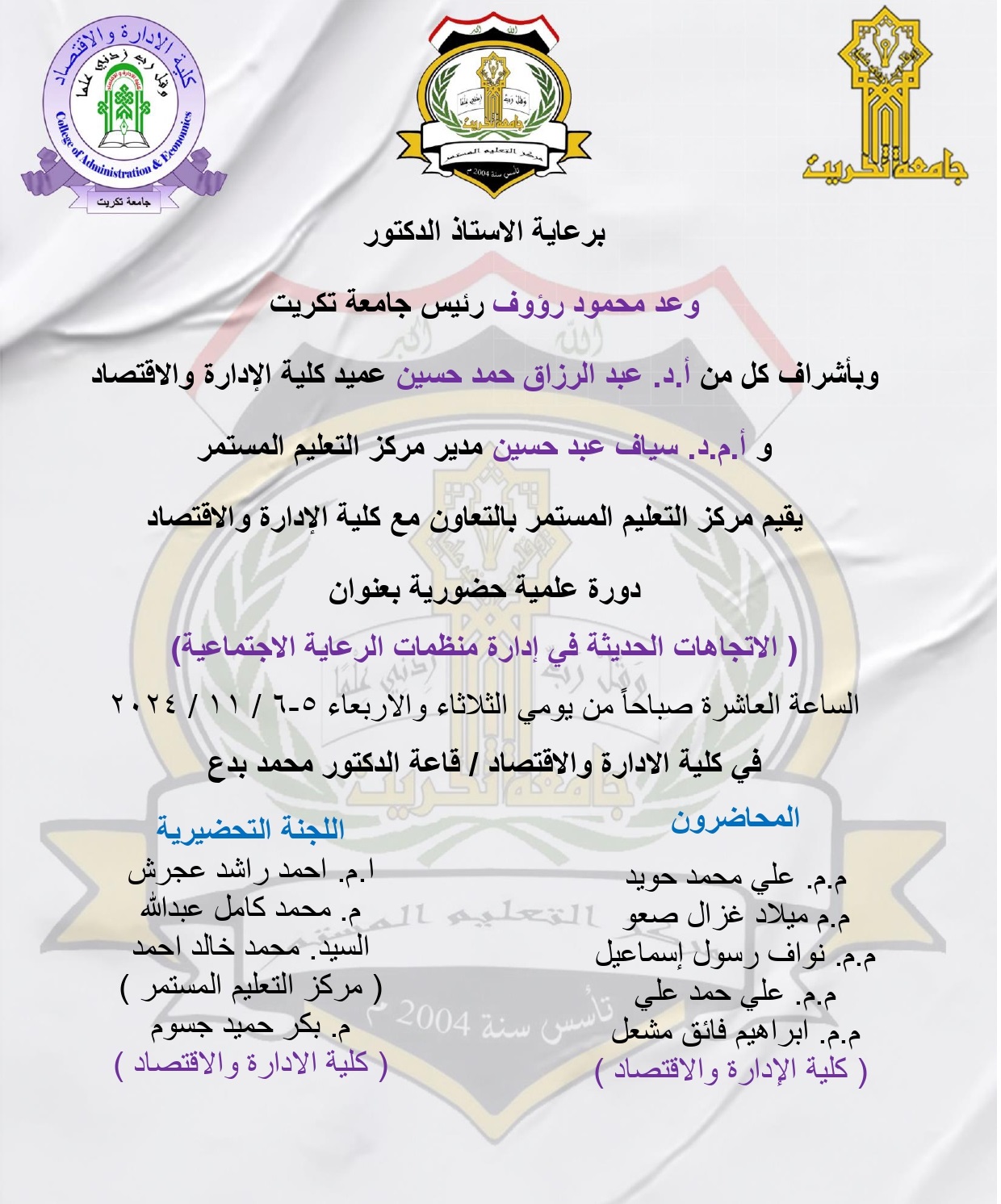 دورة علمية حضورية بعنوان الاتجاهات الحديثة في إدارة منظمات الرعاية الاجتماعية