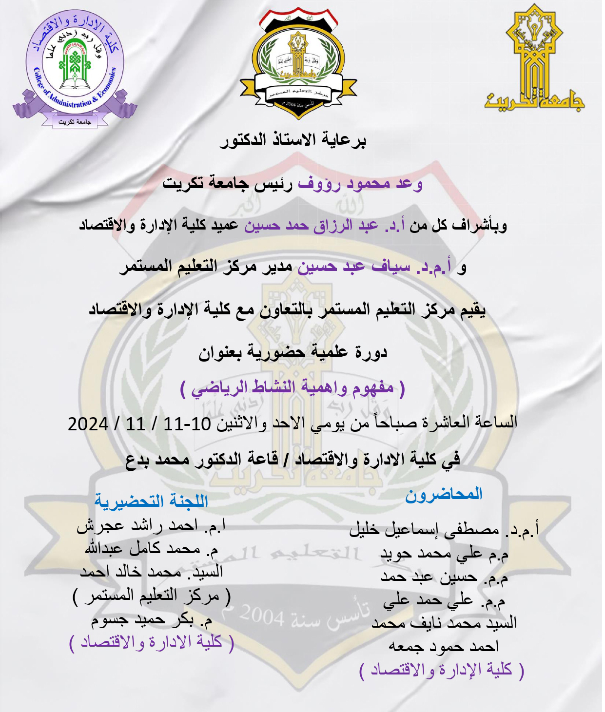 دورة علمية حضورية بعنوان مفهوم واهمية النشاط الرياضي
