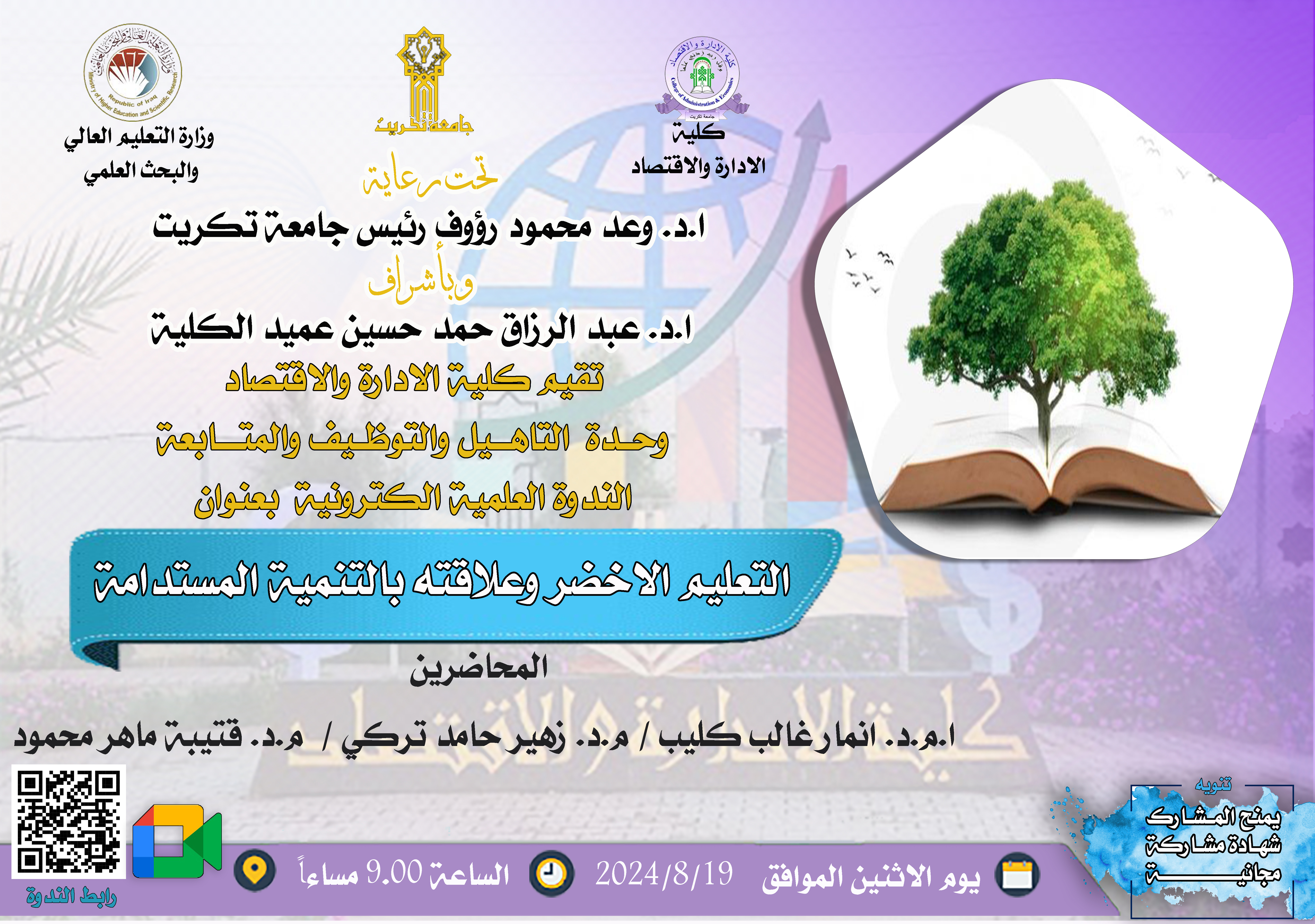 ندوة علمية الكترونية بعنوان التعليم الأخضر وعلاقته بالتنمية المستدامة