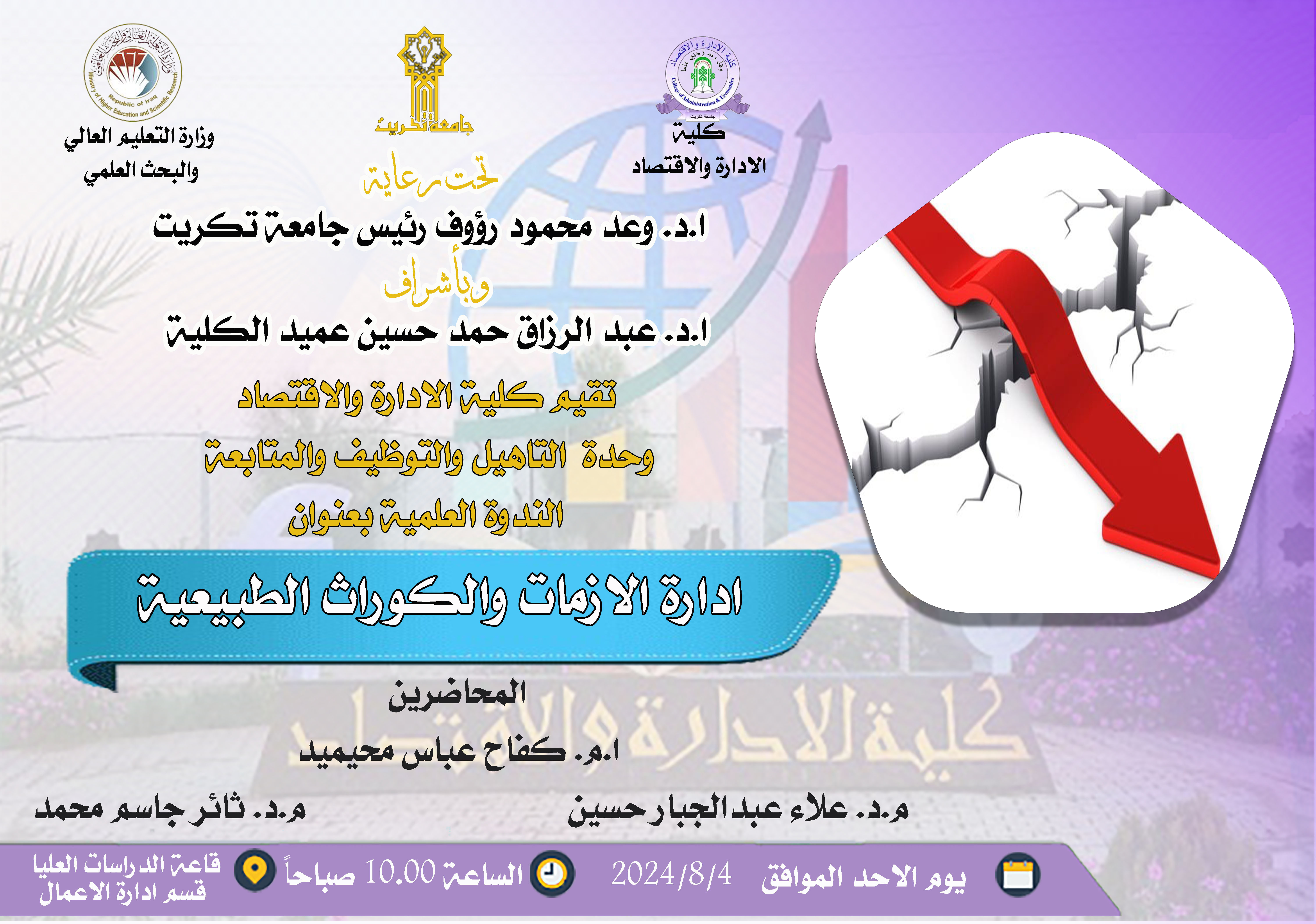 ندوة علمية بعنوان إدارة الازمات والكوارث الطبيعية
